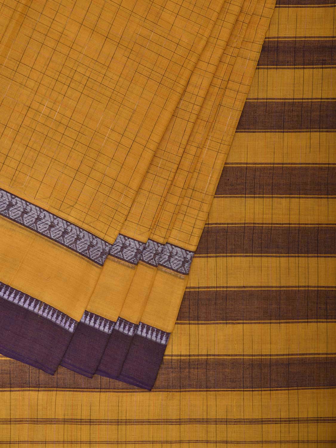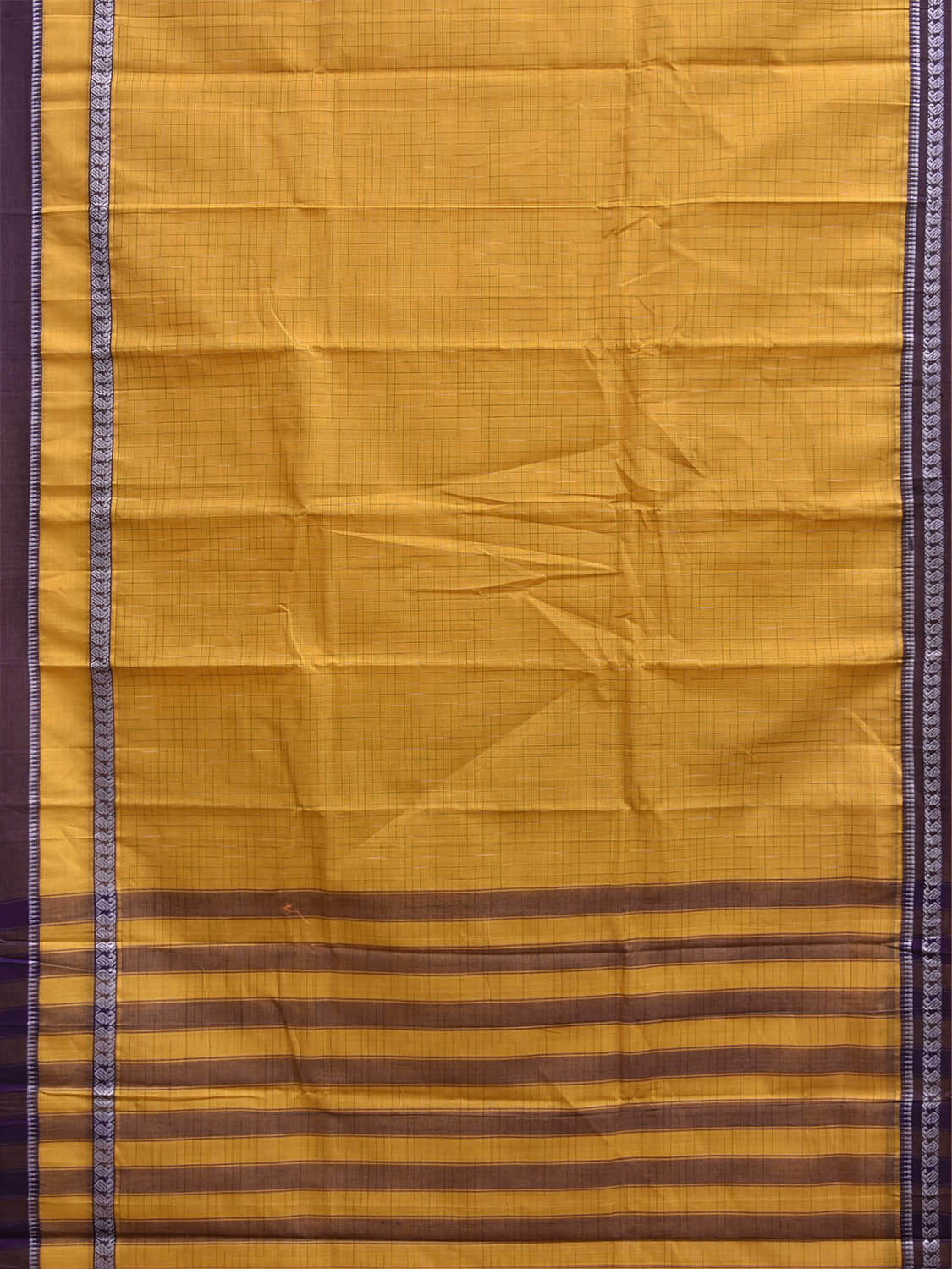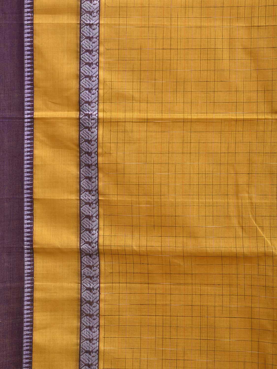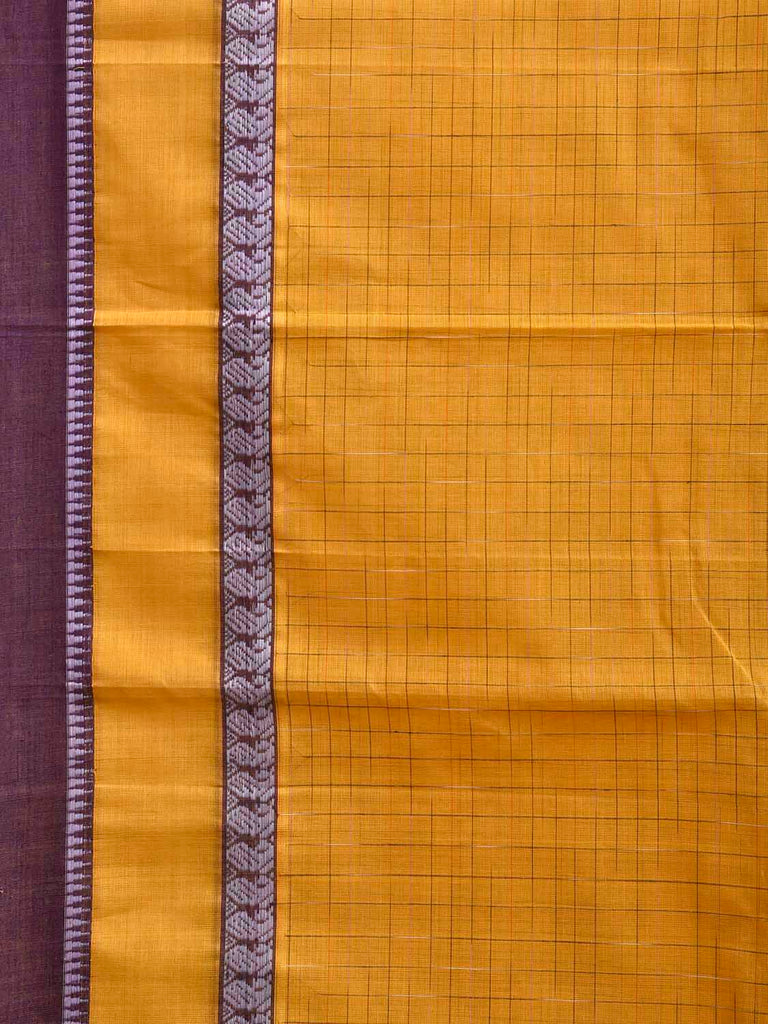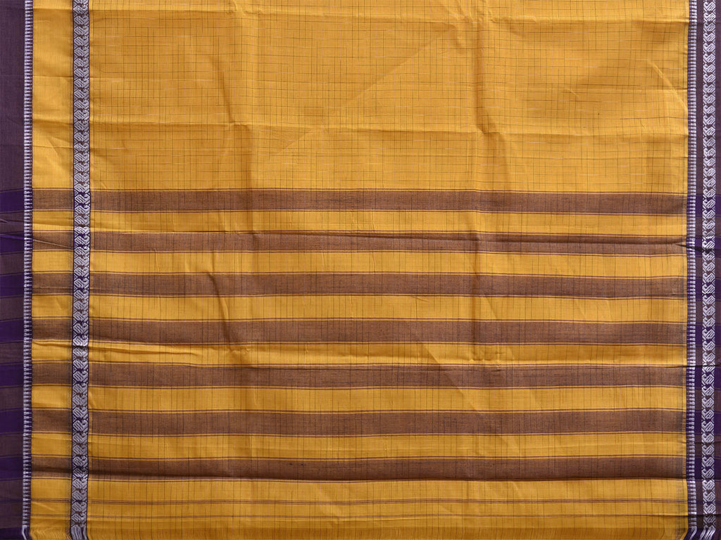 Yellow Narayanpet Cotton Saree with Checks and One Side Big Border Design No Blouse
