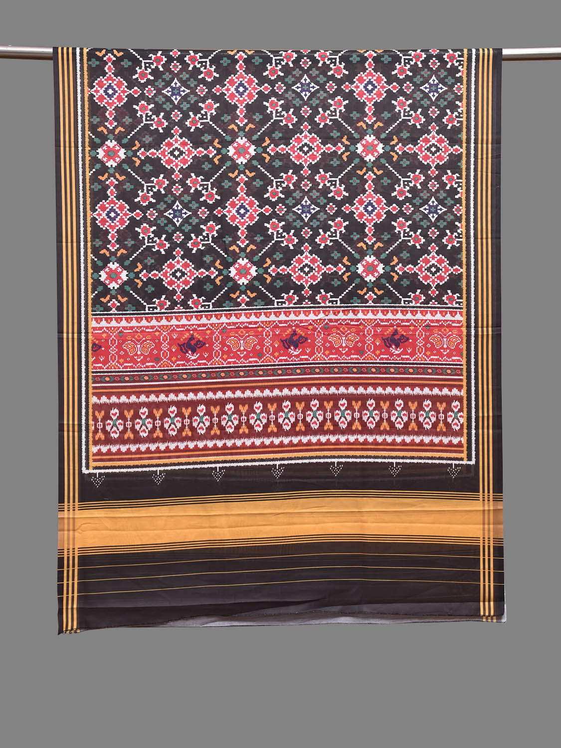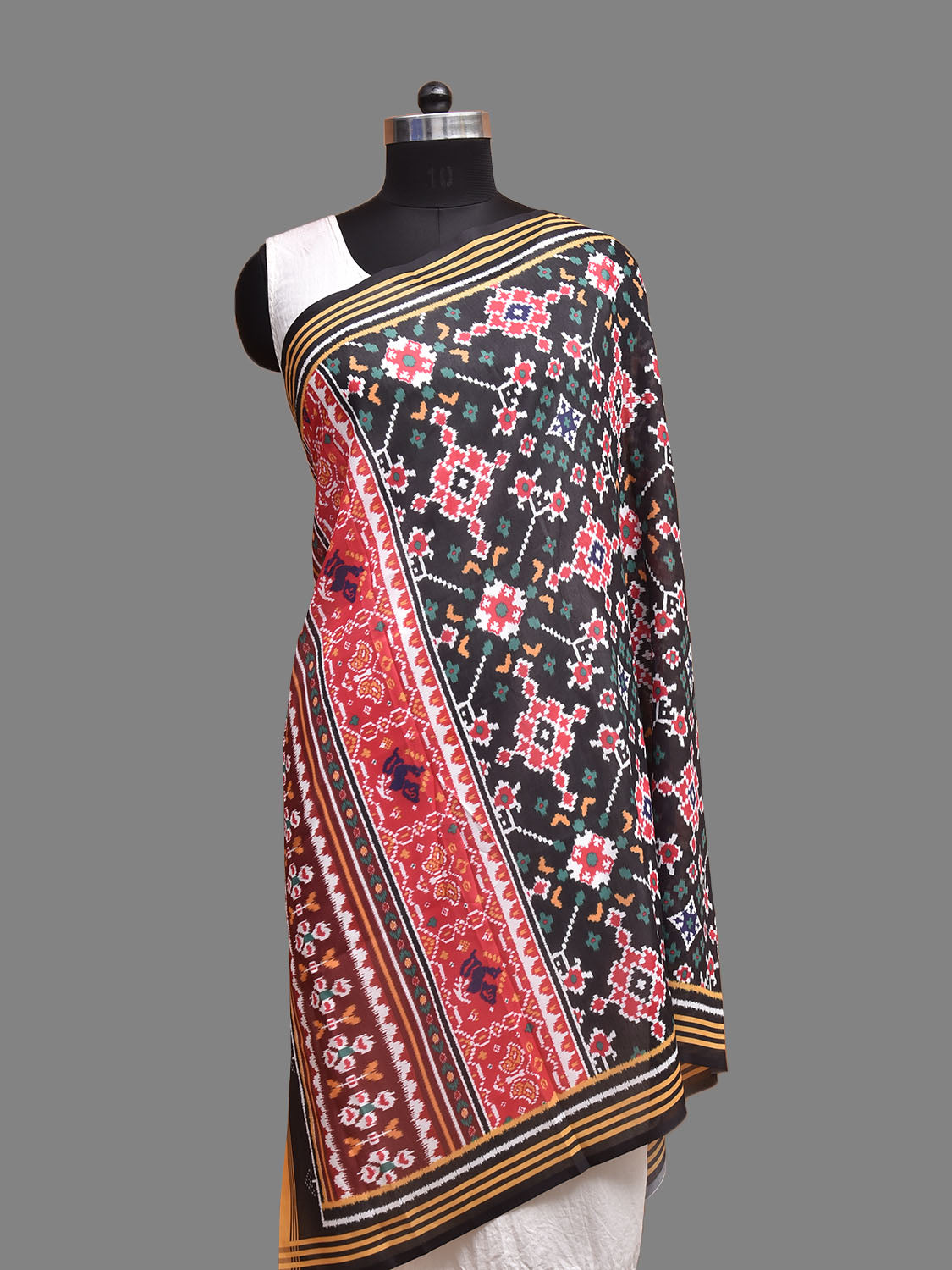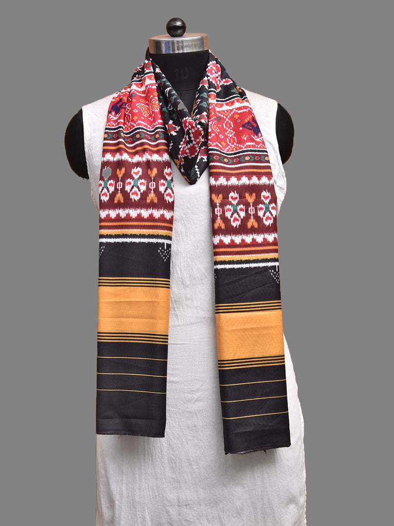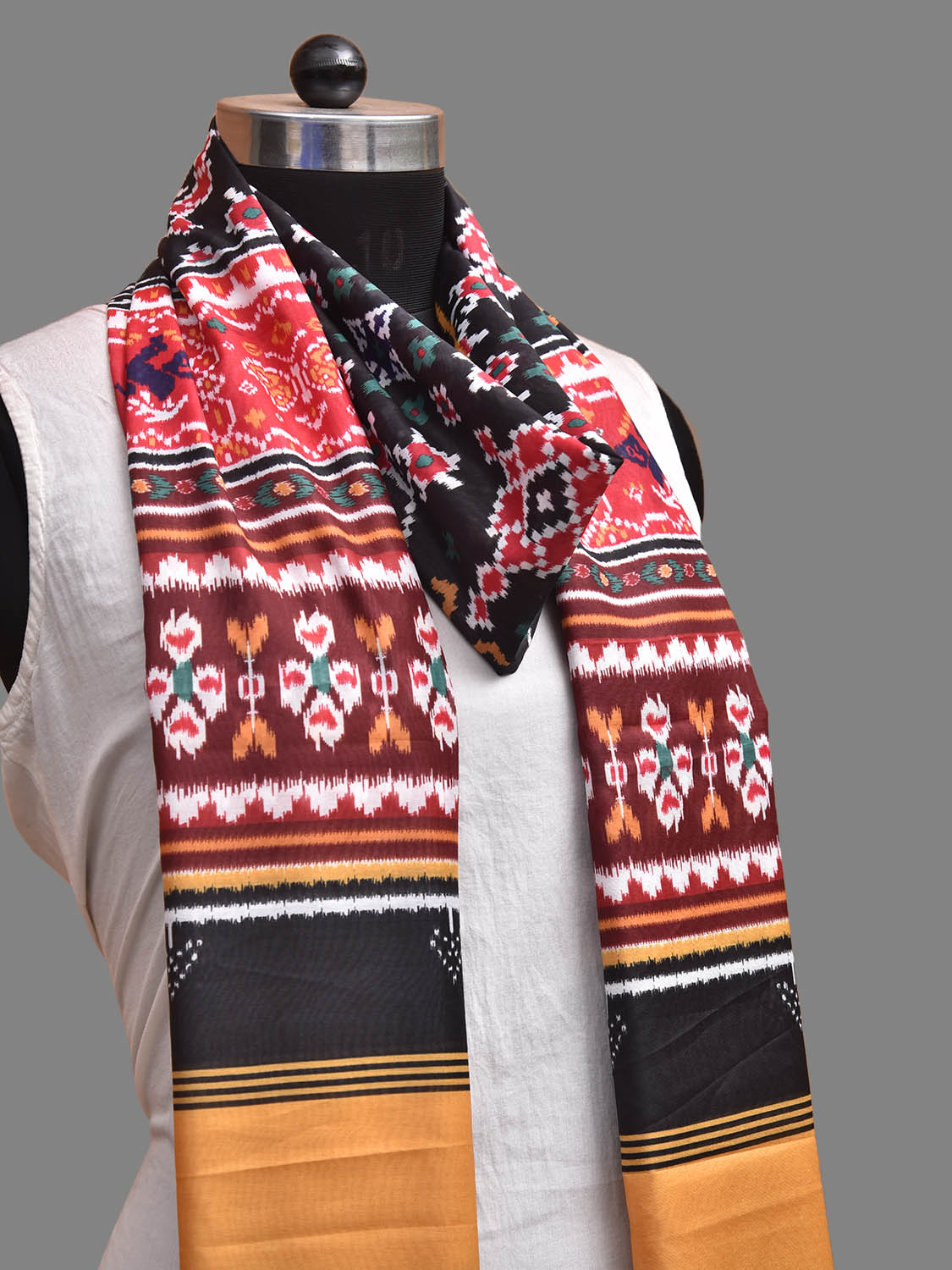 Black and Red Printed Viscose Silk Dupatta with Ikat Patola Design ds3932