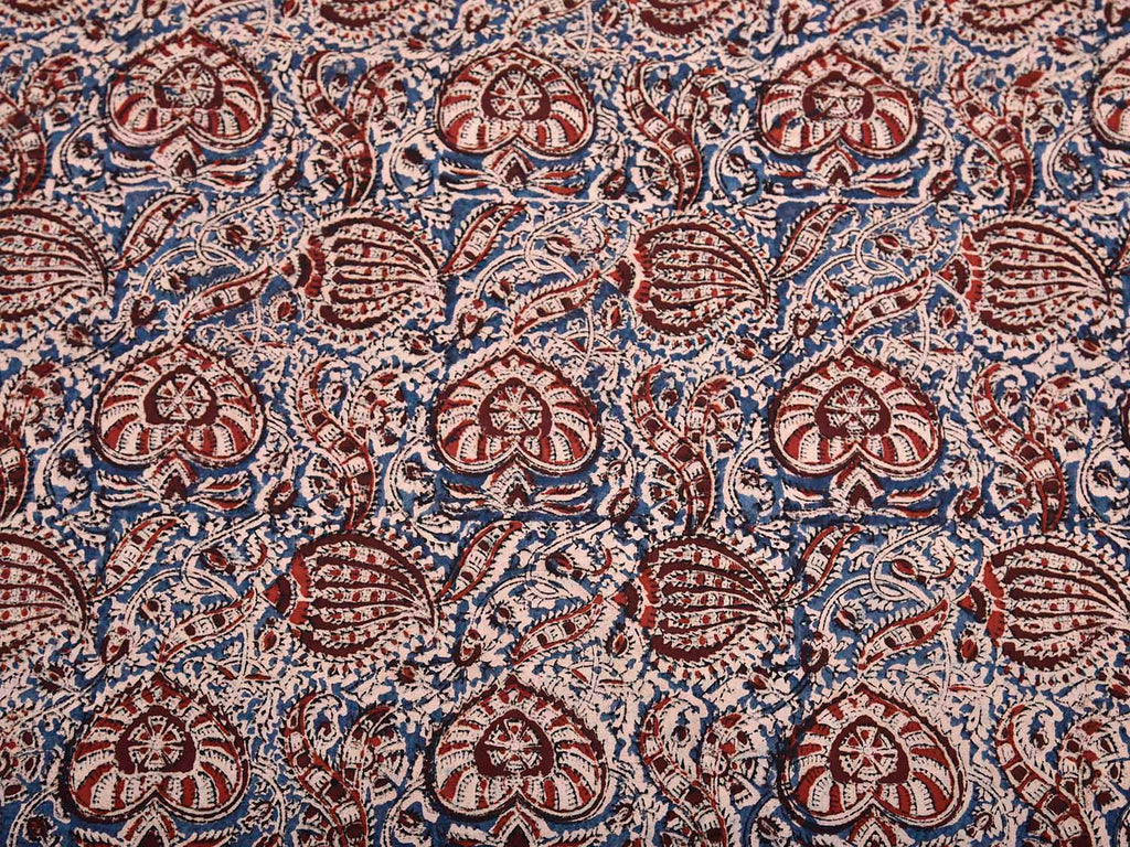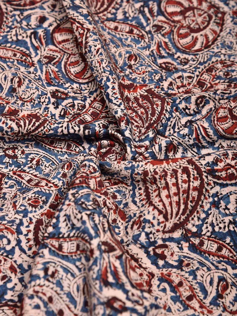 Blue and Red Kalamkari Block Print Cotton Blouse with Floral Design 1mt Length 35 Inches Width. Beautiful Pattern Blouse Fabric and Easy to Match to Any Suitable Saree. For fabric care we advise gentle handwash separately as they may bleed in the initial wash.