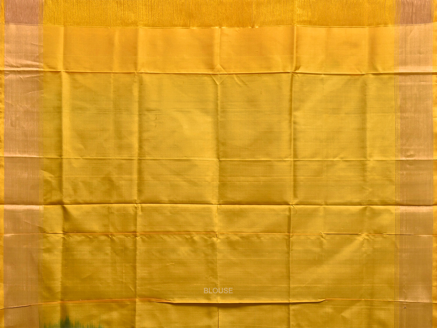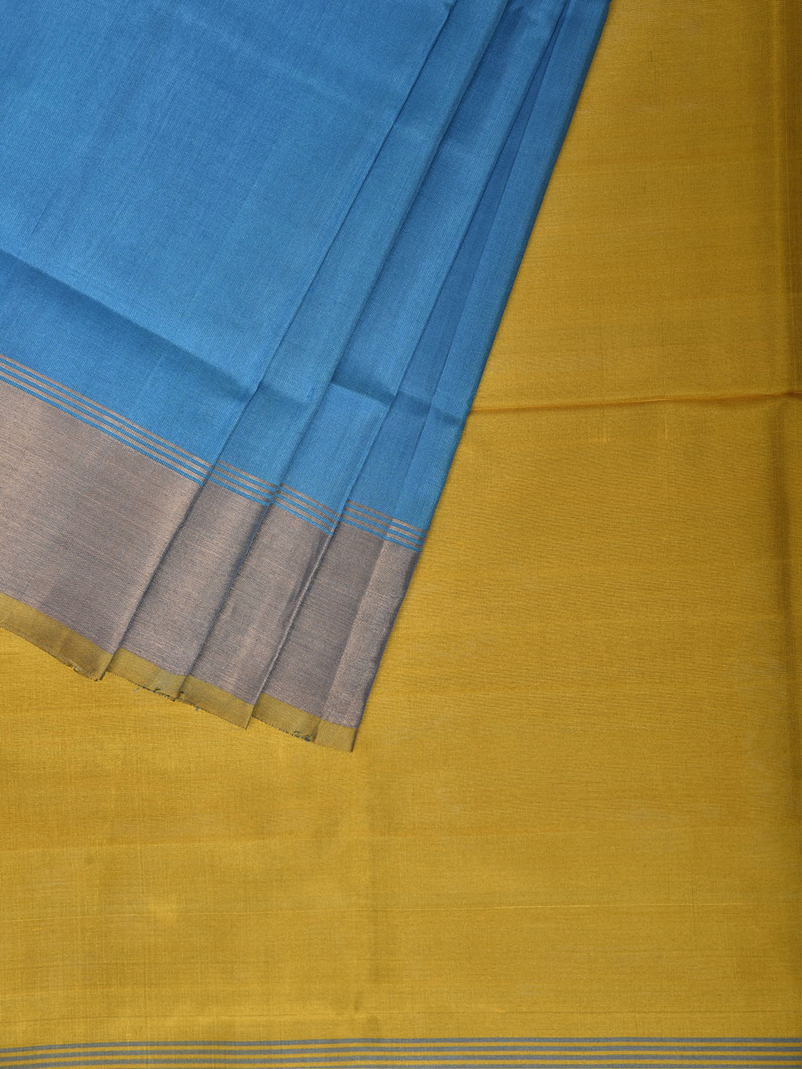 Blue and Yellow Uppada Silk Handloom Plain Saree with Contrast Pallu Design u2521