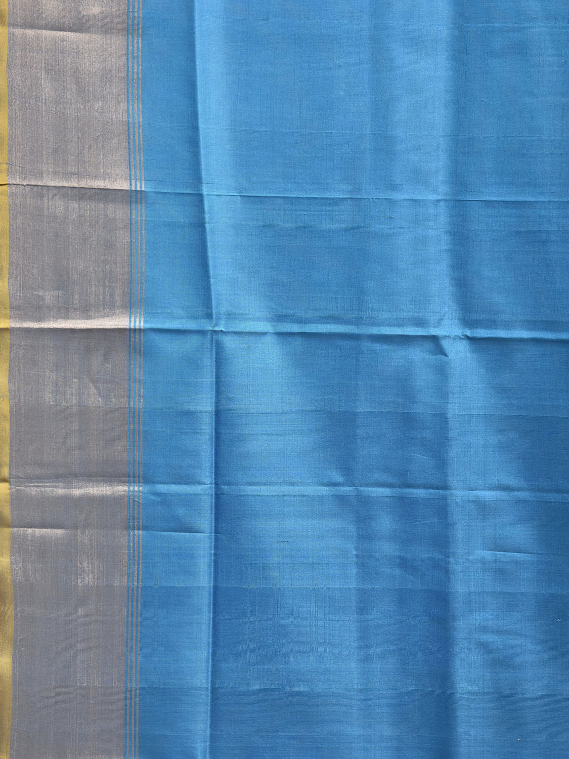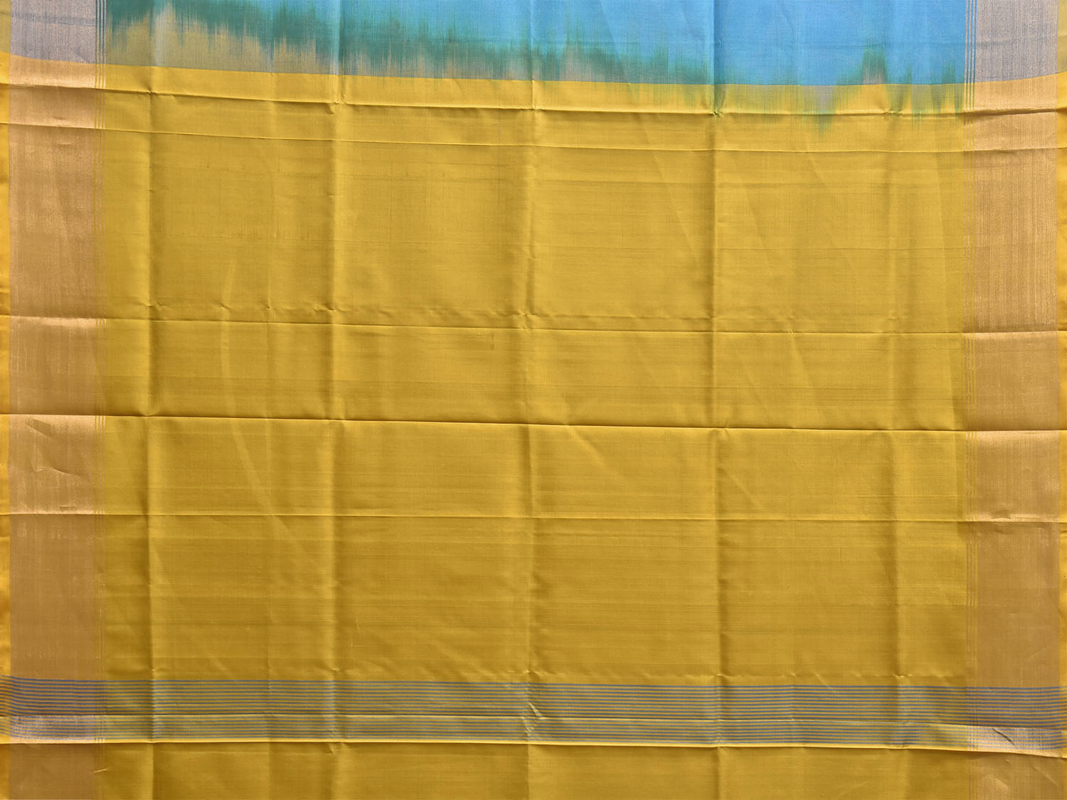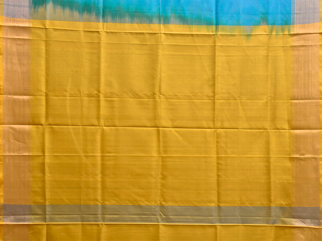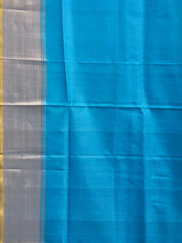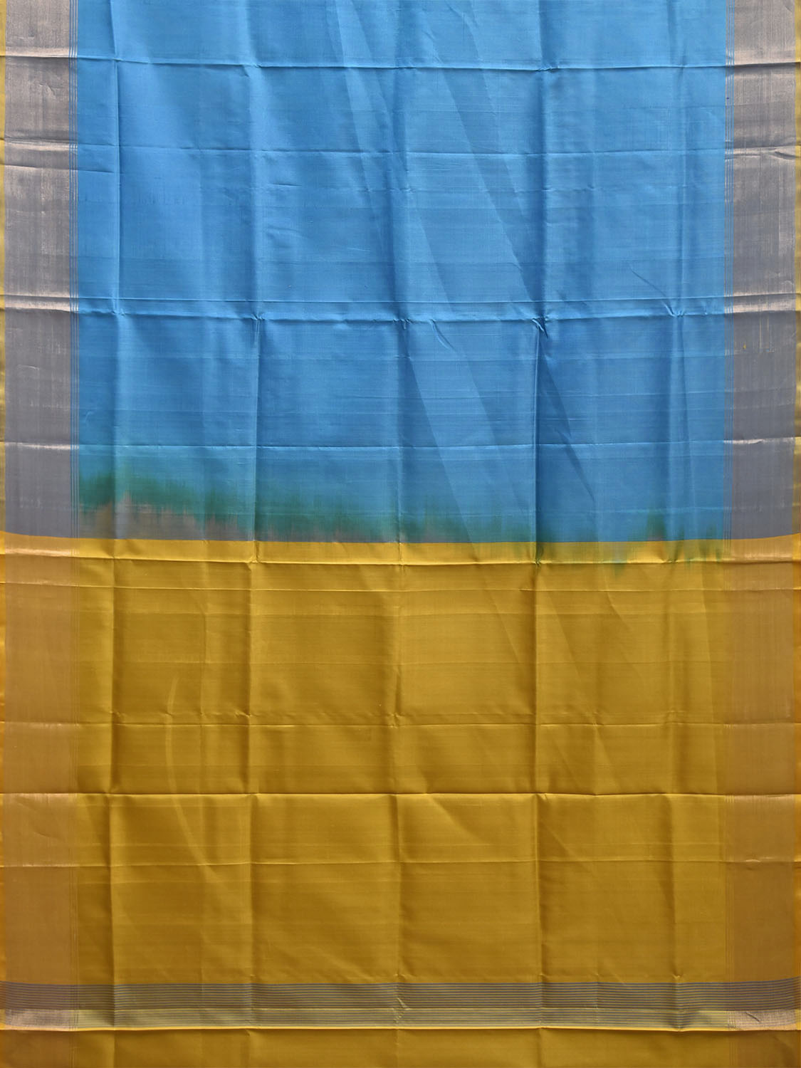 Blue and Yellow Uppada Silk Handloom Plain Saree with Contrast Pallu Design