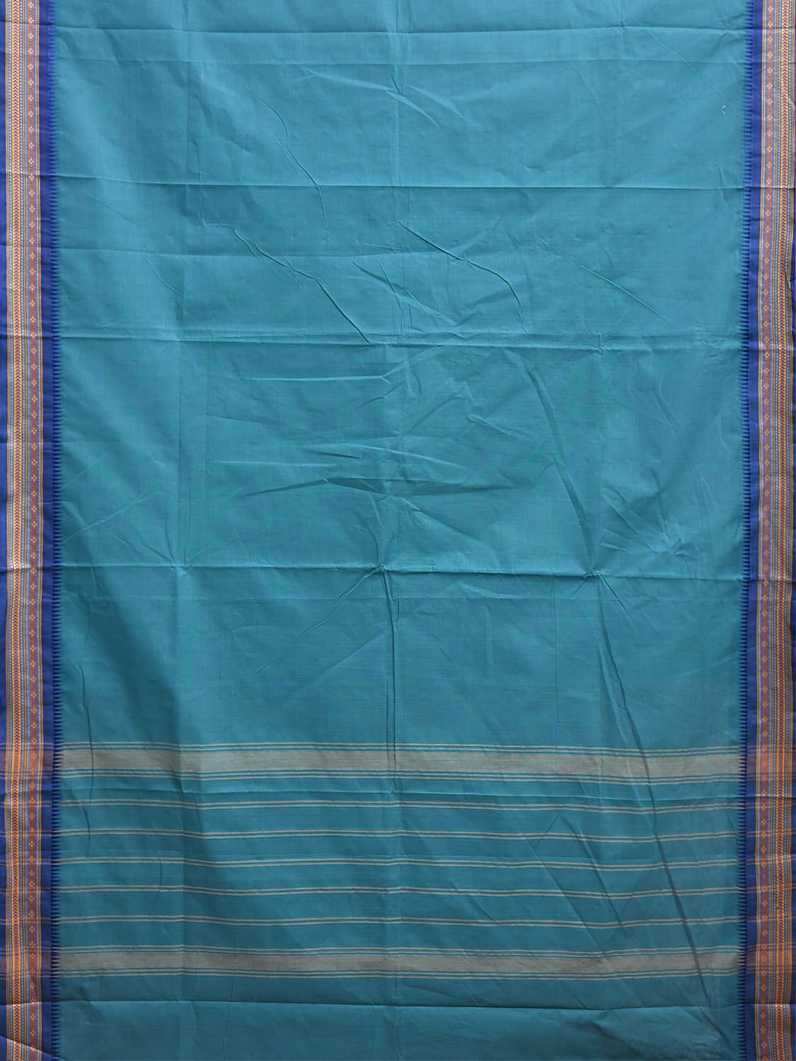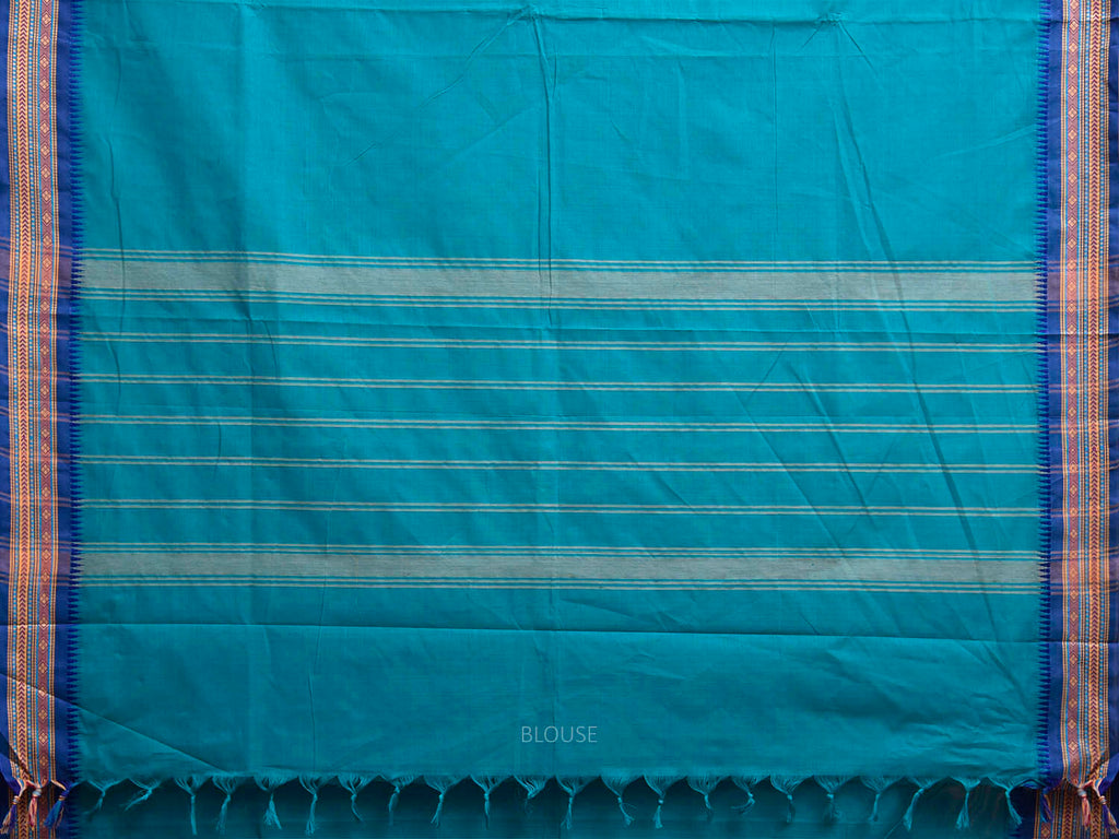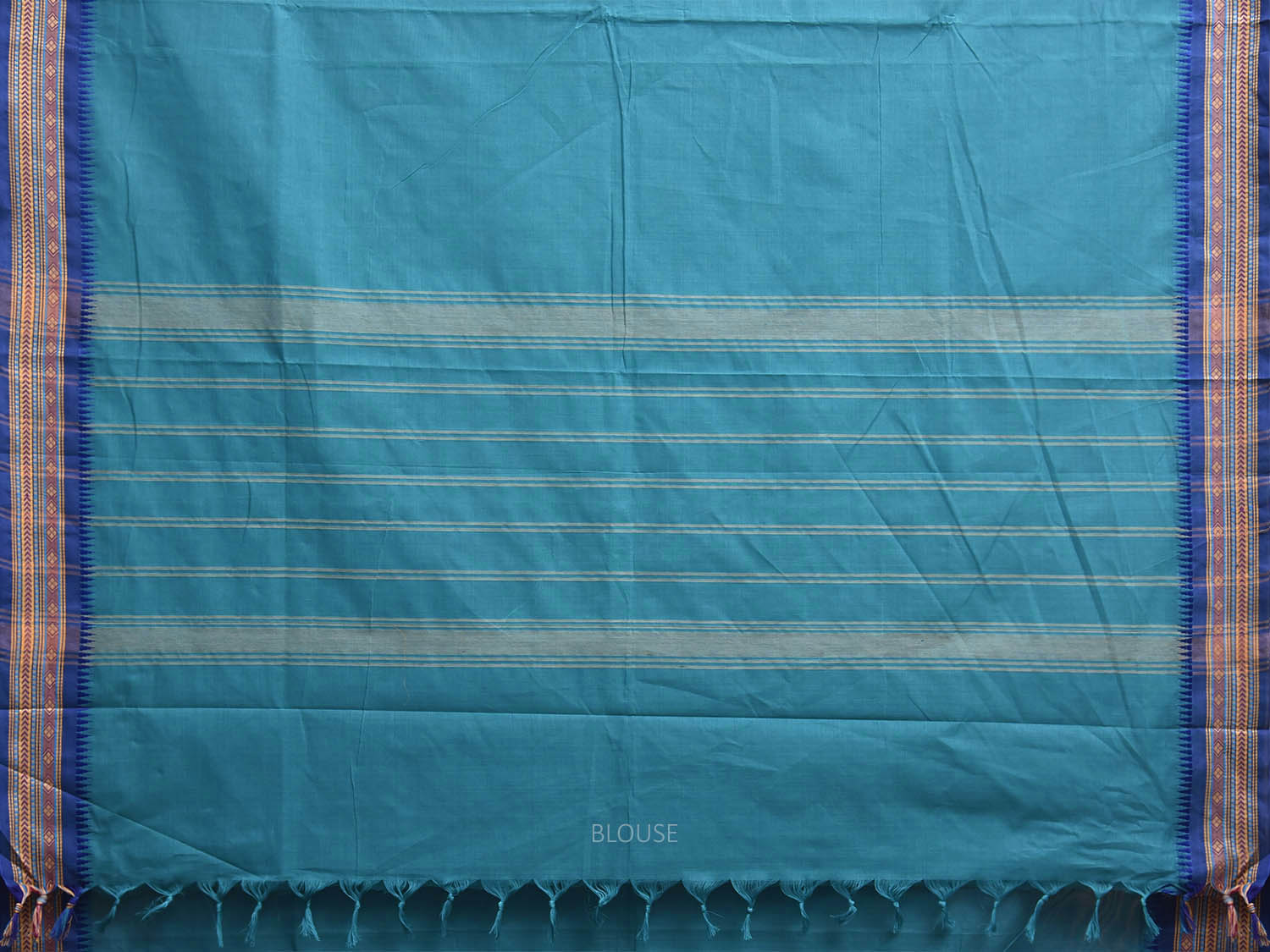 Blue Kanchipuram Cotton Plain Saree with Border and Strips Pallu Design. Traditional Simple South Indian Attire Saree for any Casual Occasions. As it’s a cotton saree we advice gentle handwash separately for fabric care.