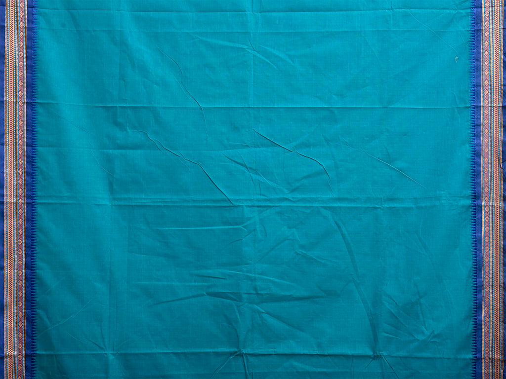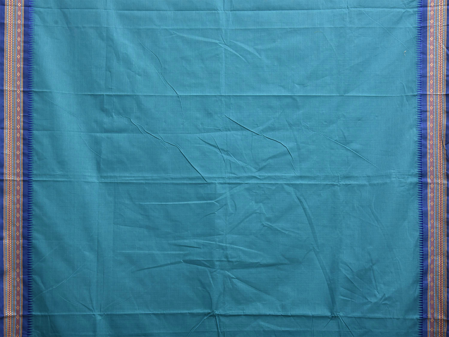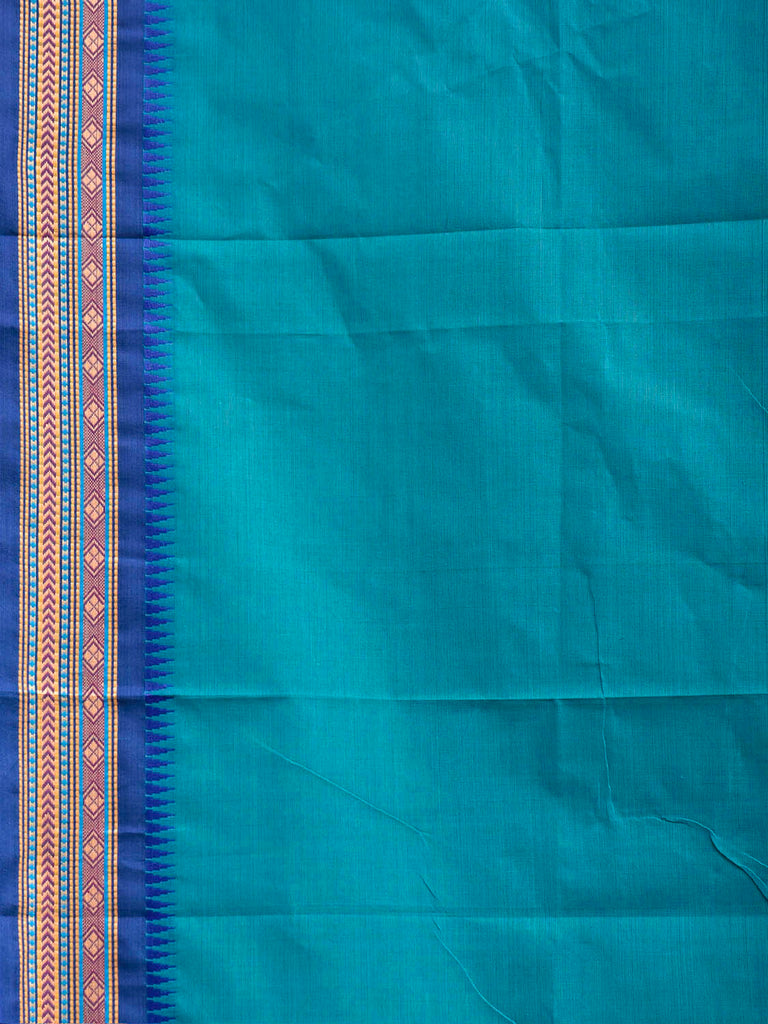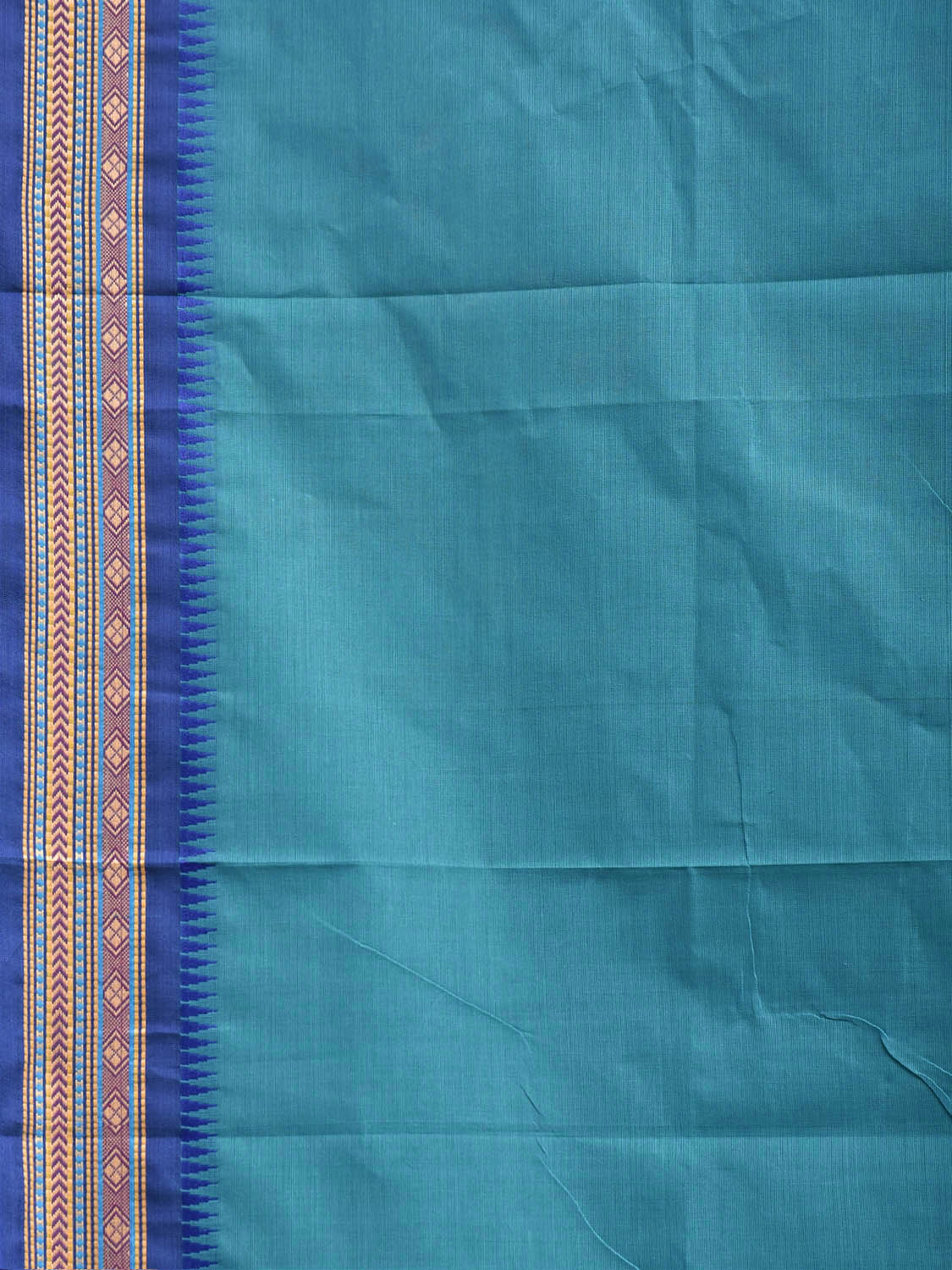 Blue Kanchipuram Cotton Plain Saree with Border and Strips Pallu Design. Traditional Simple South Indian Attire Saree for any Casual Occasions. As it’s a cotton saree we advice gentle handwash separately for fabric care.