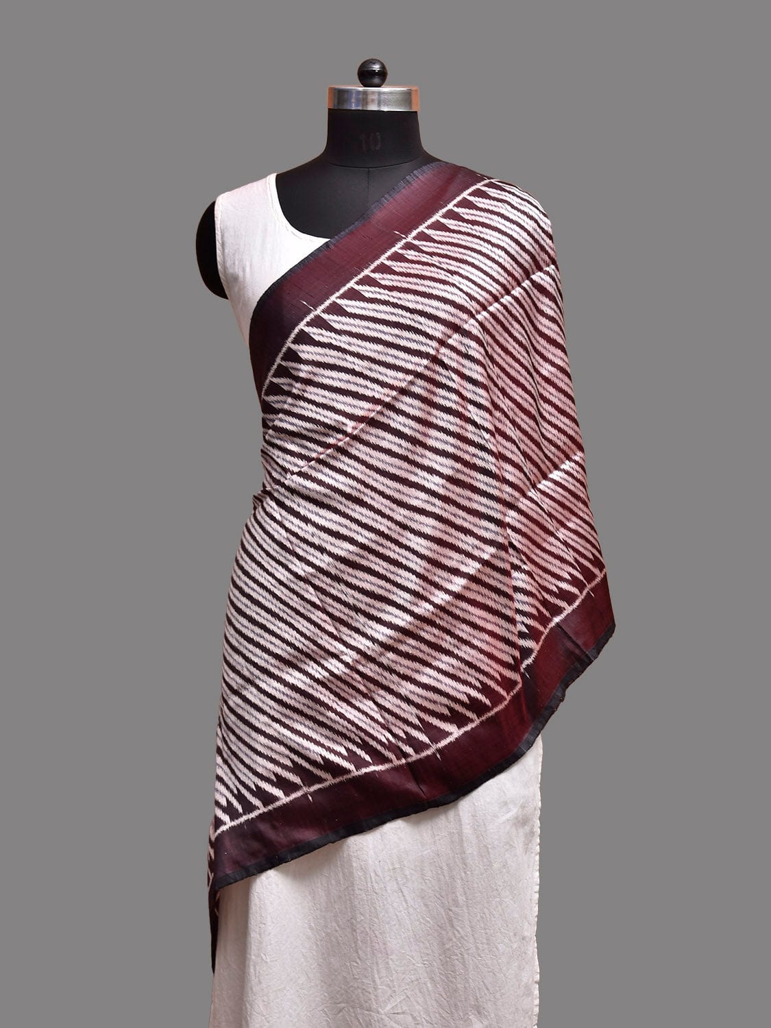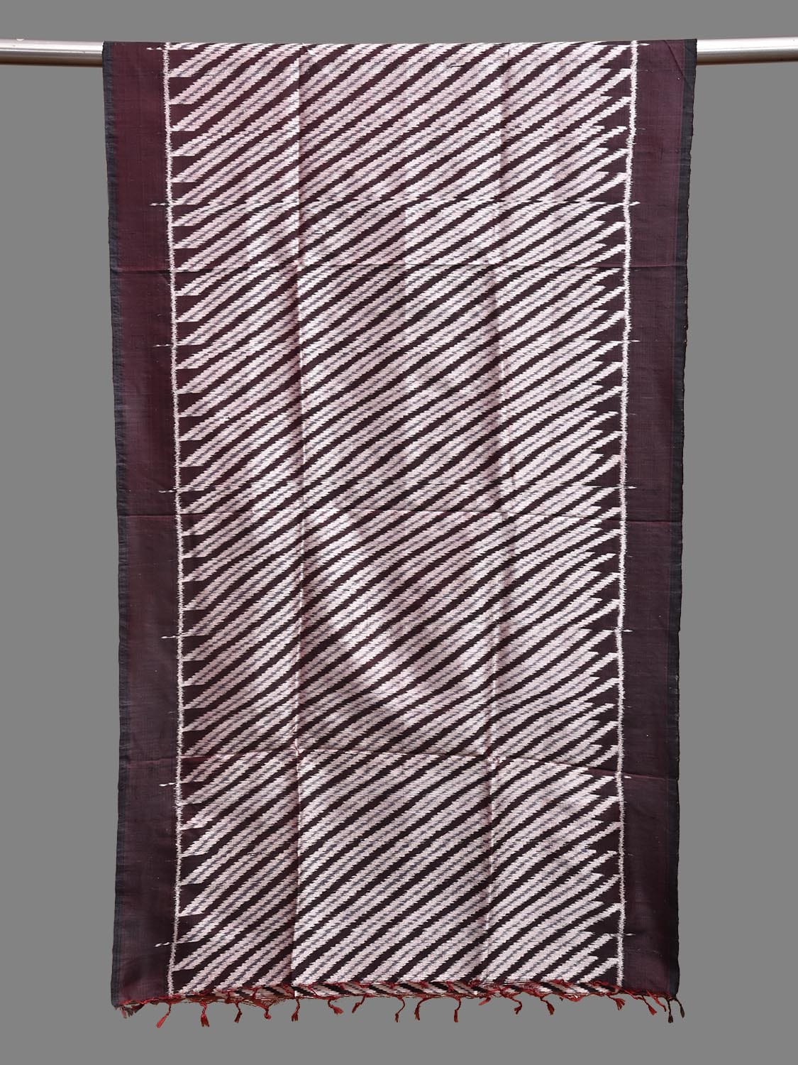 Brown Pochampally Ikat Silk Handloom Stole with Diagonal Design. We Advise Gentle Handwash for Fabric Care.