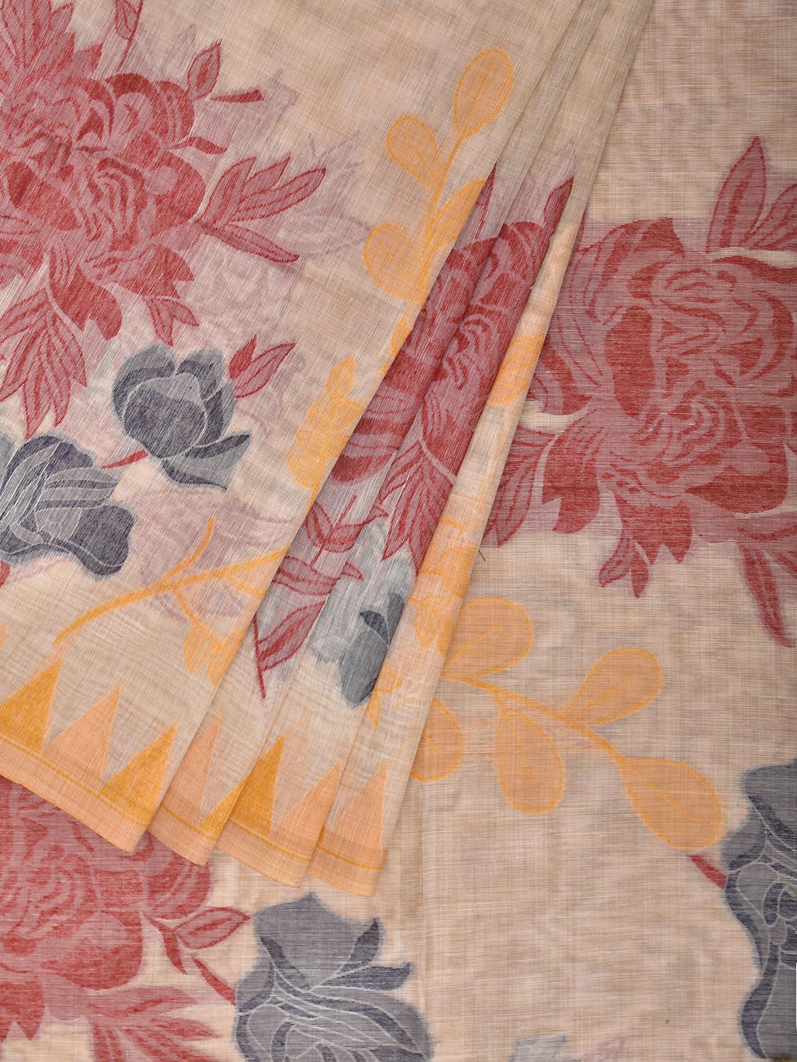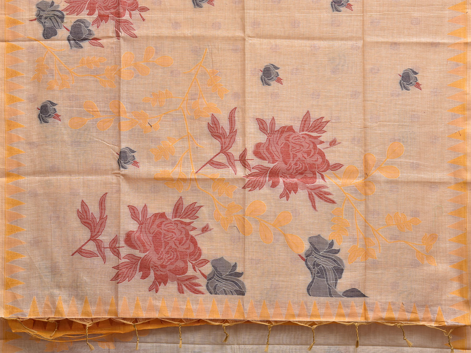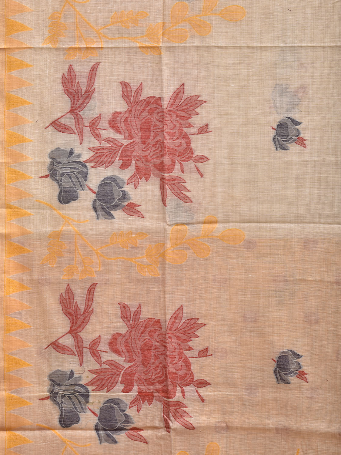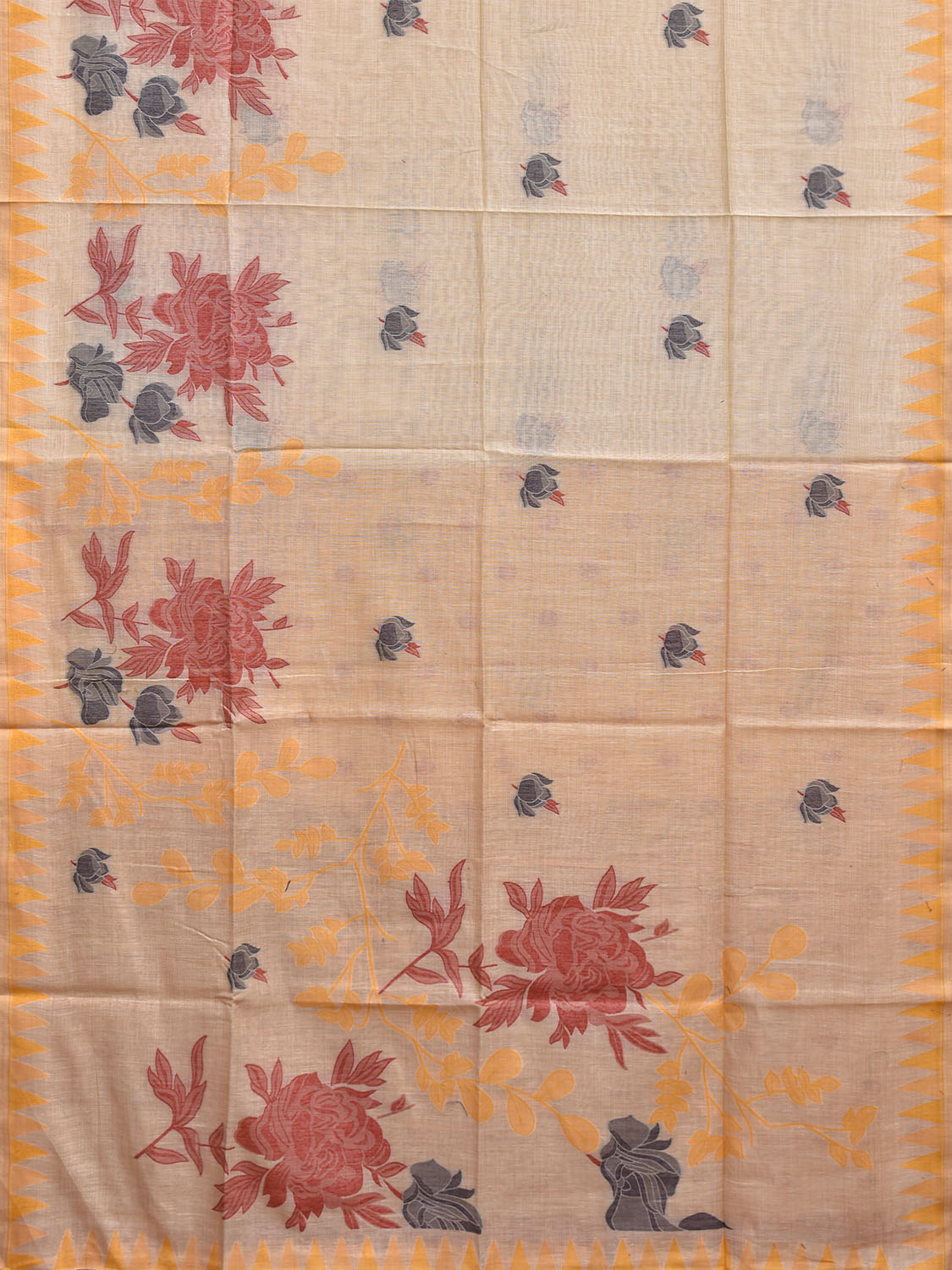 Cream and Yellow Dhakai Jamdani Cotton Viscose Saree with Floral Pallu and Border Design. These are some of the traditional Dhakai Jamdani designs, these sarees have geometric designs and sometimes floral or combination of both. We advice gentle handwash separately for fabric care.