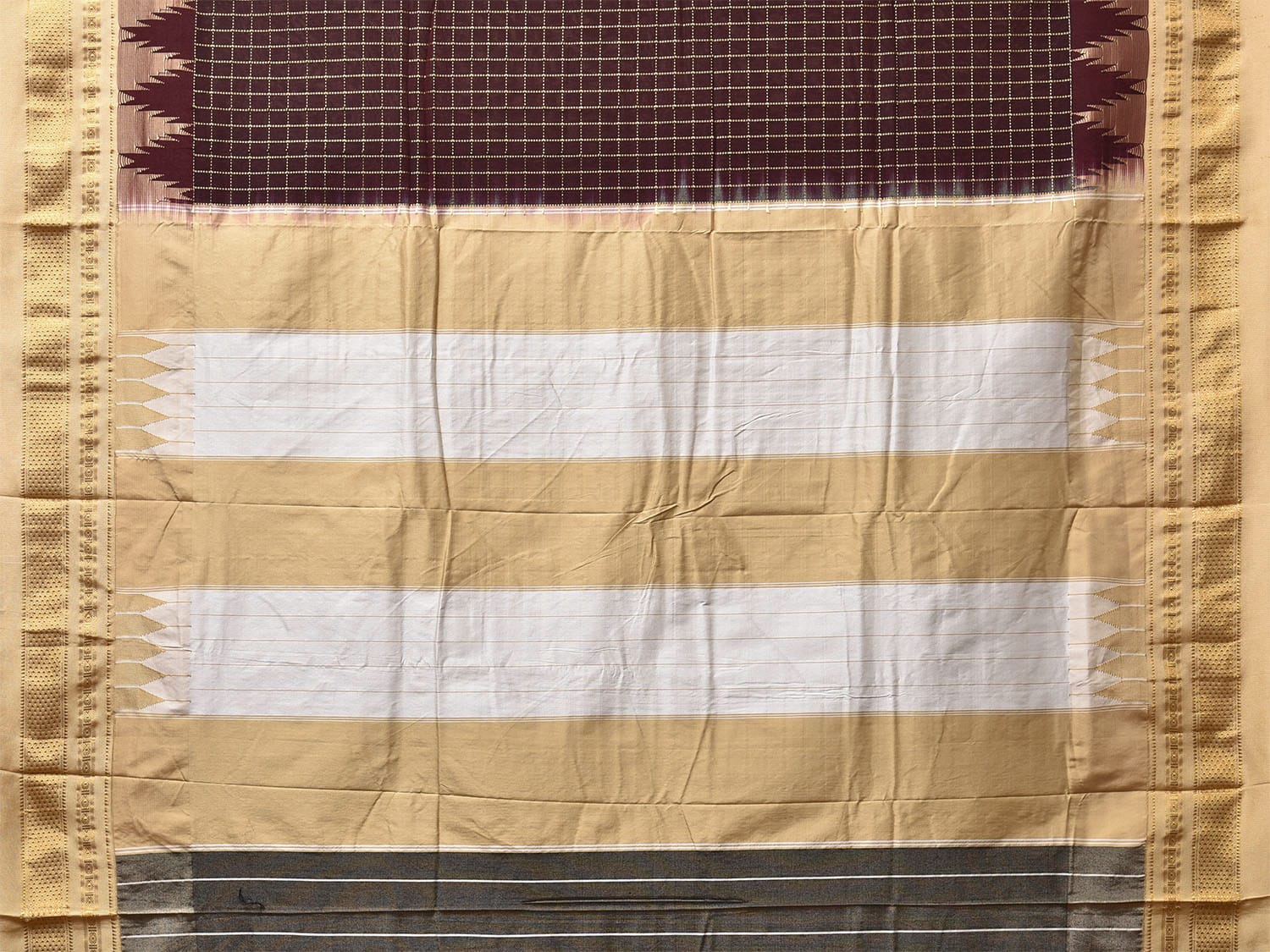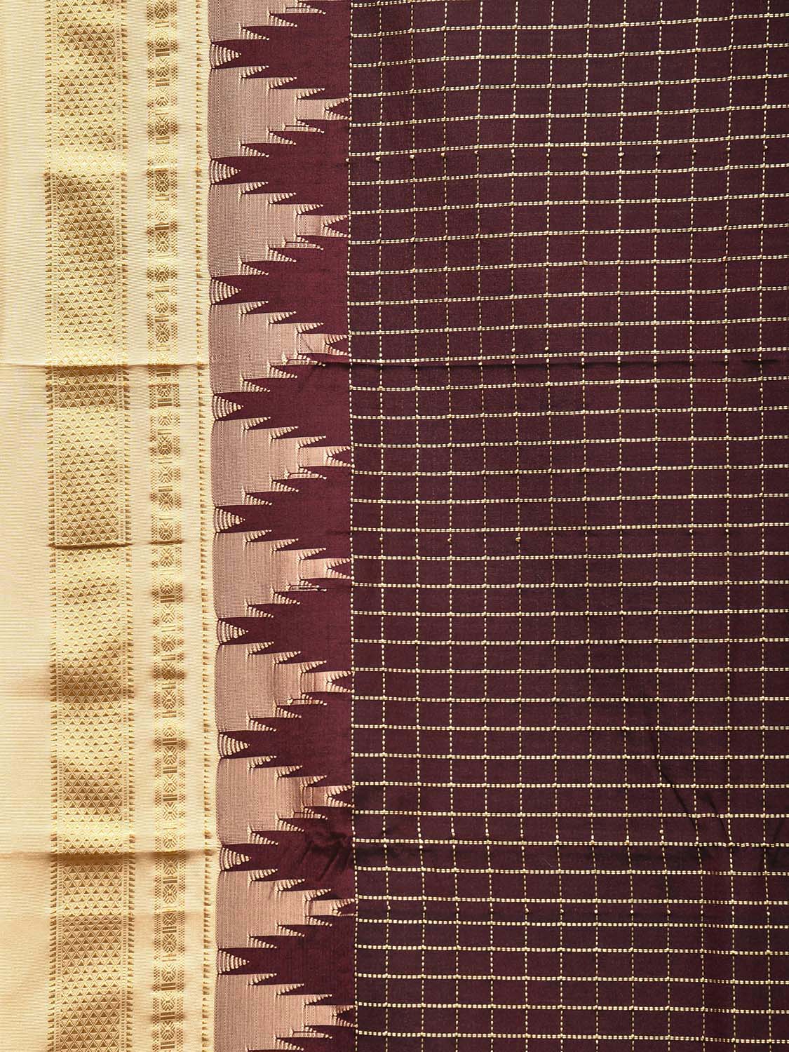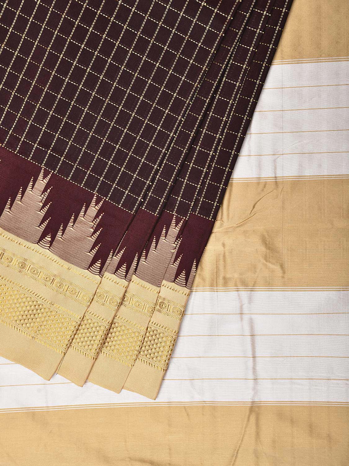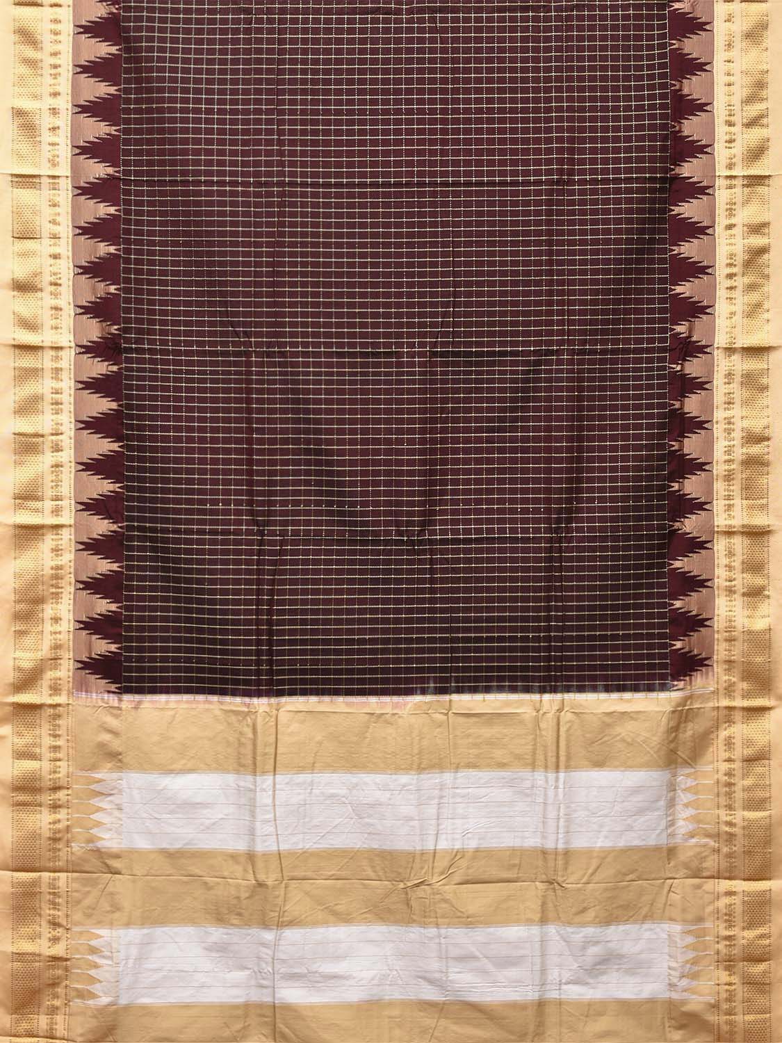 Dark Brown and Cream ilkal Viscose Saree with Temple Border and Checks Body Design. For fabric care we advise gentle handwash separately.