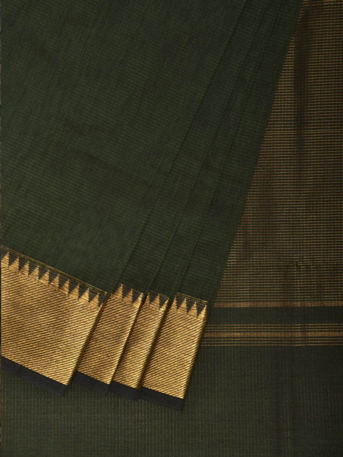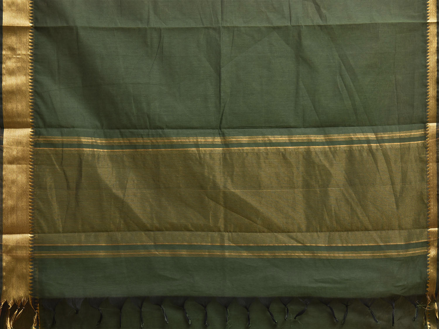 Dark Green Mangalgiri Cotton Handloom Plain Saree with Strips Pallu Design No Blouse. These are Simple and Traditional Andhra Pradesh Handloom Dupattas, being soft cotton they are comfortable to wear. For fabric care we advise gentle handwash it separately. This saree has no blouse.