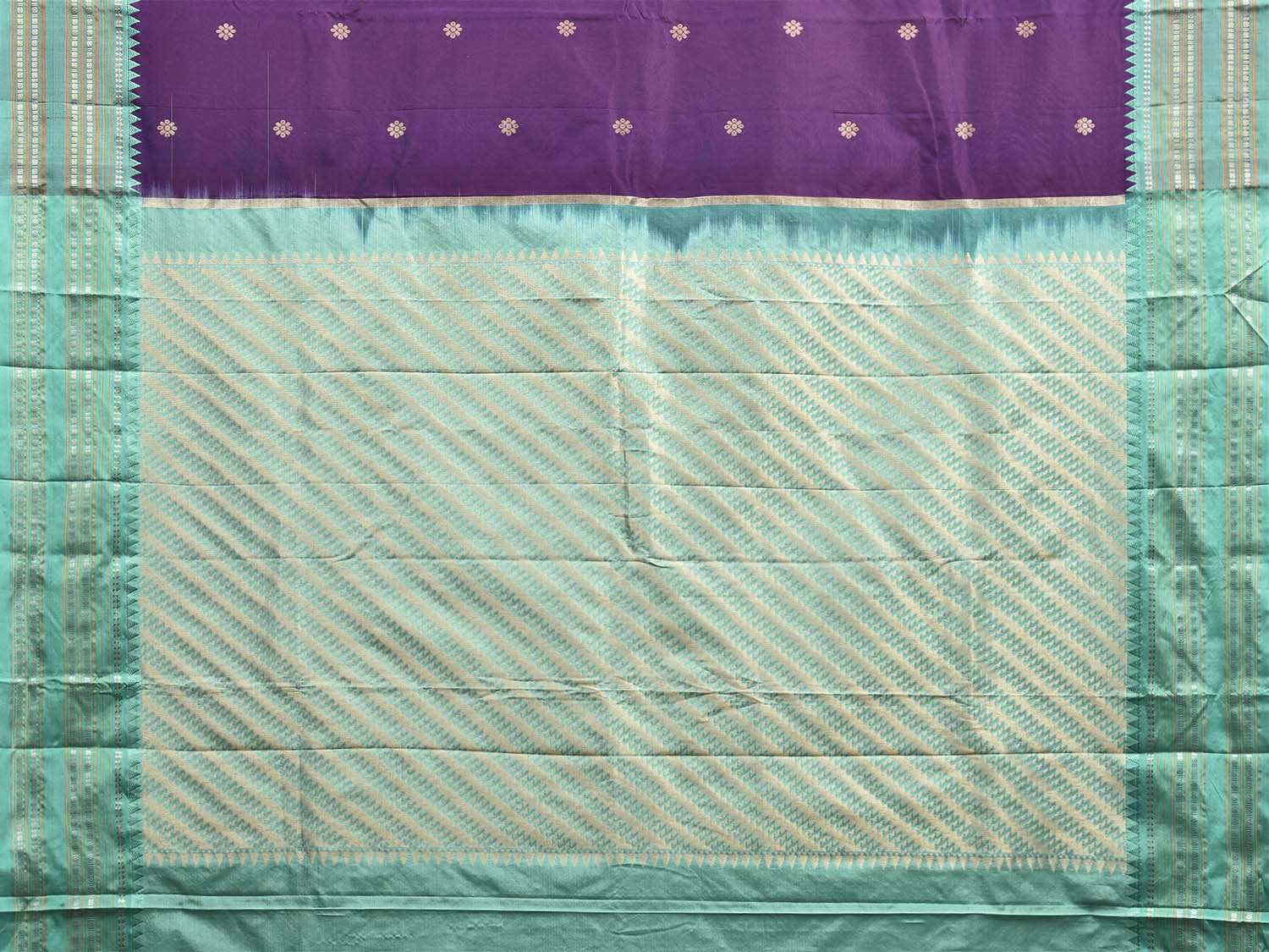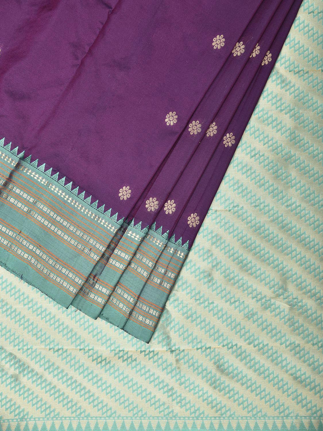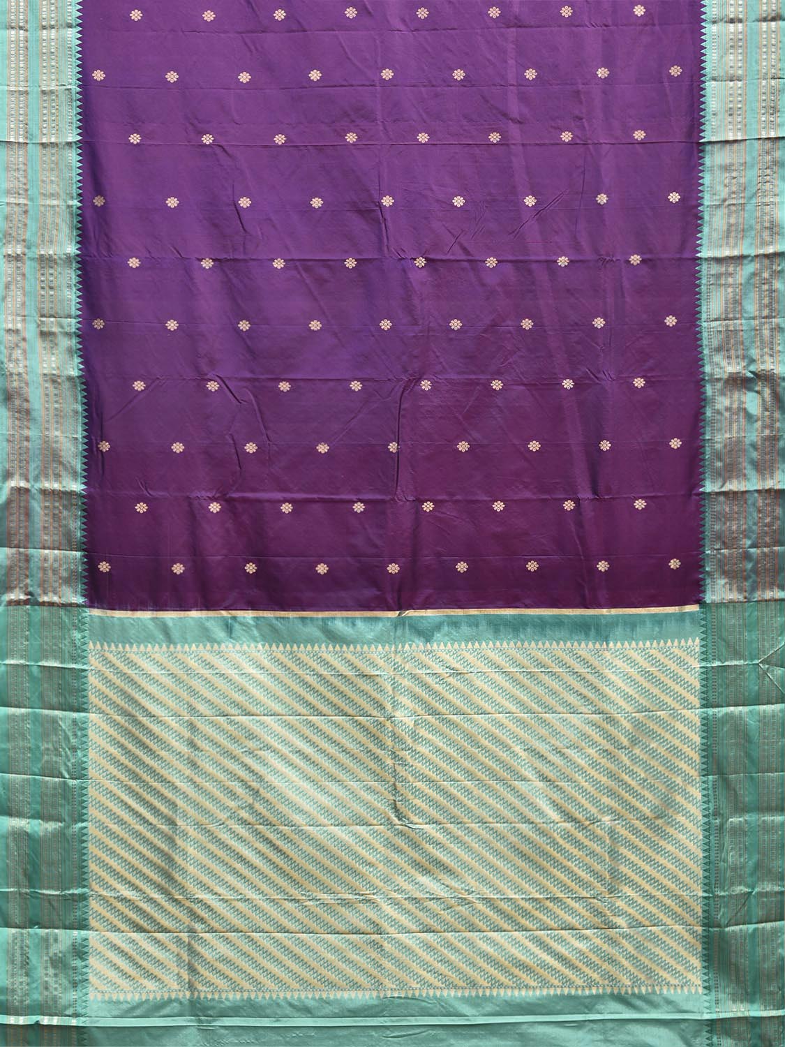 Dark Purple and Turquoise Narayanpet Silk Saree with Body Buta and Diagonal Pallu Design