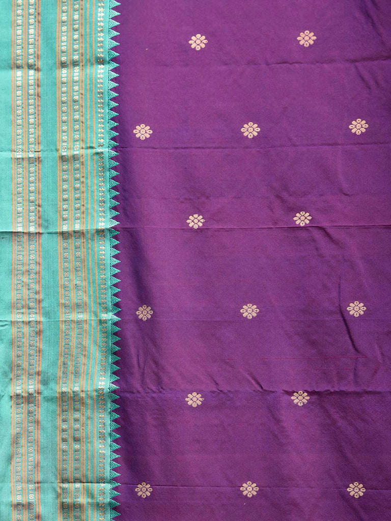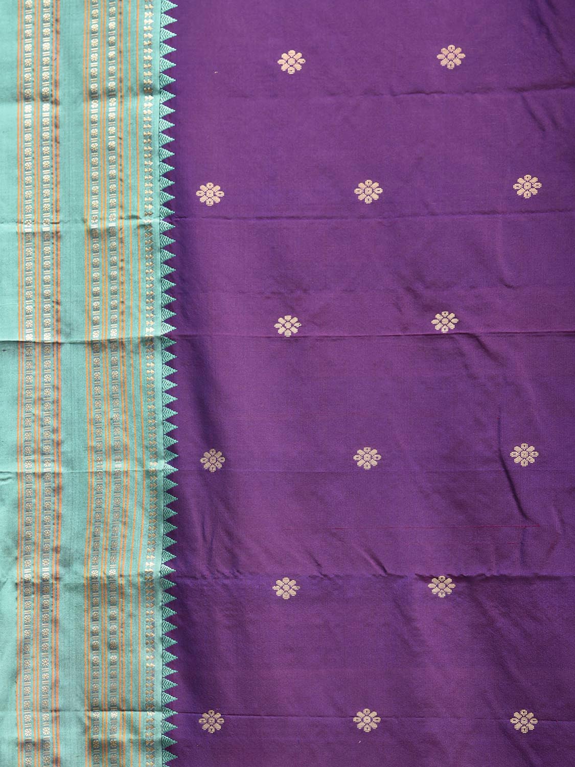 Dark Purple and Turquoise Narayanpet Silk Saree with Body Buta and Diagonal Pallu Design np1552