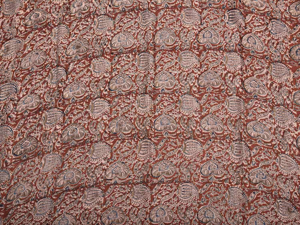 Dark Red and Blue Kalamkari Block Print Cotton Blouse with Floral Design 1mt Length 35 Inches Width. Beautiful Pattern Blouse Fabric and Easy to Match to Any Suitable Saree. For fabric care we advise gentle handwash separately as they may bleed in the initial wash.