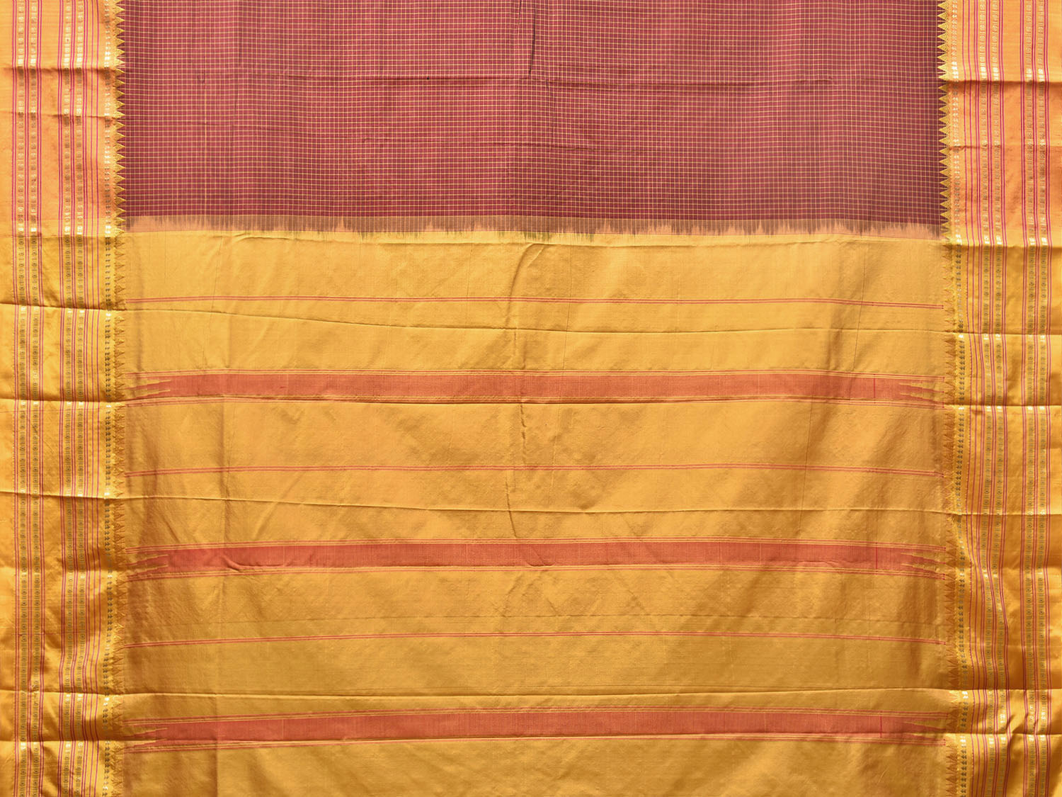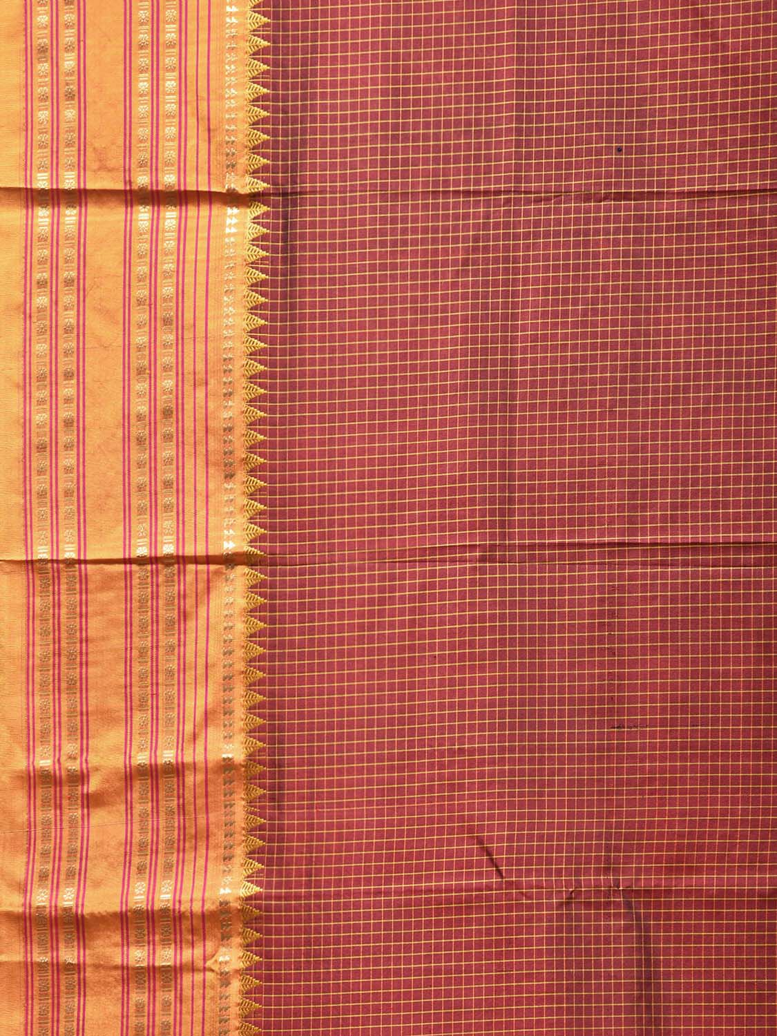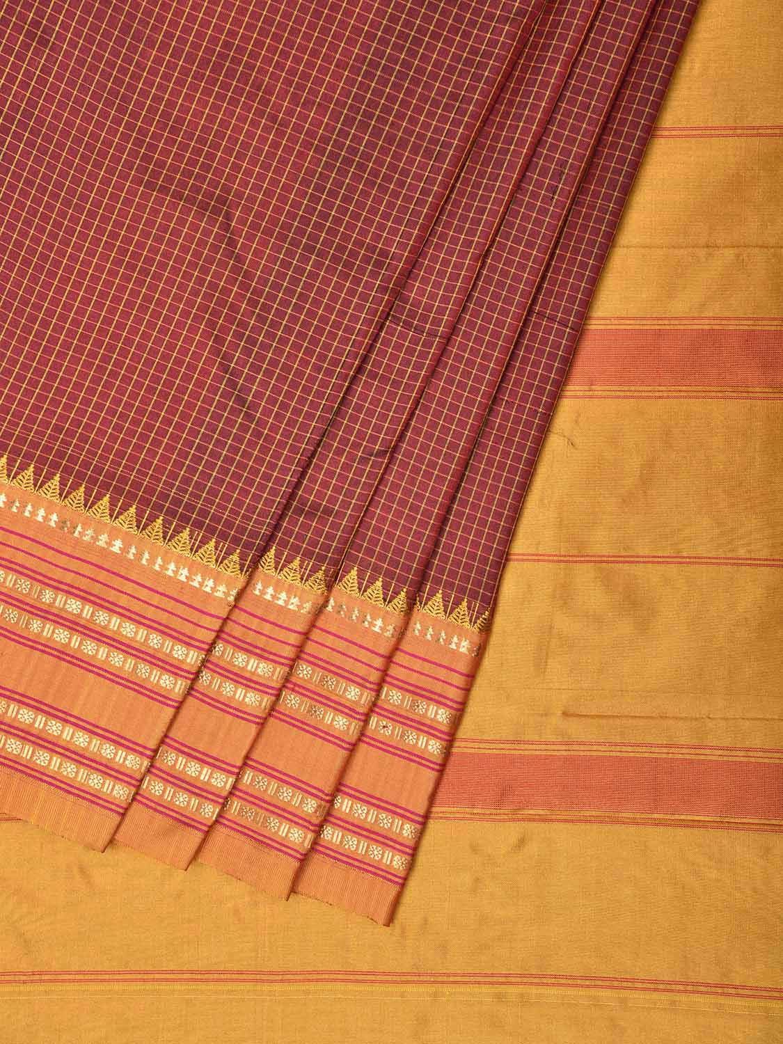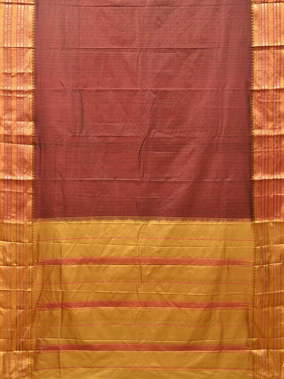 Dark Red and Yellow Narayanpet Silk Saree with Checks Design np1656