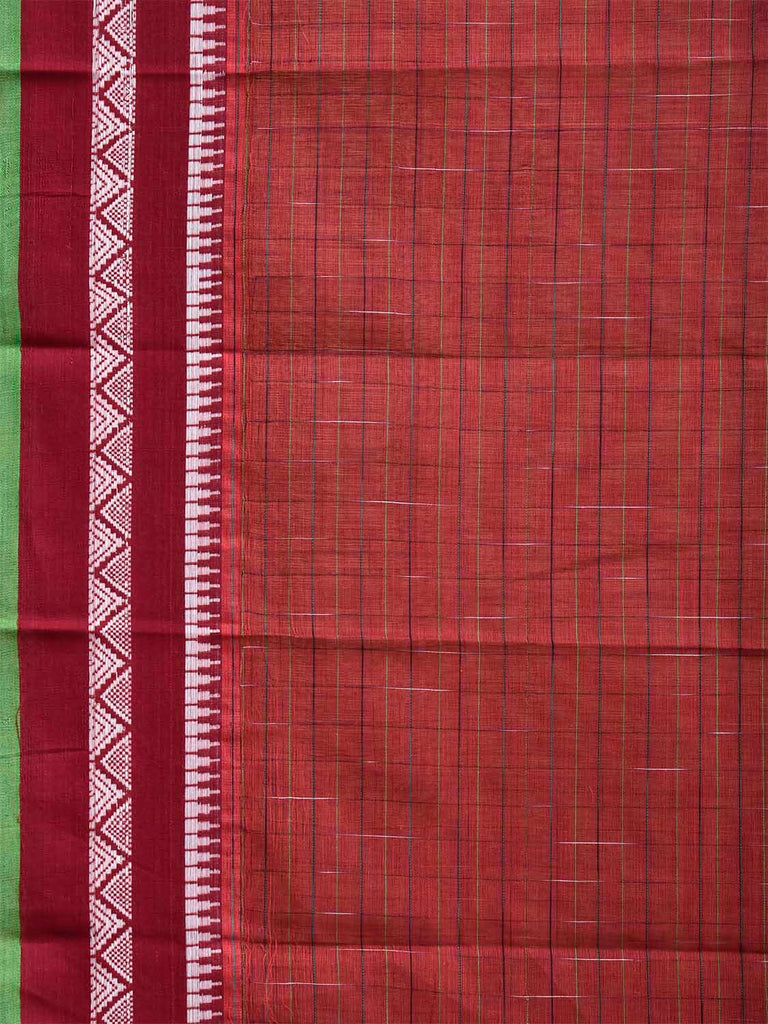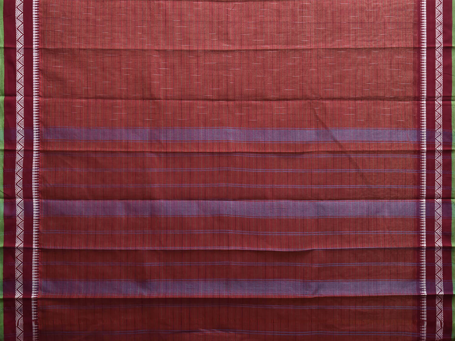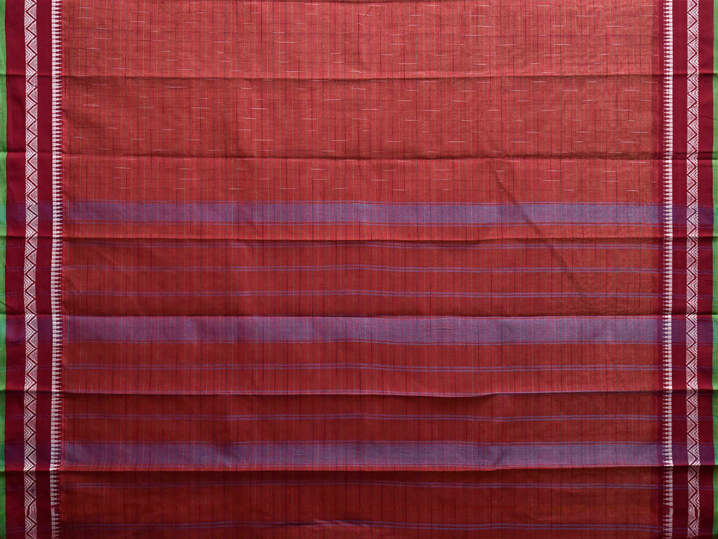 Dark Red Narayanpet Cotton Saree with Strips and Border Design No Blouse. This saree has no blouse.