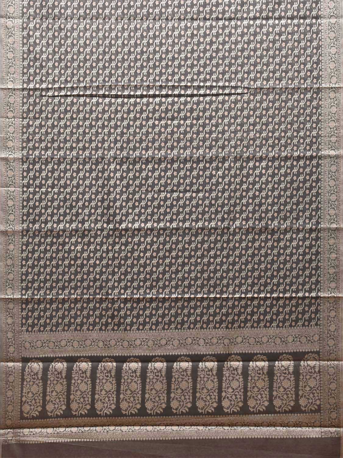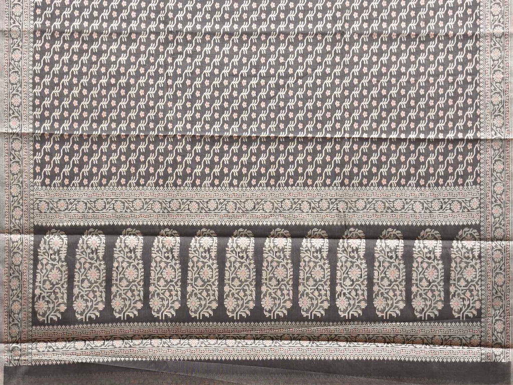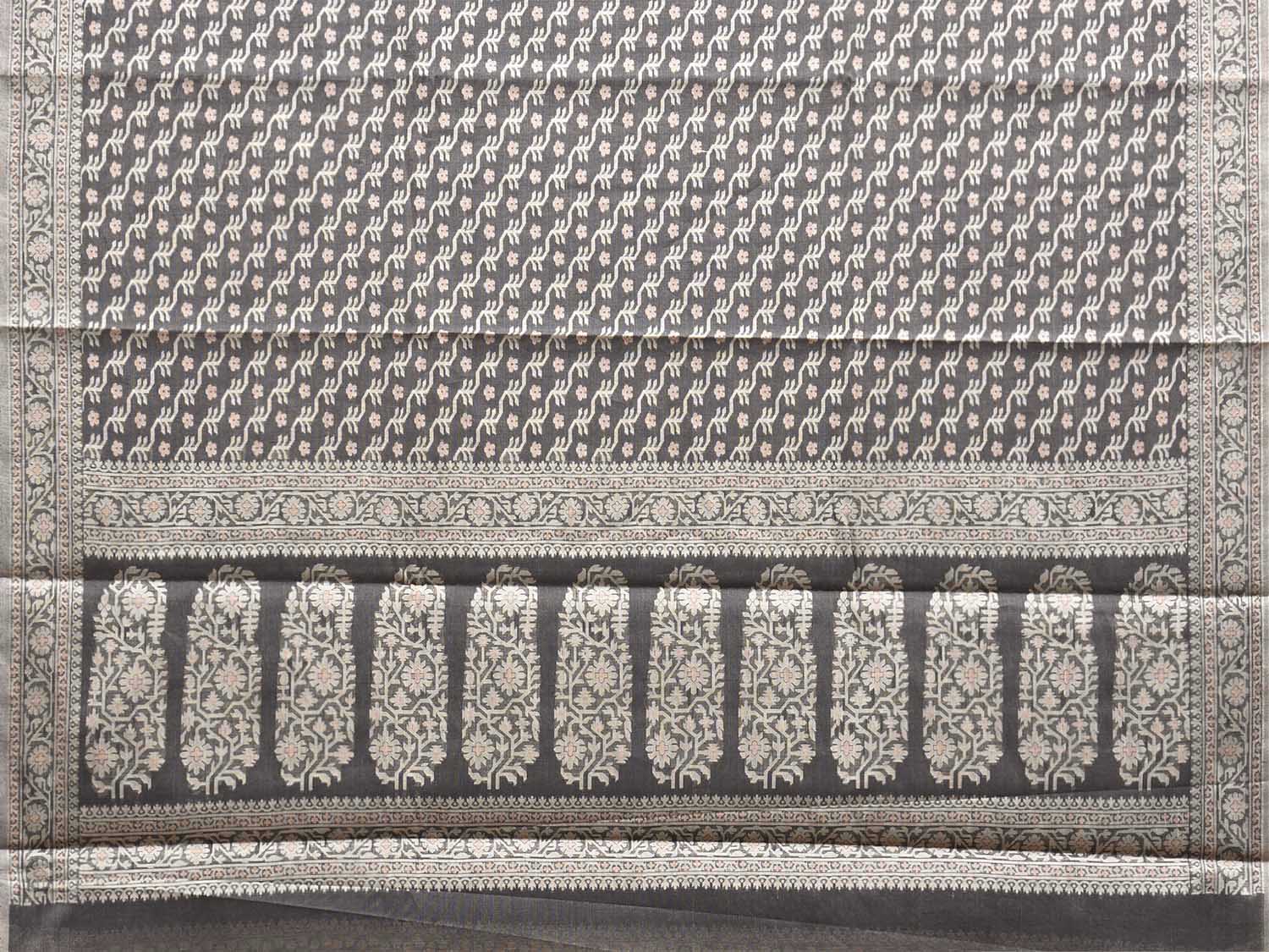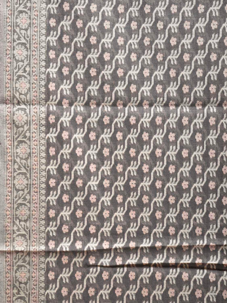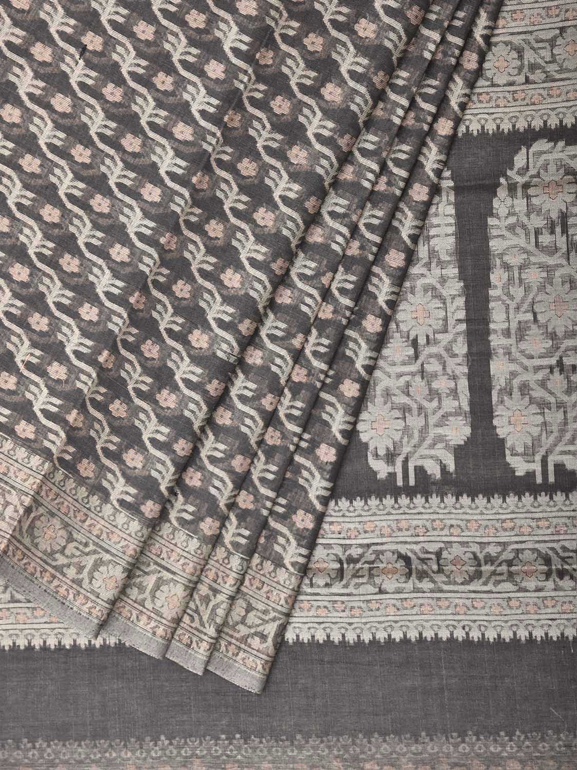 Grey and Cream Dhakai Jamdani Cotton Viscose Saree with Diagonal and Pallu Design dj0338