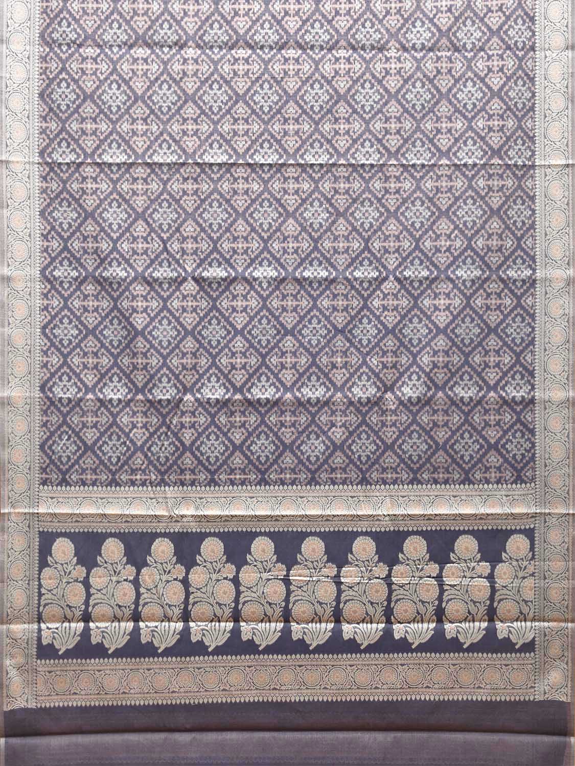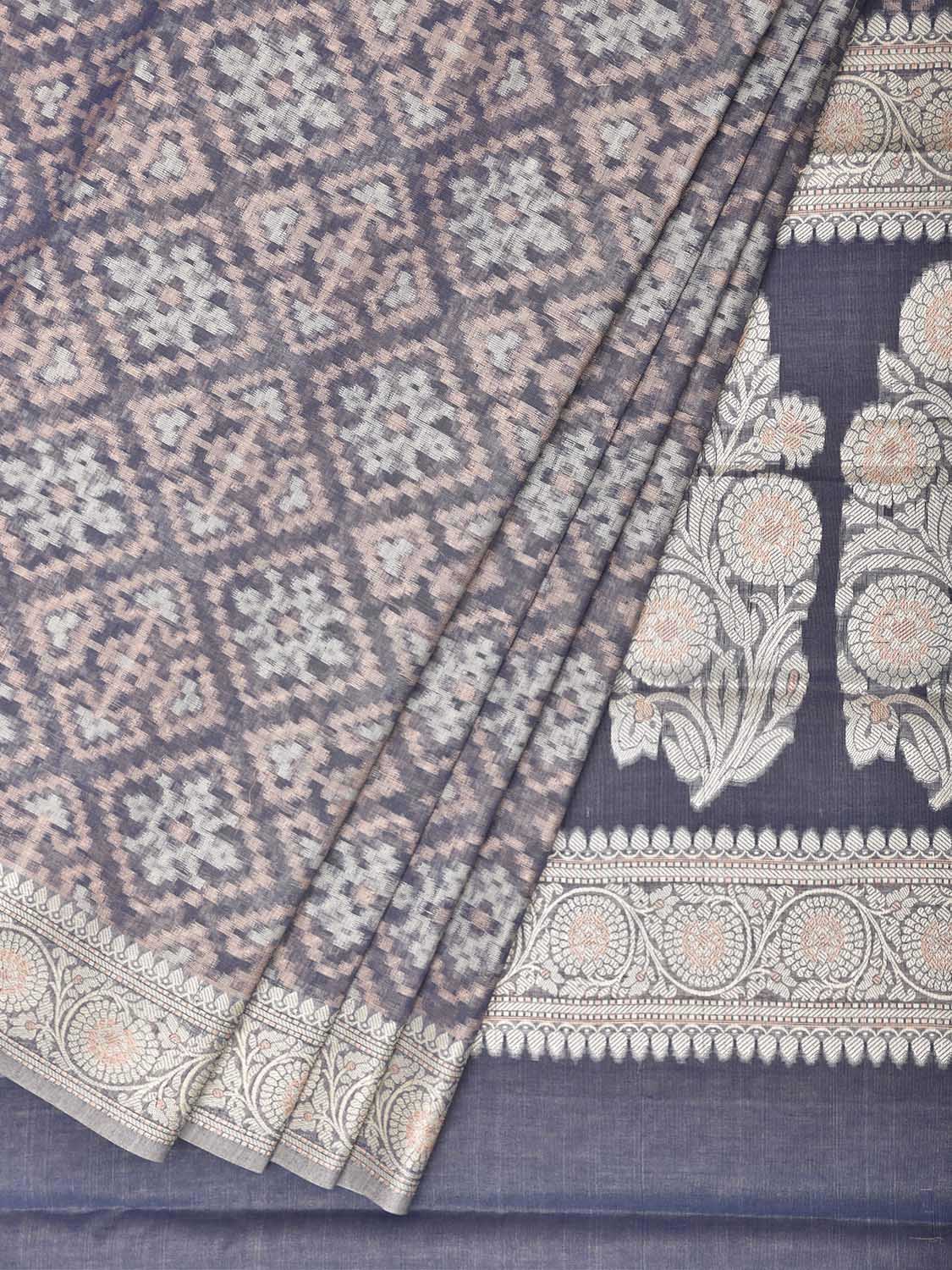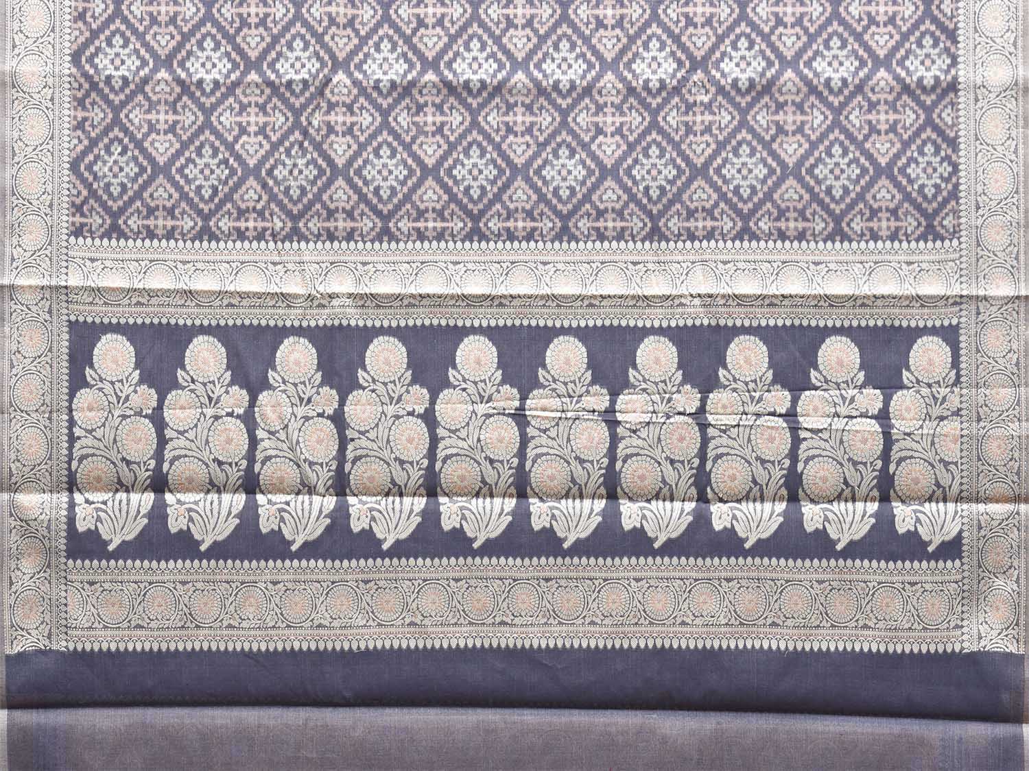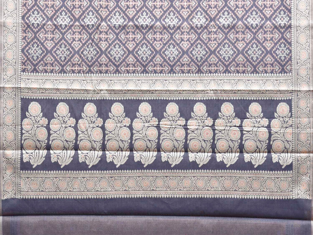 Grey and Cream Dhakai Jamdani Cotton Viscose Saree with Grill and Pallu Design dj0344