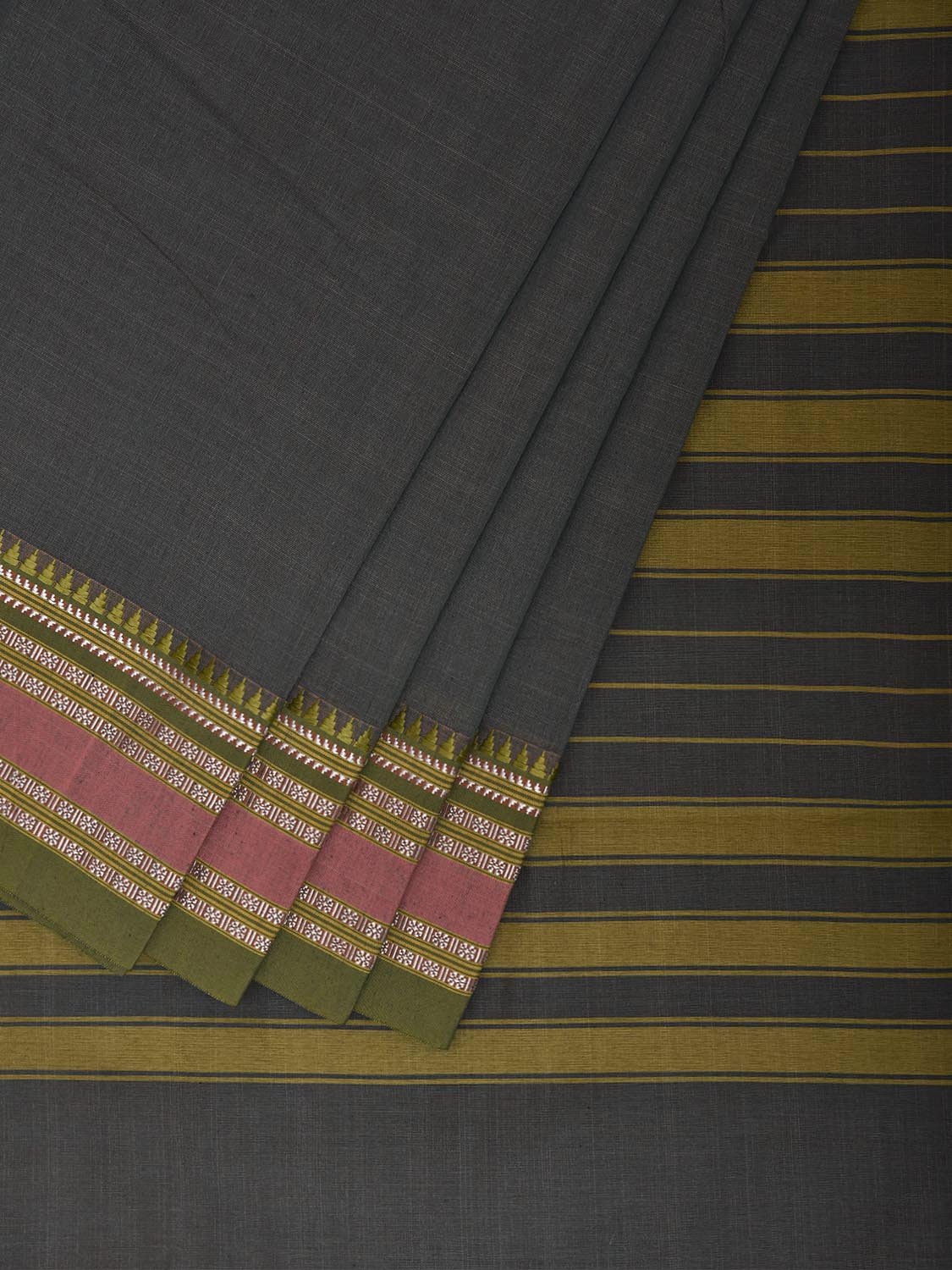 Grey and Olive Bamboo Cotton Plain Saree with Strips Pallu Design No Blouse. This is a blend of bamboo and cotton fibers, they have characteristics of both bamboo and cotton combined into one fabric. We Advise Gentle Handwash for Fabric Care. This saree has no blouse.