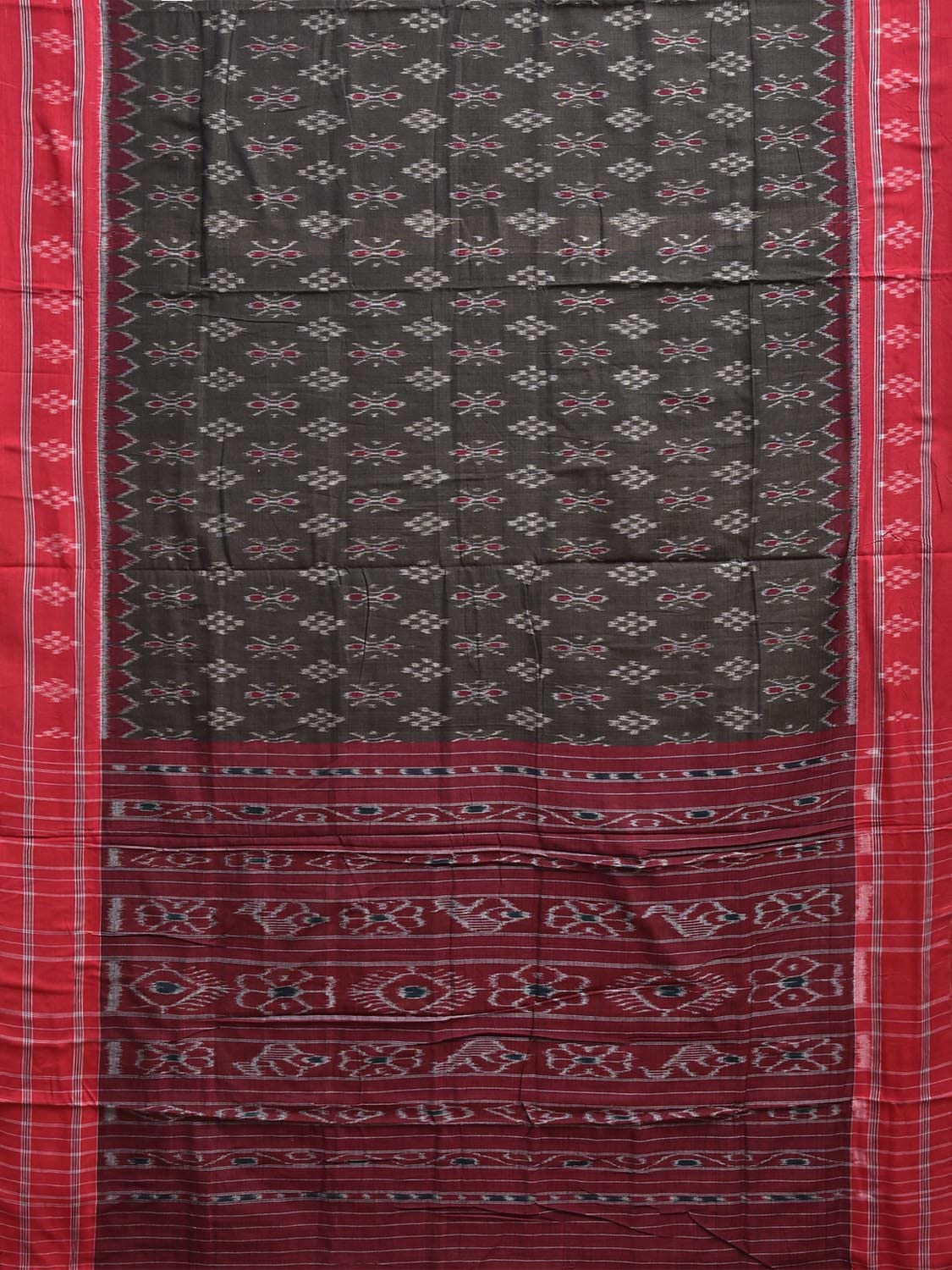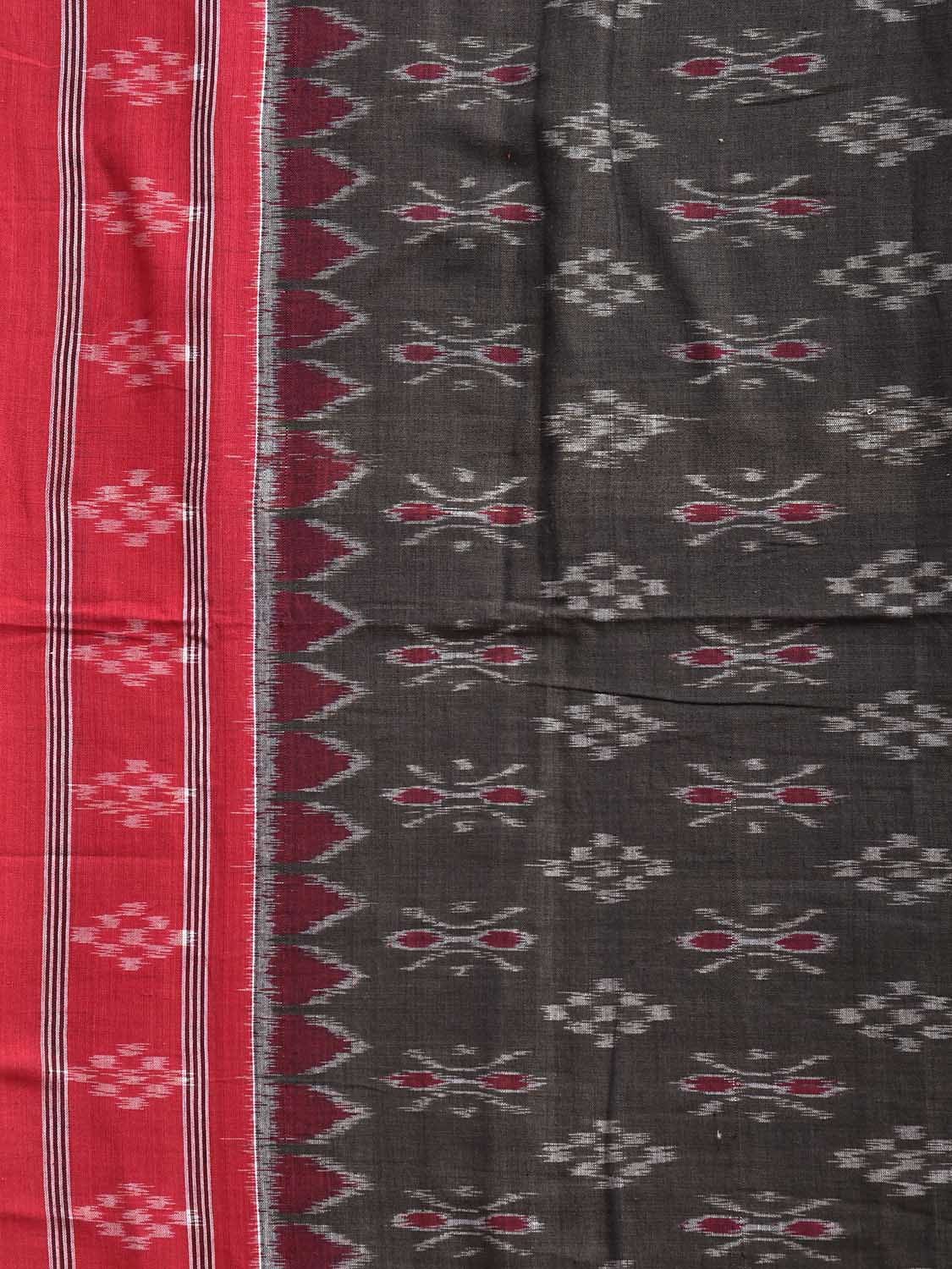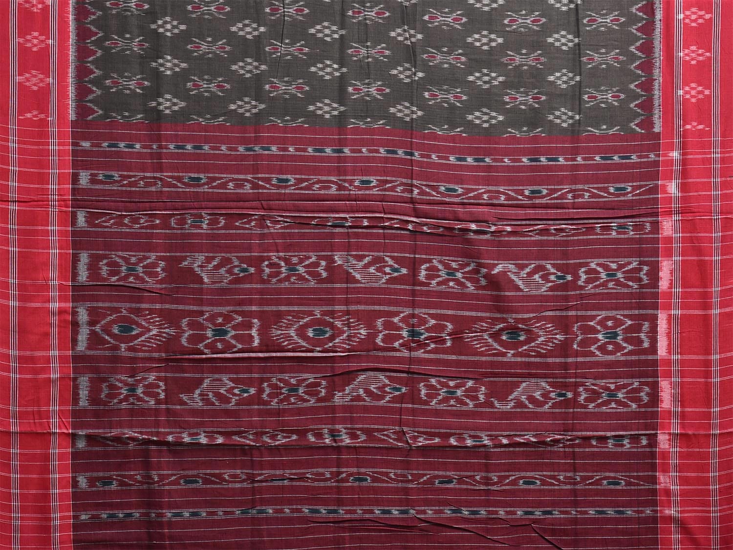 Grey and Red Pochampally Ikat Cotton Handloom Saree with Buta and Pallu Design No Blouse i0969