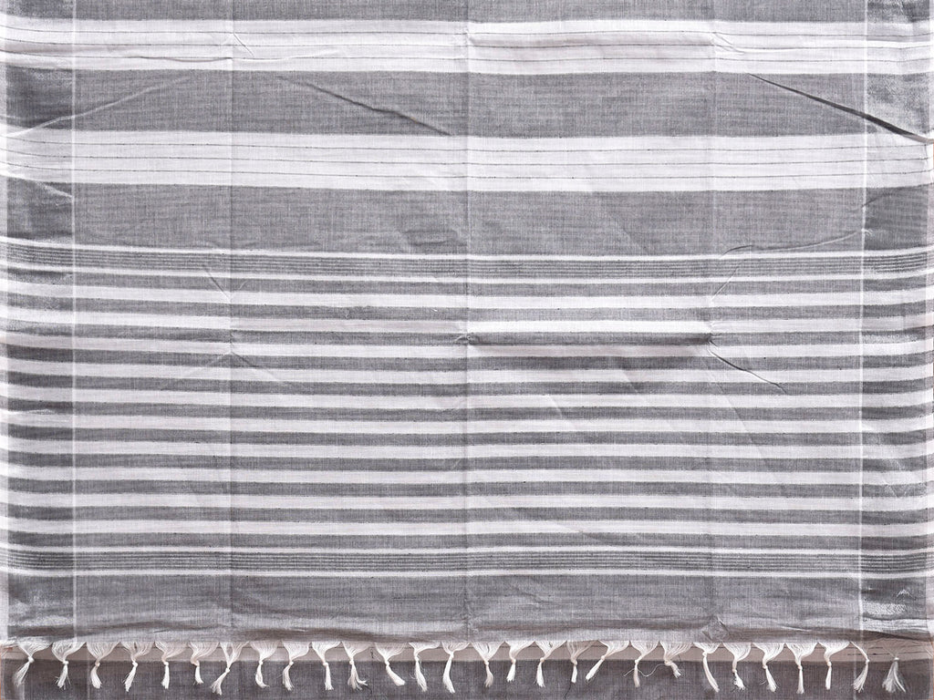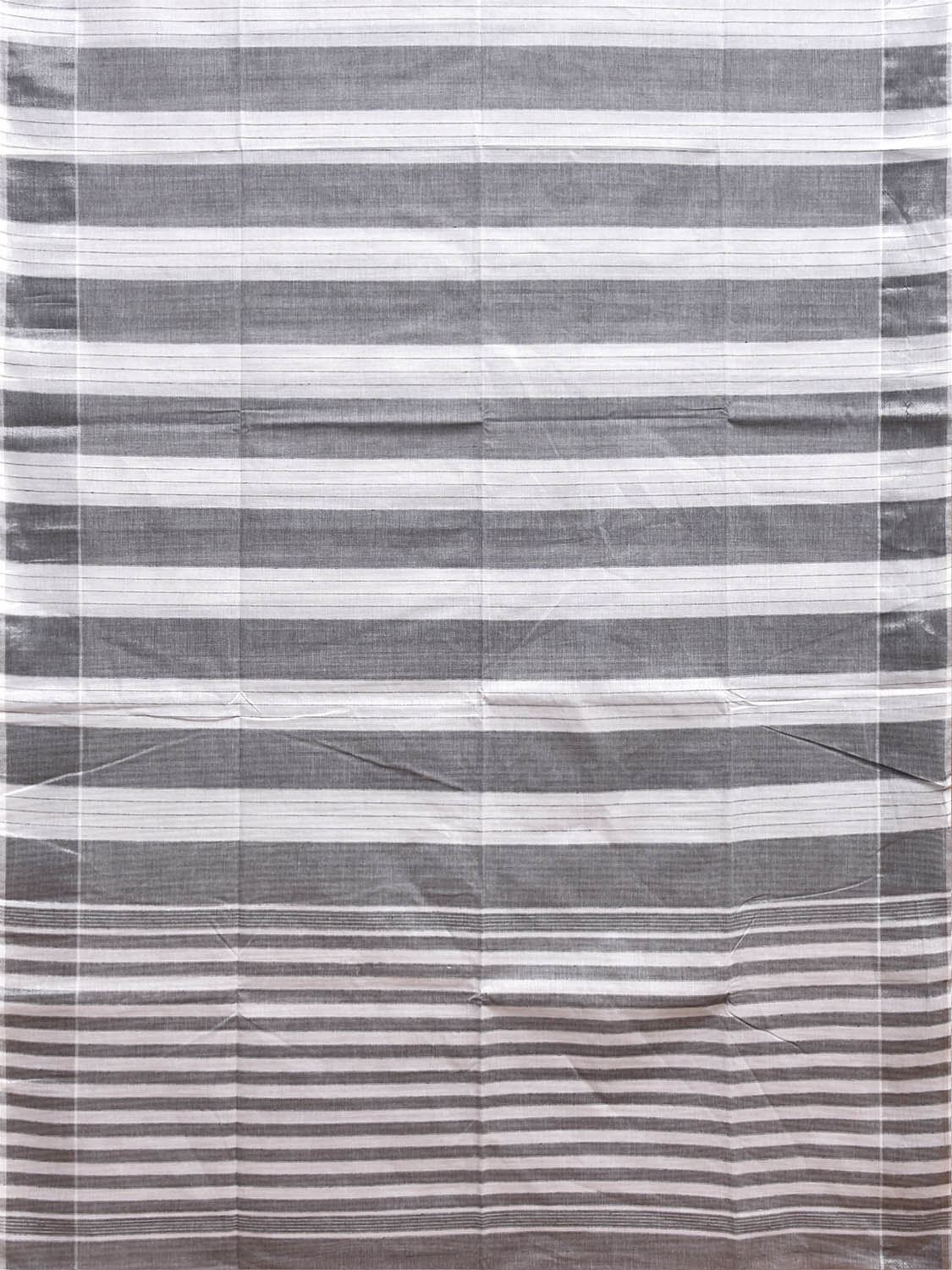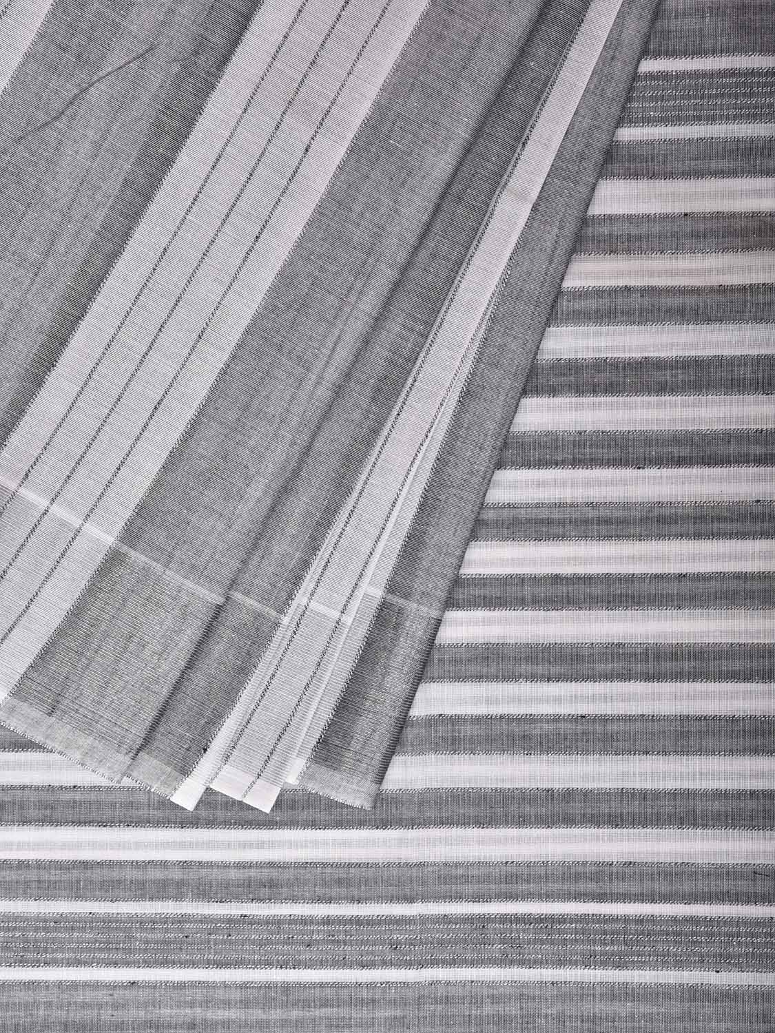 Grey and White Venkatagiri Cotton Saree with Strips Design v0312