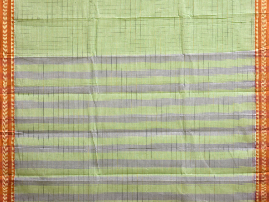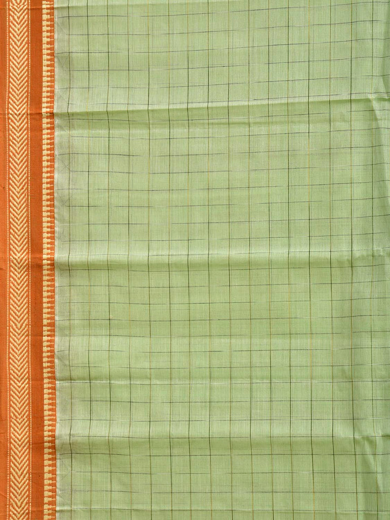 Light Green and Orange Narayanpet Cotton Handloom Saree with Big Checks Design No Blouse. This saree has no blouse.