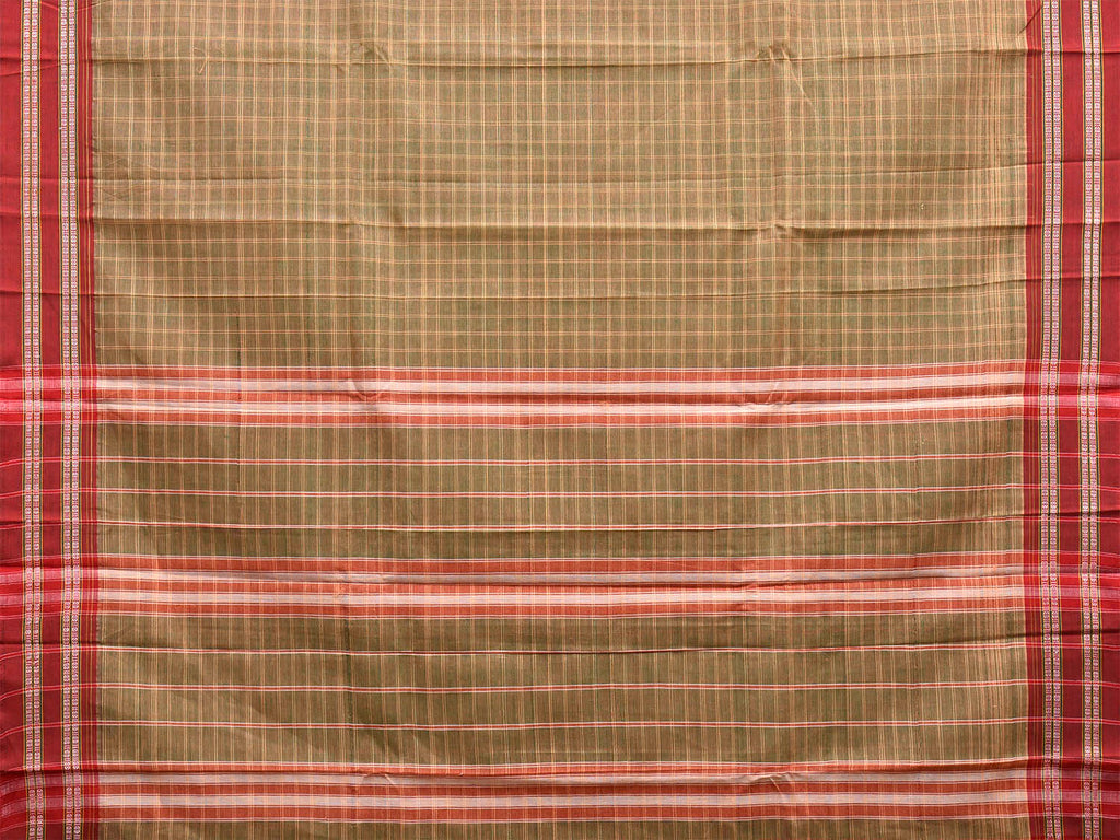 Light Olive and Red Narayanpet Cotton Saree with Big Checks Design No Blouse. This saree has no blouse.
