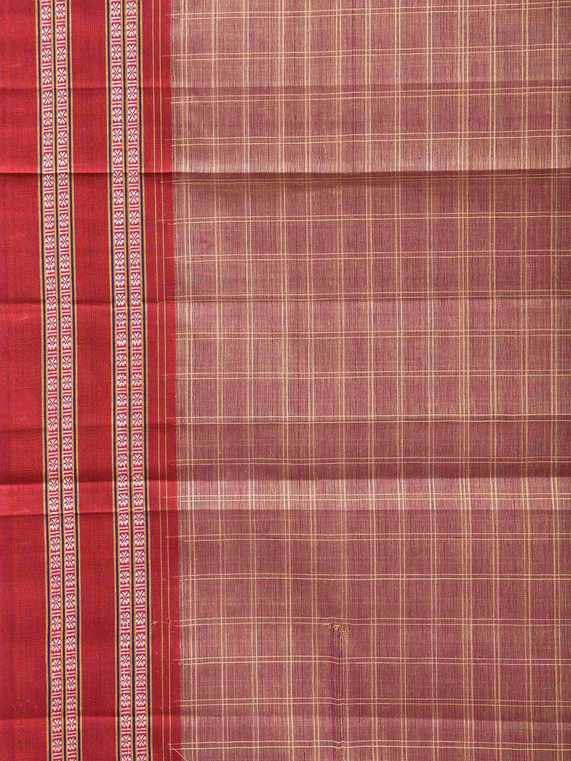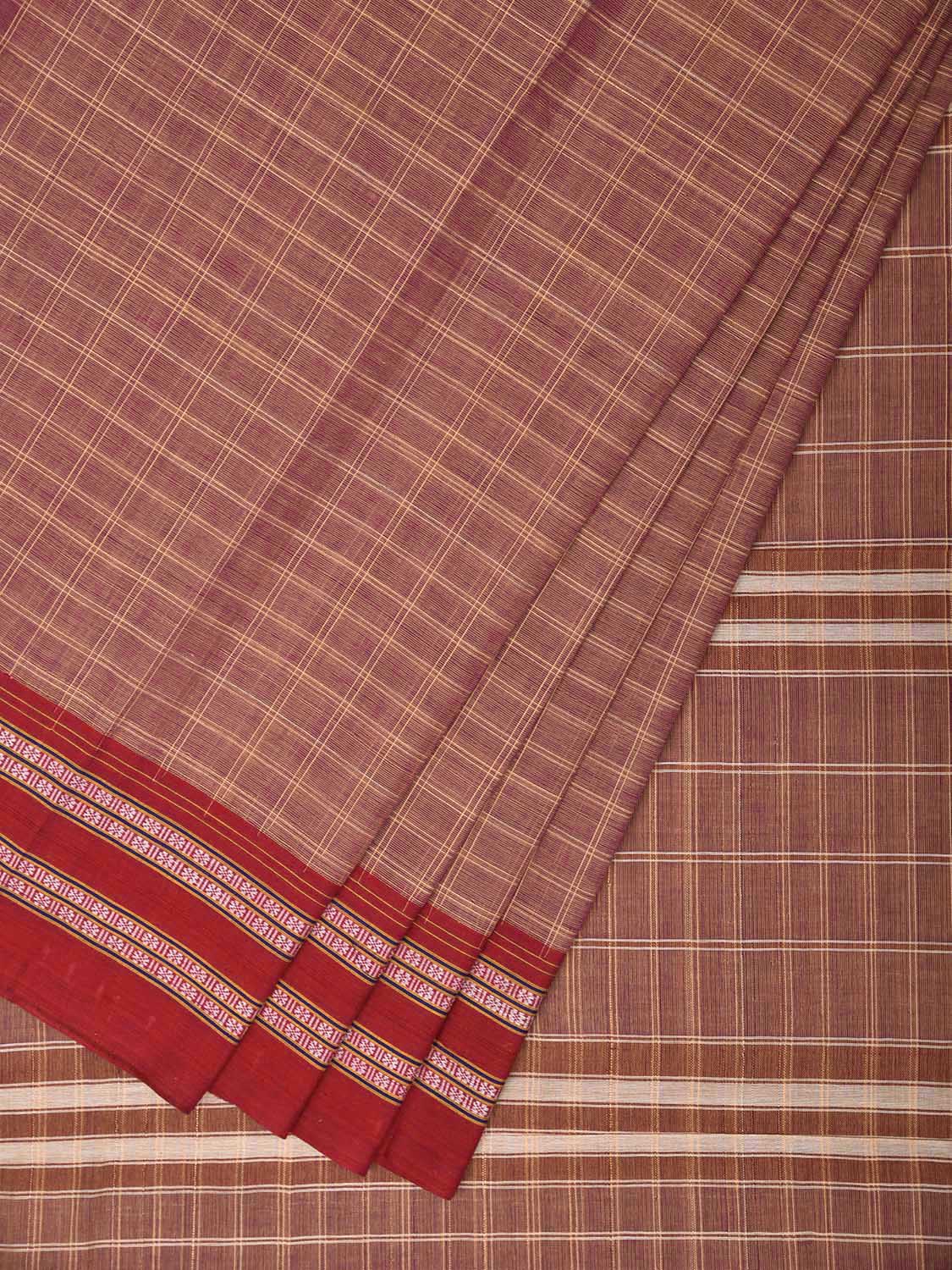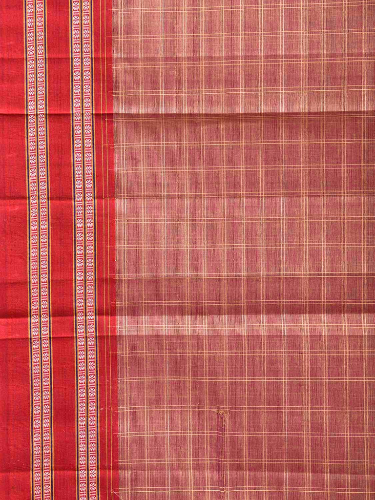 Light Rust and Red Narayanpet Cotton Saree with Big Checks Design No Blouse. This saree has no blouse.