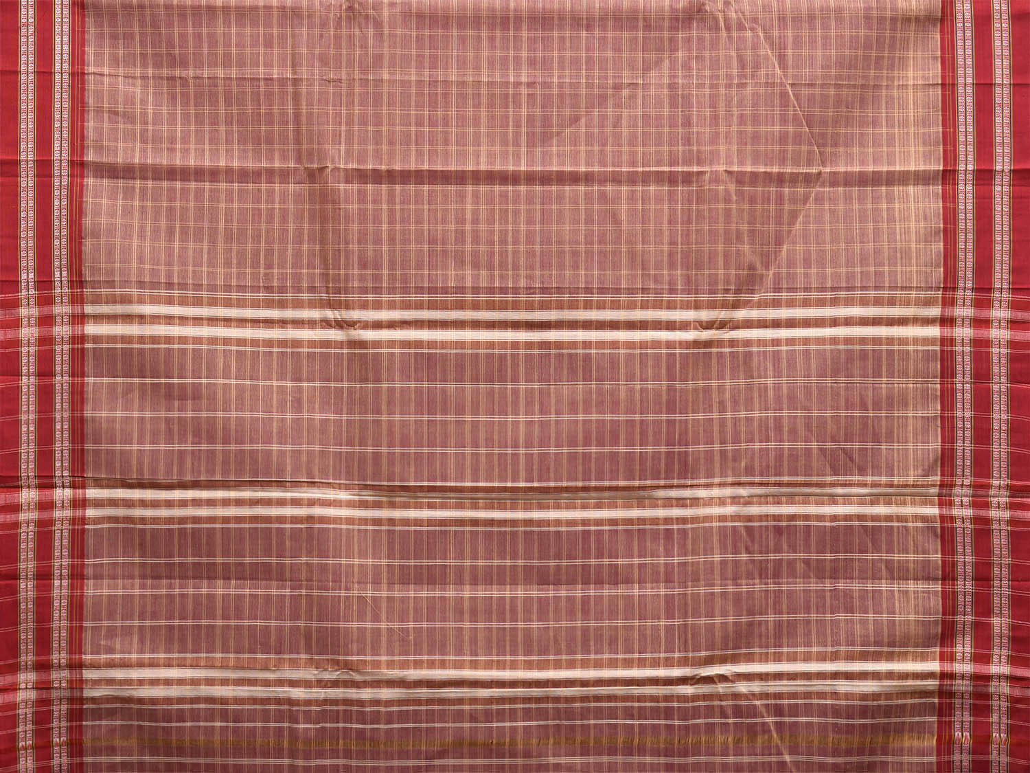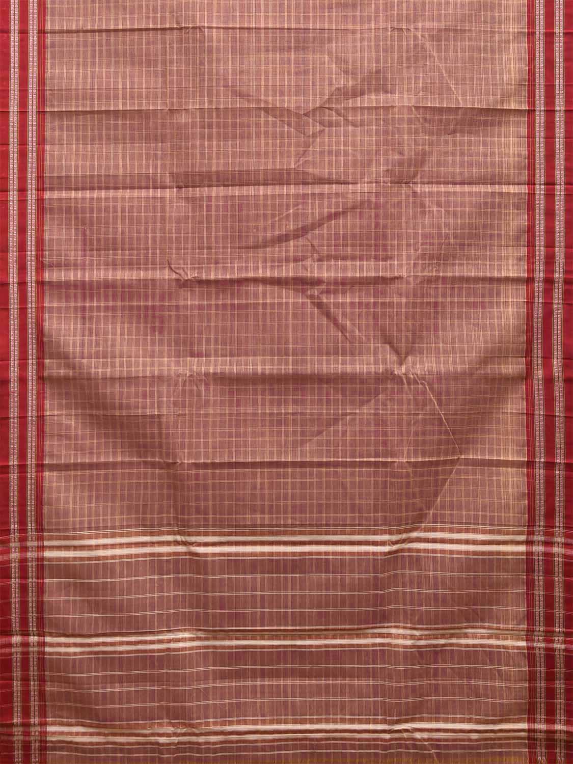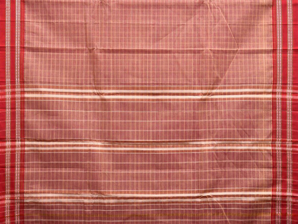Light Rust and Red Narayanpet Cotton Saree with Big Checks Design No Blouse. This saree has no blouse.