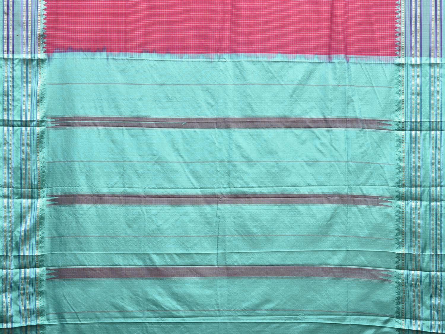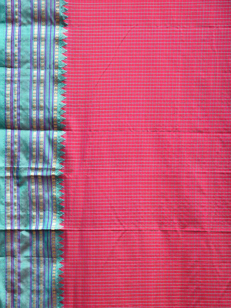 Maroon and Turquoise Narayanpet Silk Saree with Checks Design