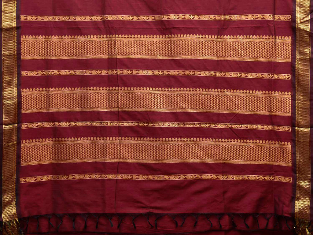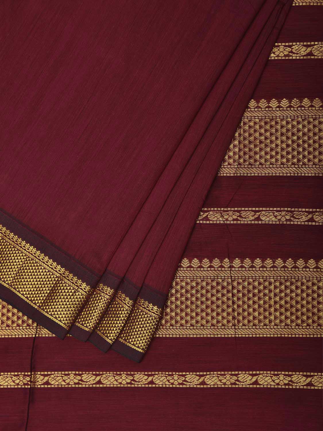 Maroon Gadwal Cotton Viscose Plain Saree with Border and Pallu Design g0675