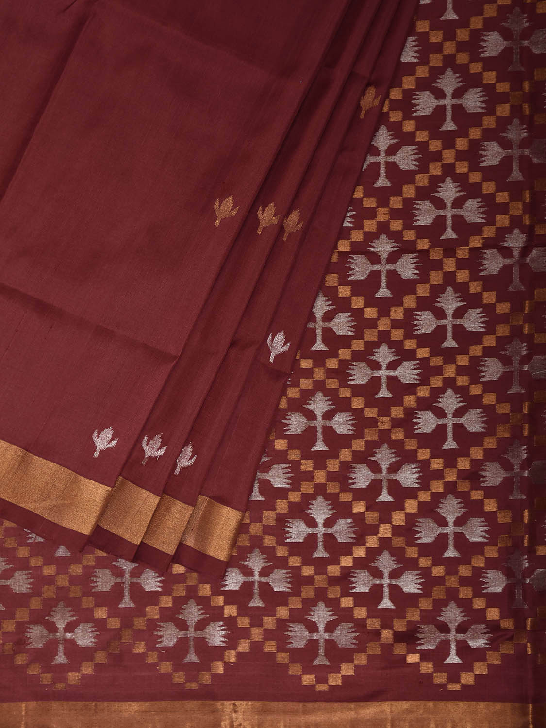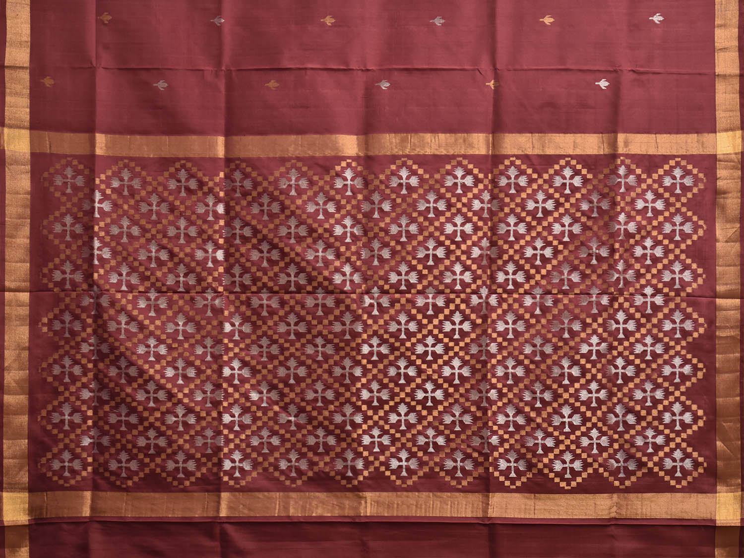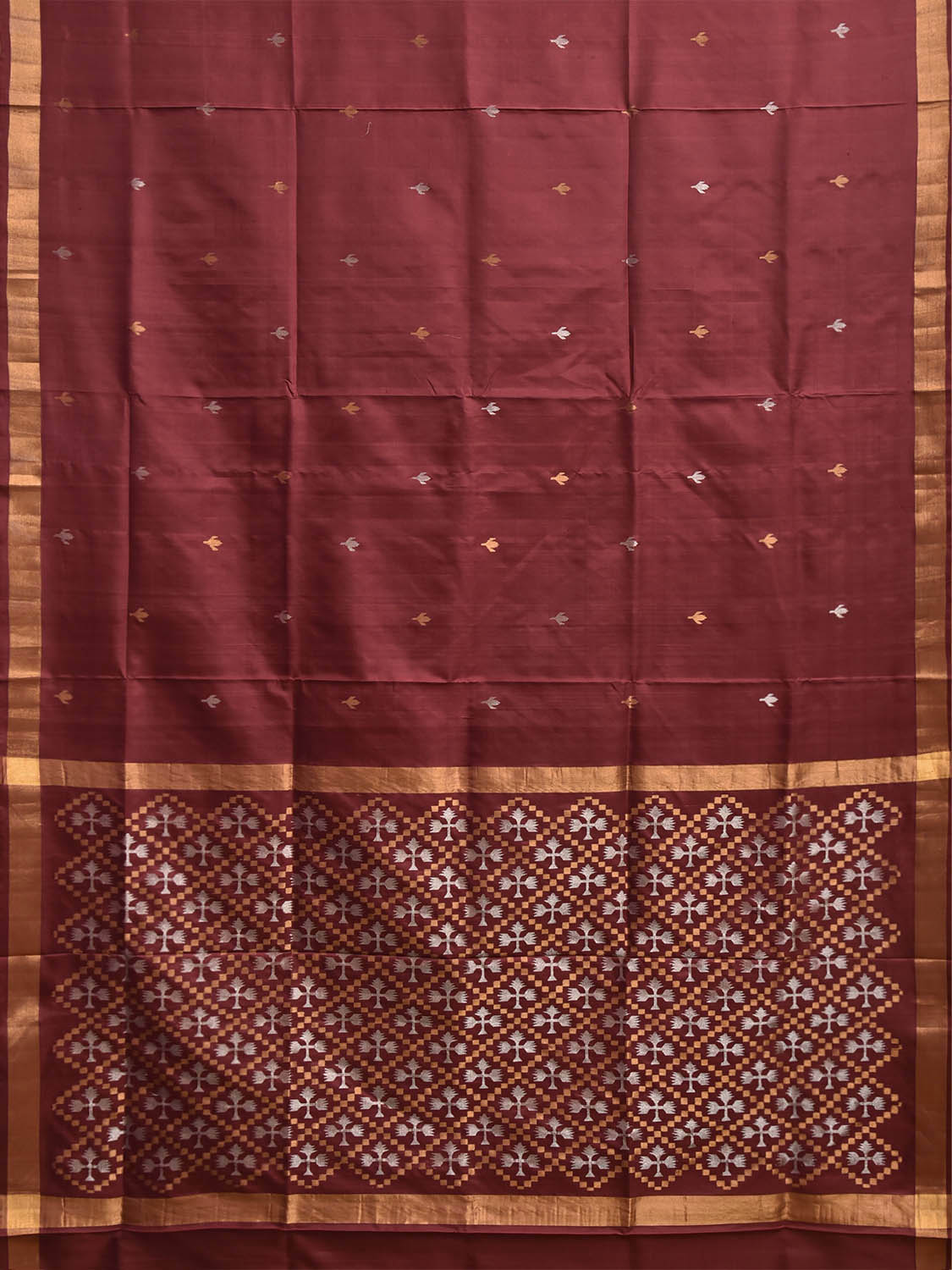 Maroon Uppada Silk Handloom Saree with Jamdani Pallu Design