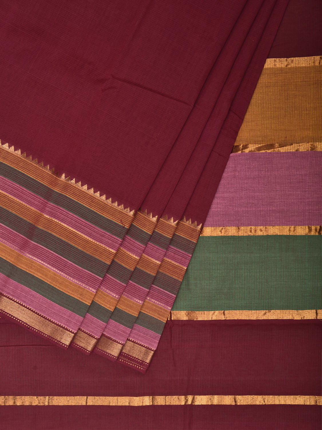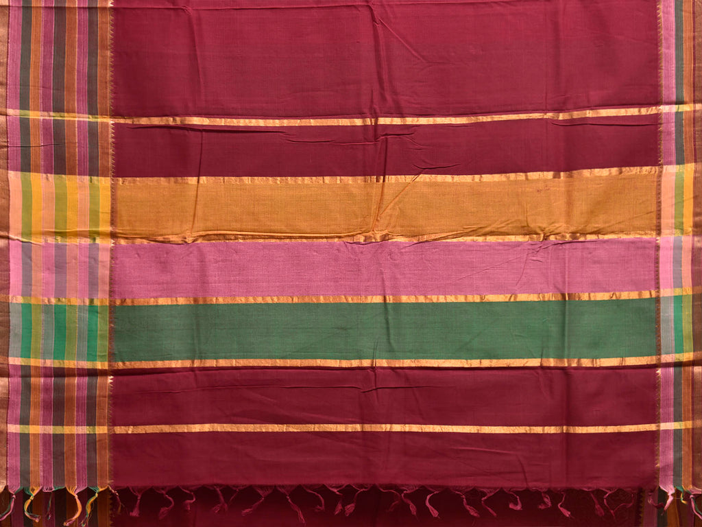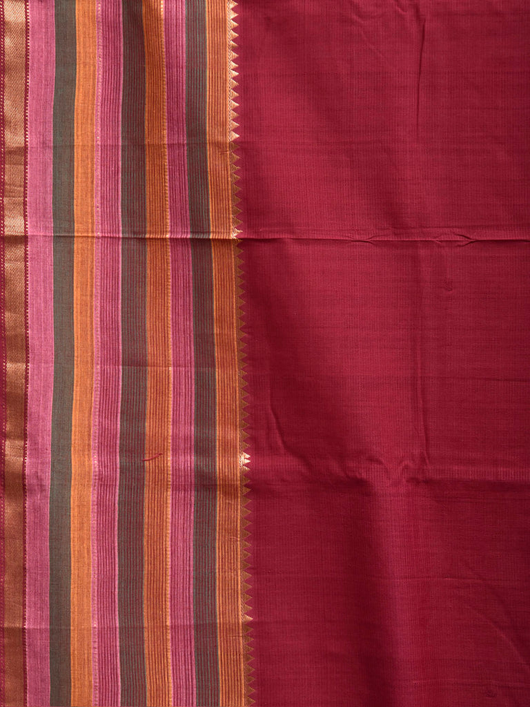 Maroon Venkatagiri Cotton Handloom Plain Saree with Strips Pallu Design. Venkatagiri sarees are known for very fine cotton hand woven cotton saree. They are light weight and are traditional saree made in Andhra Pradesh. For fabric care we advice gentle handwash separately.