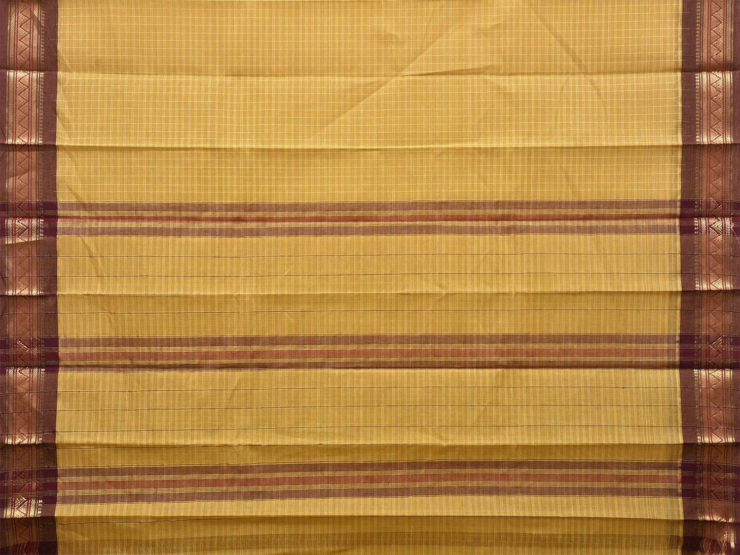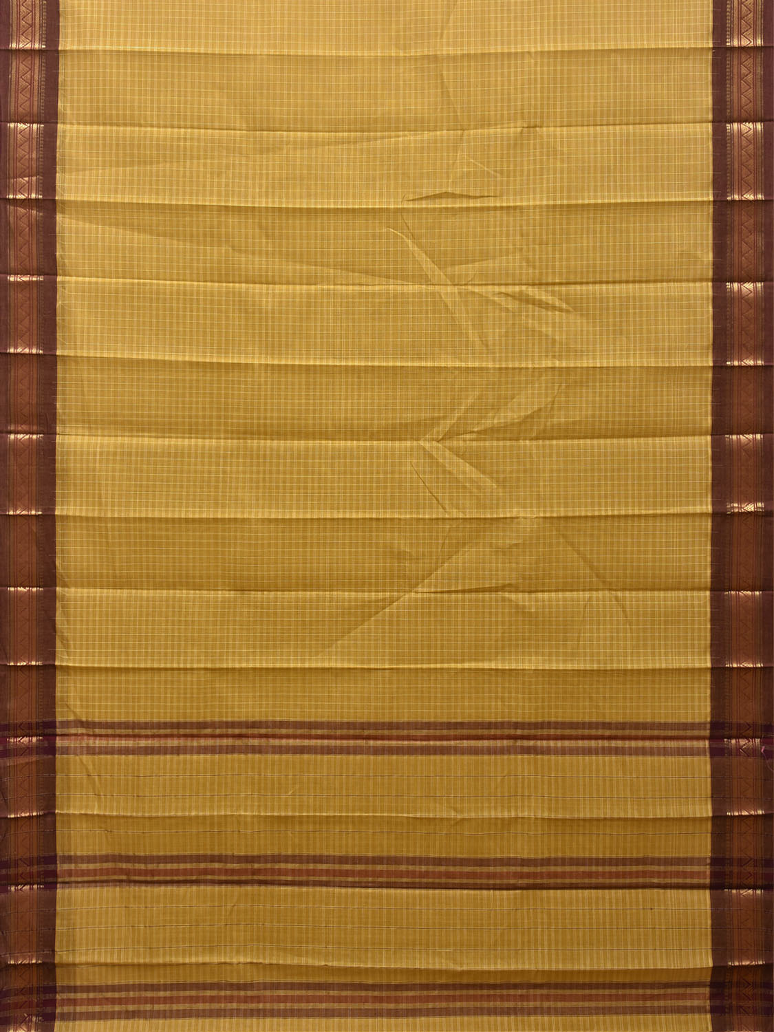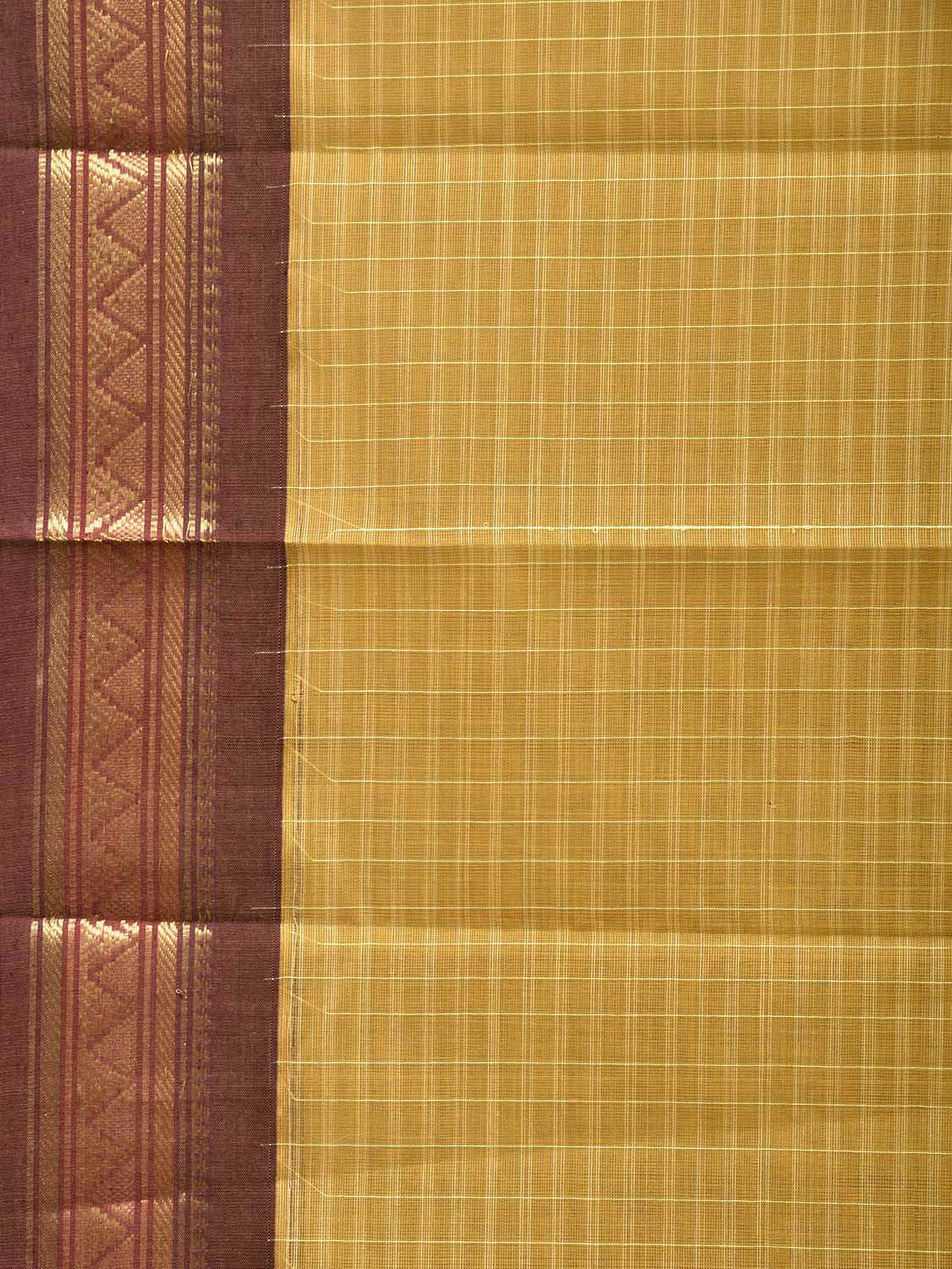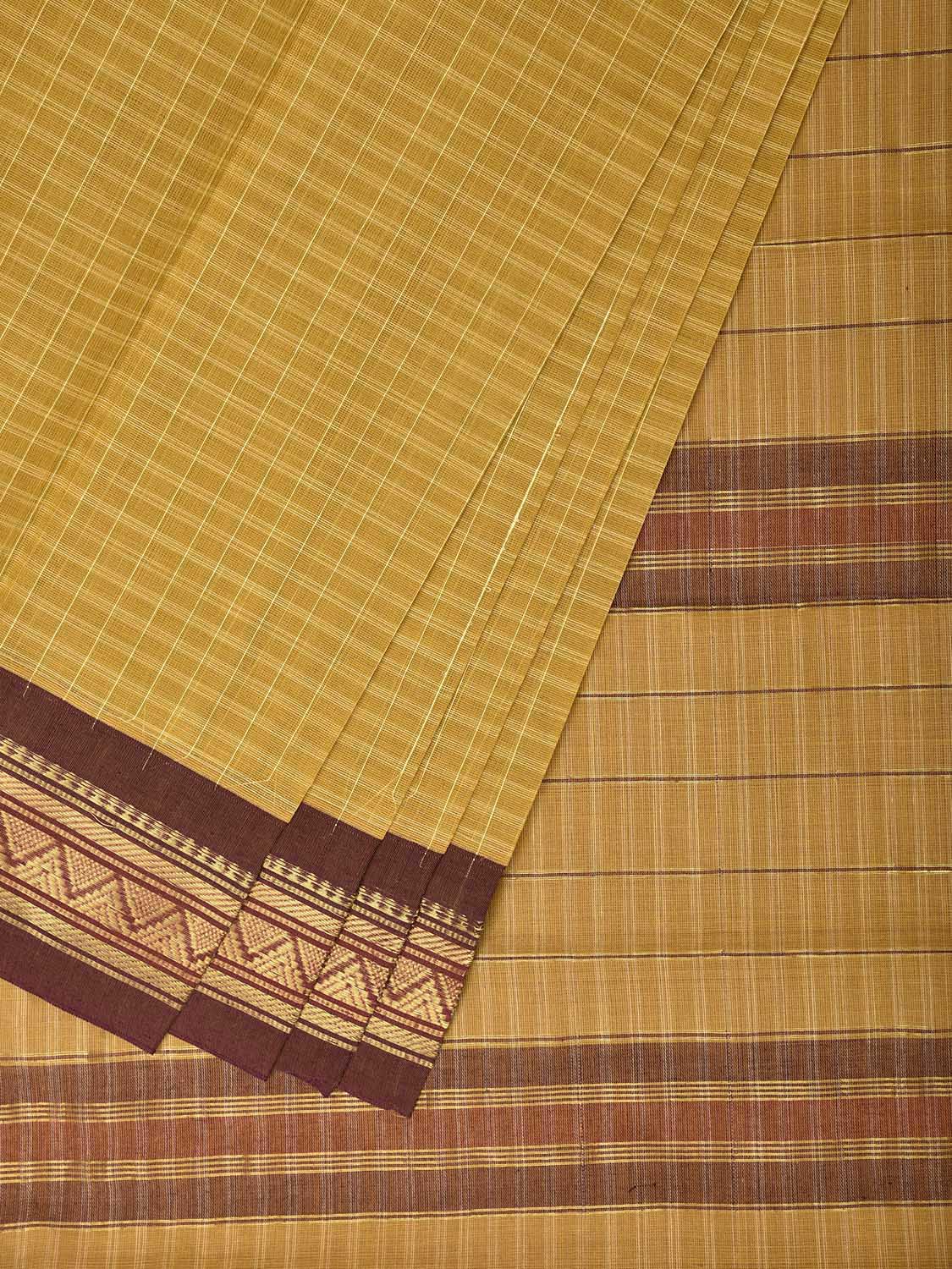 Mustard and Brown Narayanpet Cotton Saree with Checks Design No Blouse. This saree has no blouse.