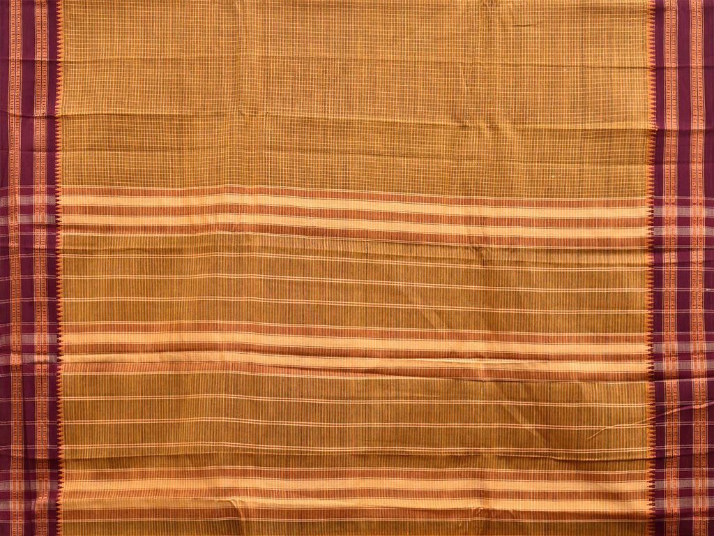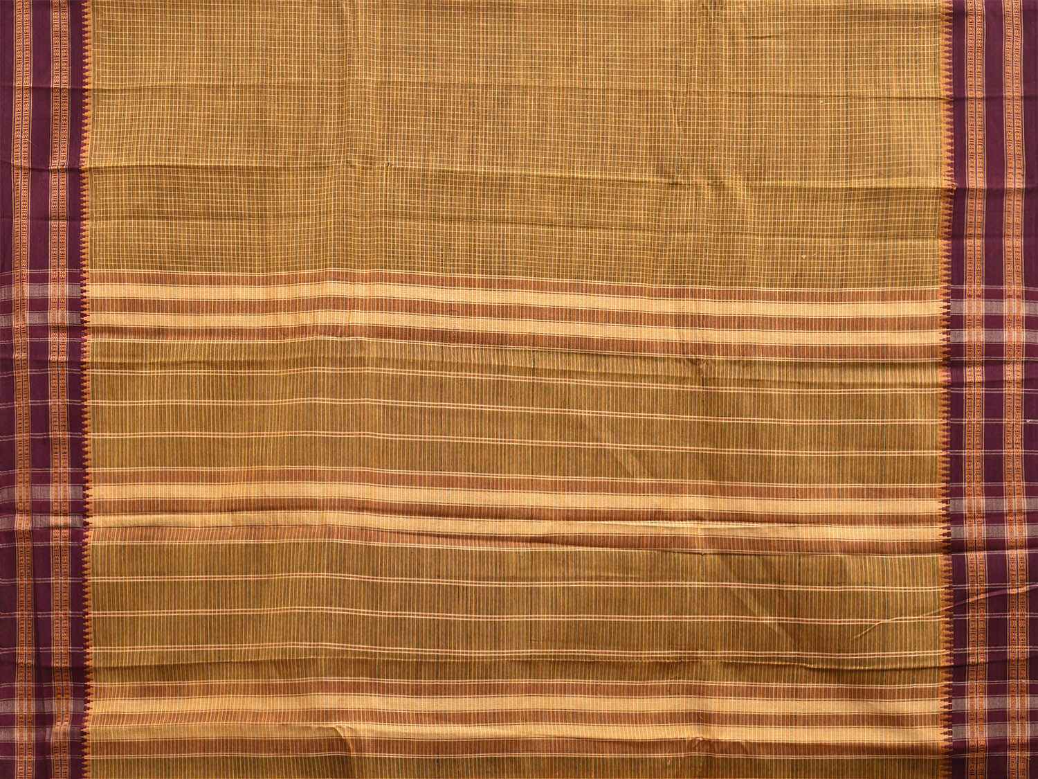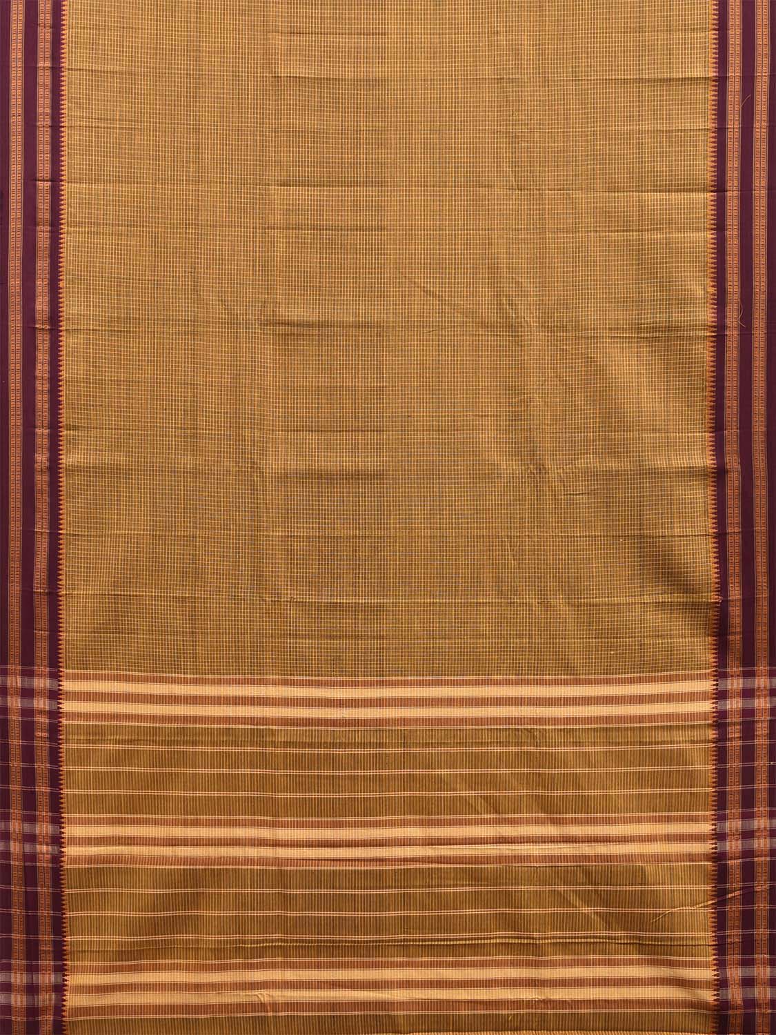 Mustard and Olive Narayanpet Cotton Saree with Checks Design No Blouse. This saree has no blouse.