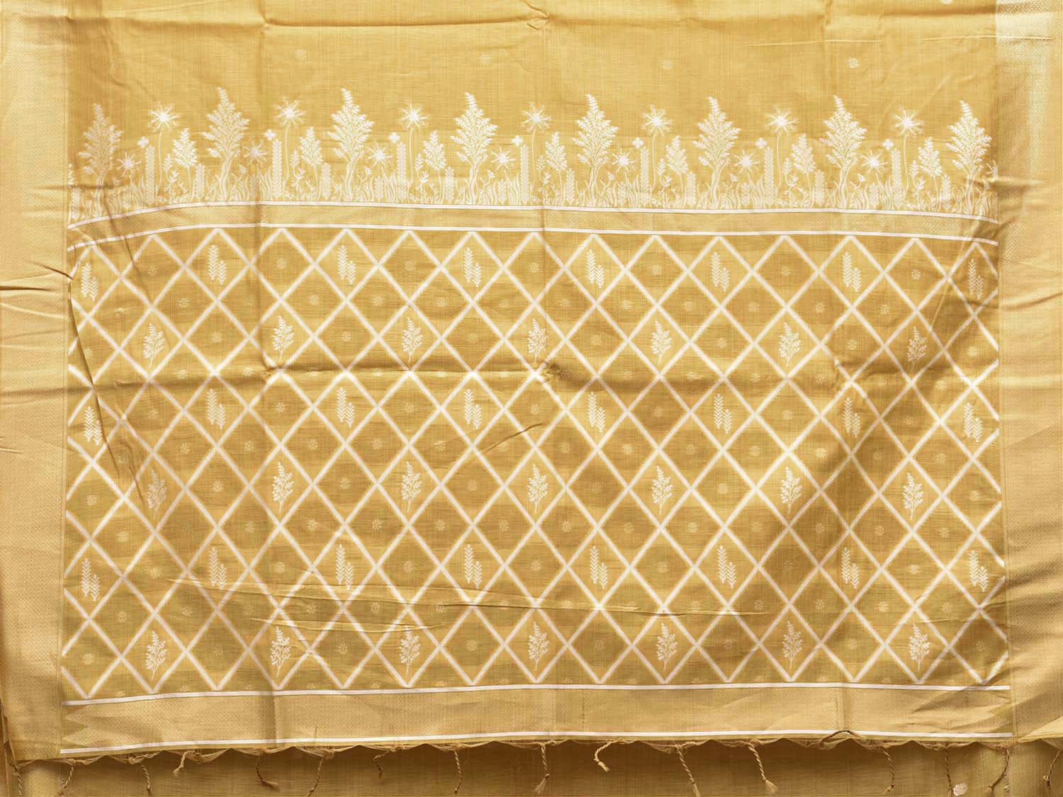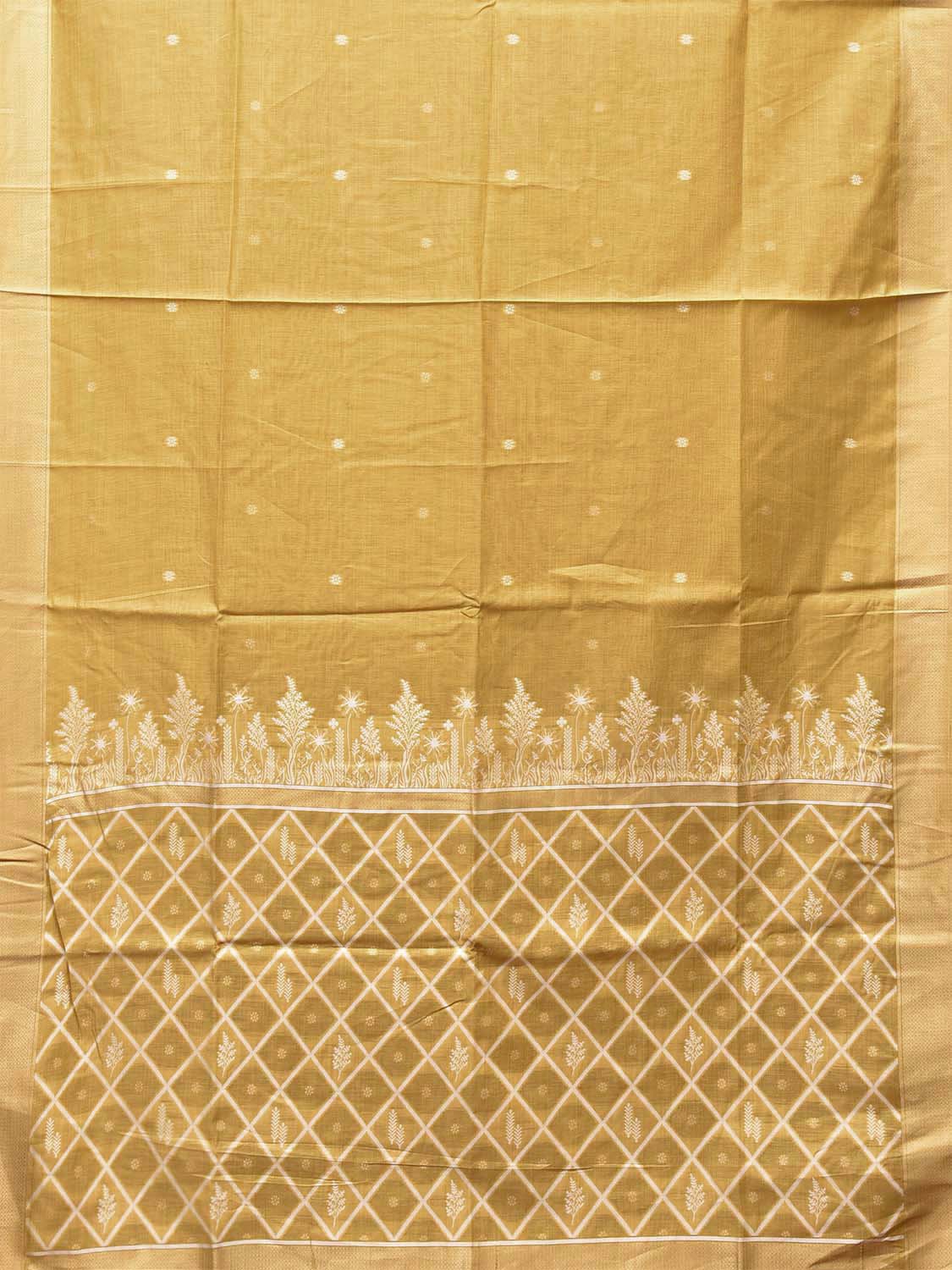 Mustard Dhakai Jamdani Cotton Viscose Saree with Grill Pallu Design. These are some of the traditional Dhakai Jamdani designs, these sarees have geometric designs and sometimes floral or combination of both. We advice gentle handwash separately for fabric care.