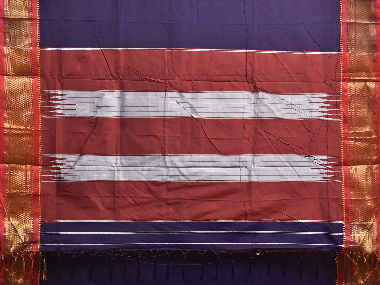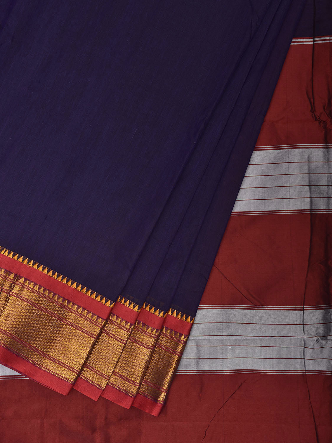 Navy and Red ilkal Cotton Viscose Saree with Contrast Pallu Design No Blouse. For fabric care we advise gentle handwash separately. This saree has no blouse.