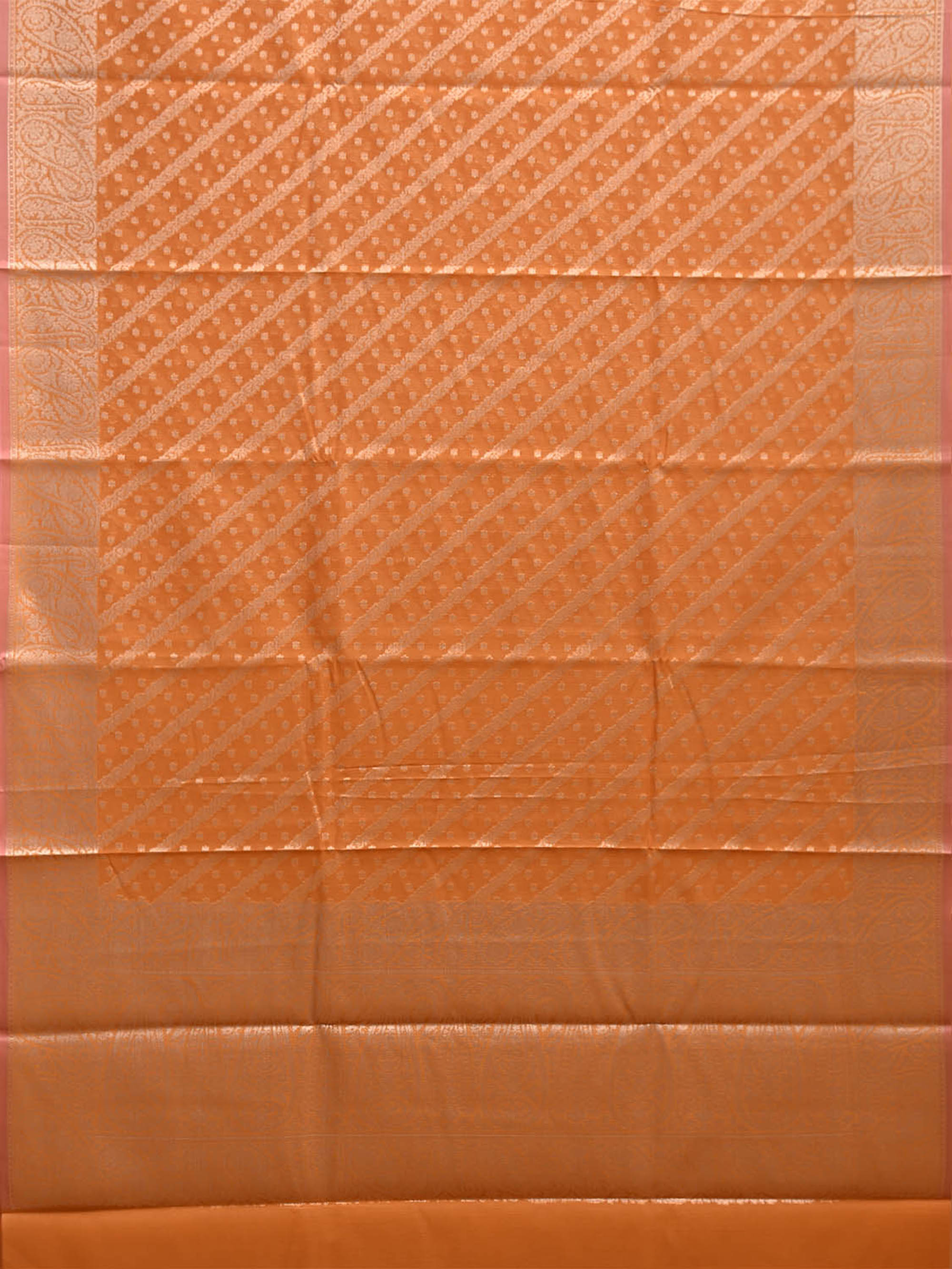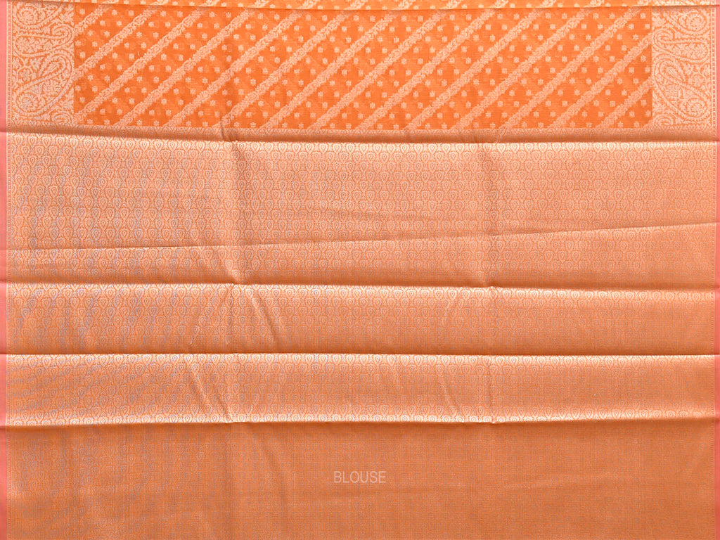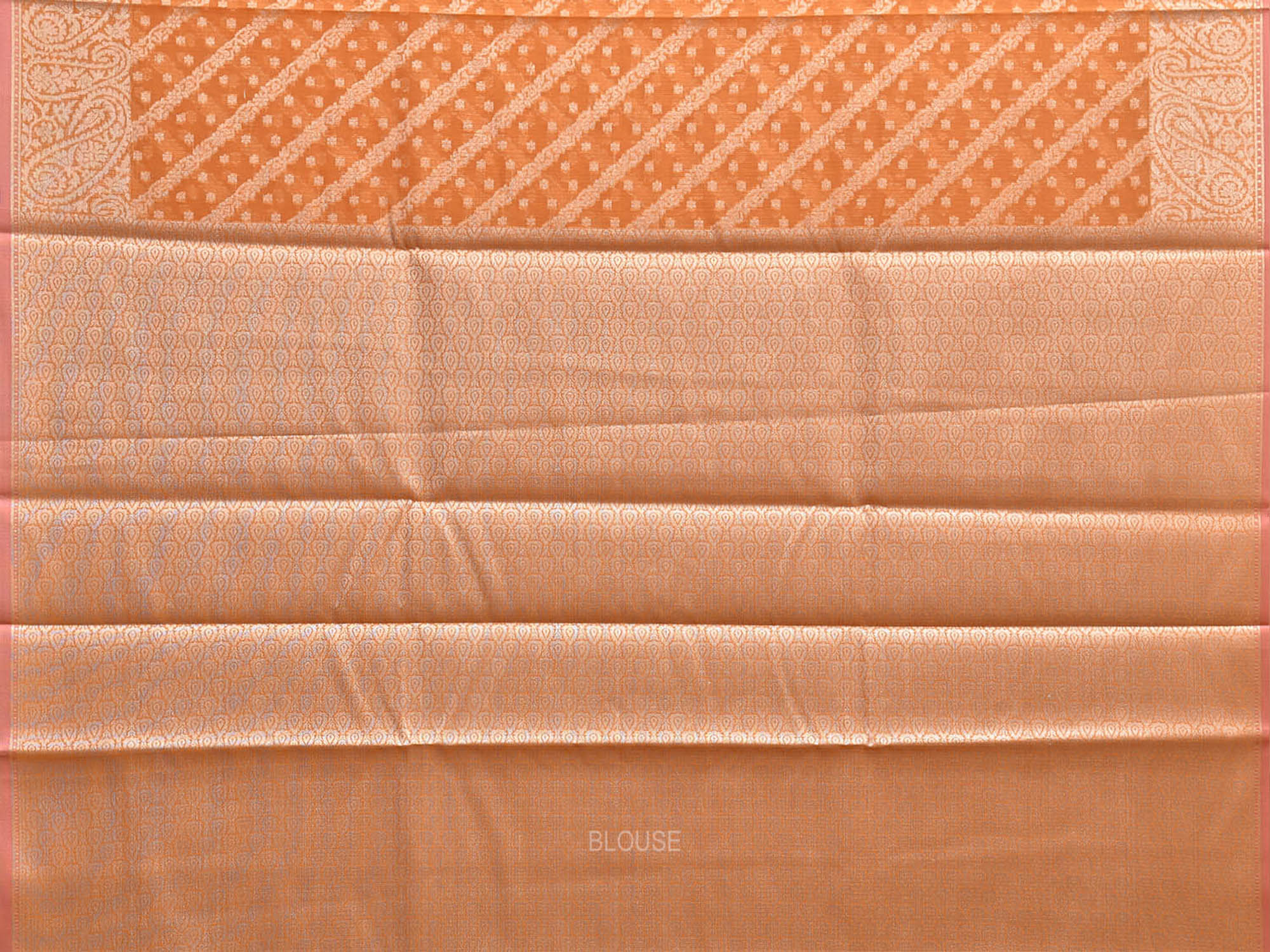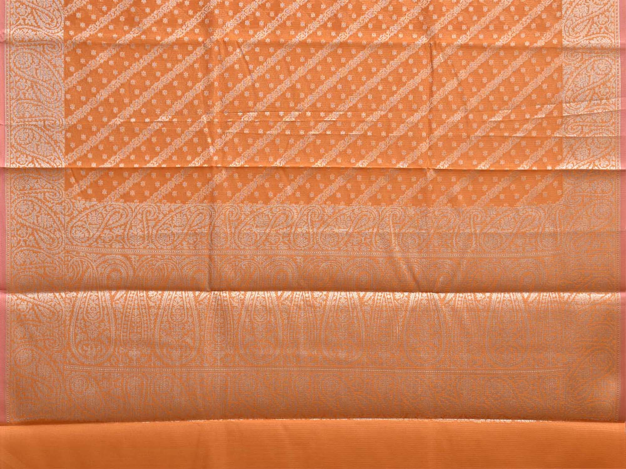 Orange Dhakai Jamdani Cotton Viscose Saree with Diagonal and Pasley Border-Pallu Design. These are some of the traditional Dhakai Jamdani designs, these sarees have geometric designs and sometimes floral or combination of both. We advice gentle handwash separately for fabric care.