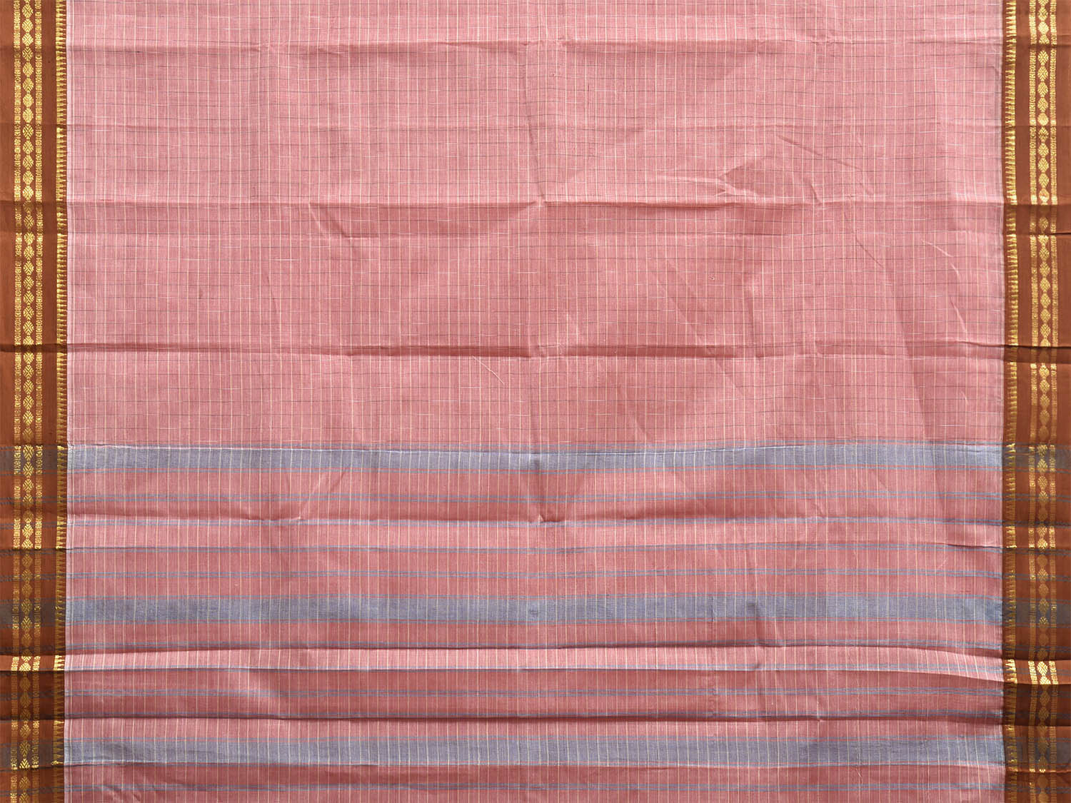 Peach and Rust Narayanpet Cotton Handloom Saree with Strips Pallu Design No Blouse.