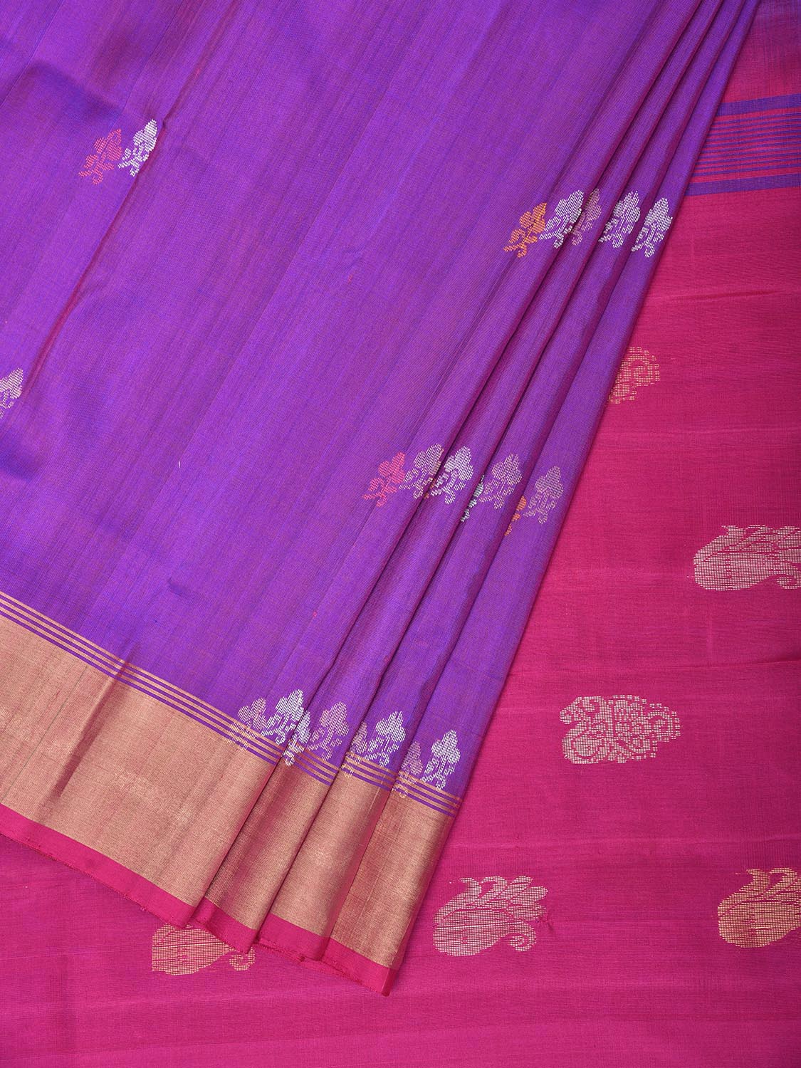 Purple and Pink Uppada Pure Silk Handloom Saree with Body and Pallu Buta Design u2552