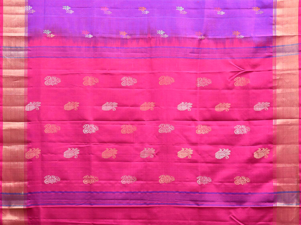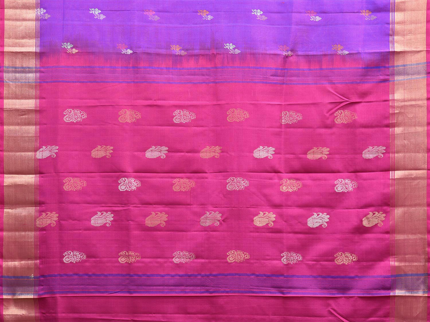 Purple and Pink Uppada Pure Silk Handloom Saree with Body and Pallu Buta Design