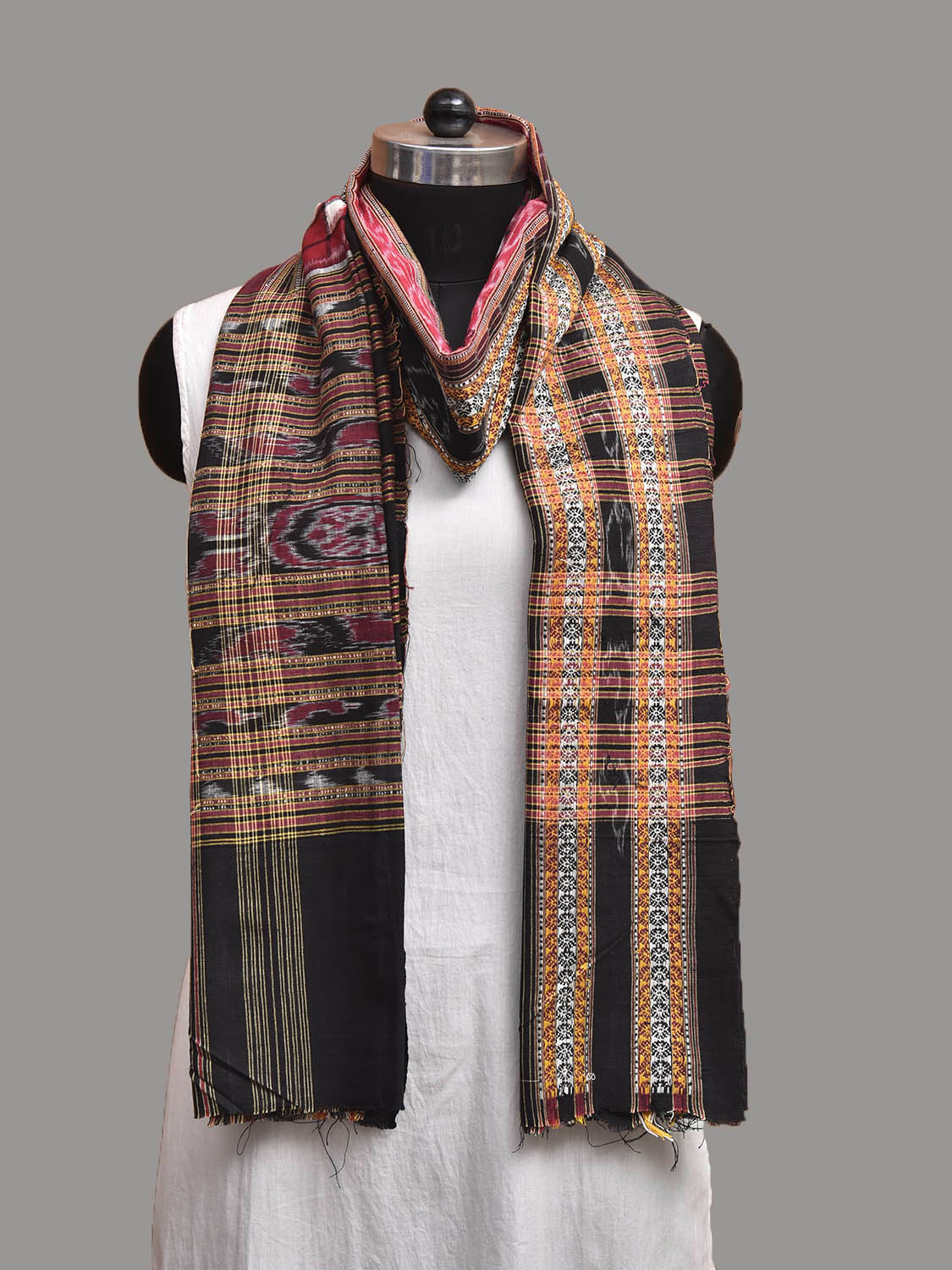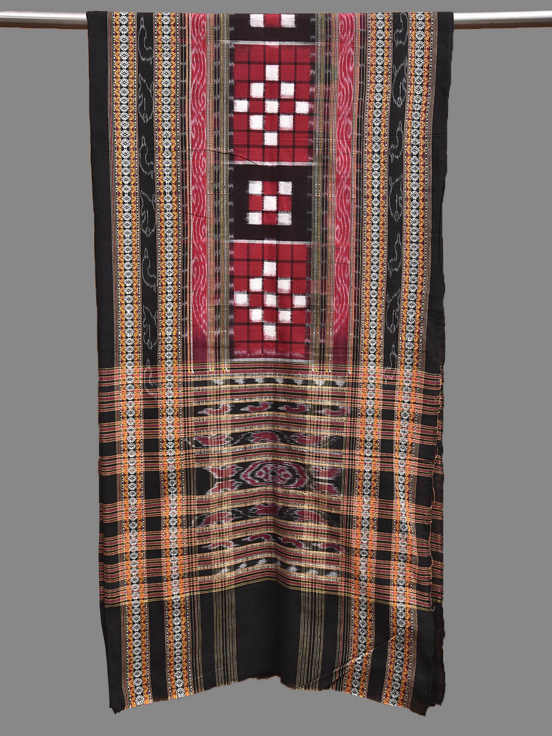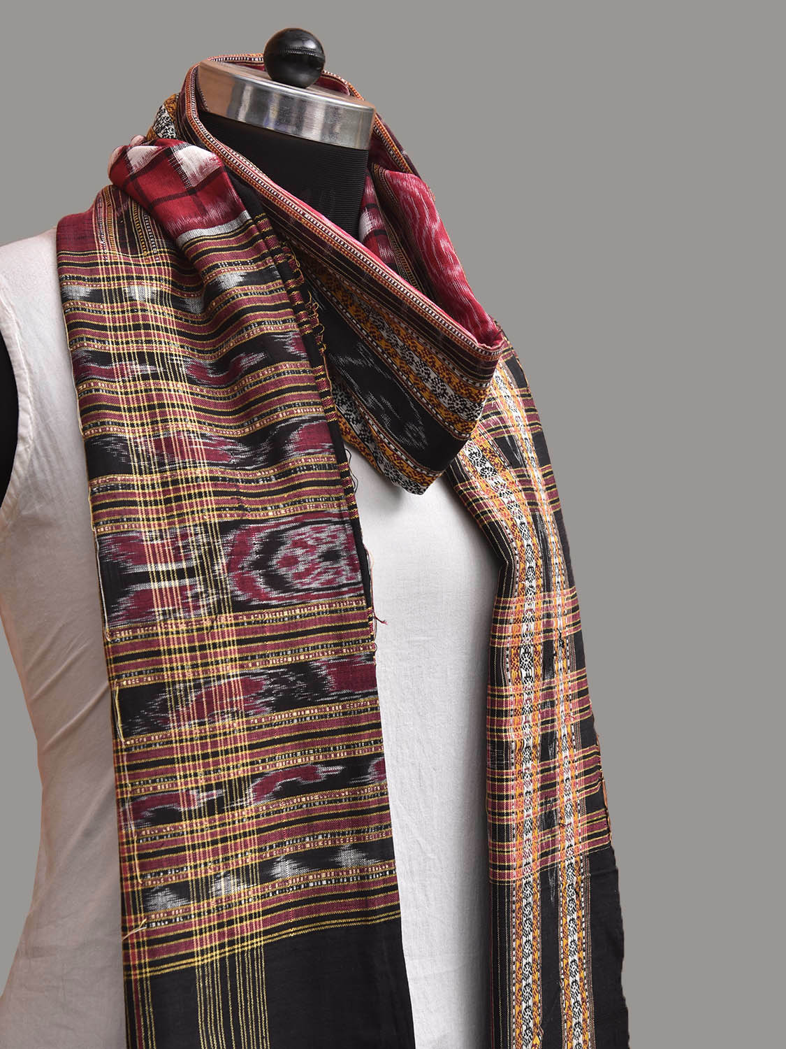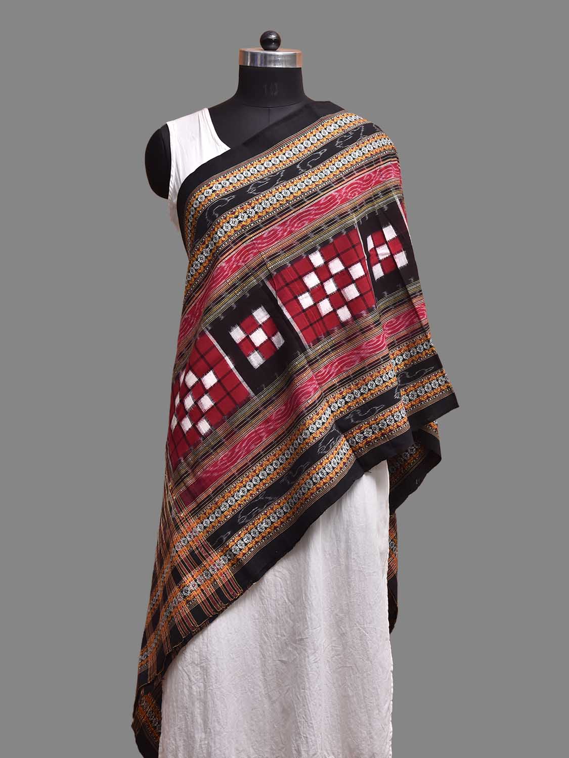 Red and Black Pochampally Ikat Cotton Stole with Checks and Border Design. This Handloom Dupatta has been woven using the resist-dyeing, which produces the unique patterns adorning the fabric. We advise gentle handwash separately for fabric care.