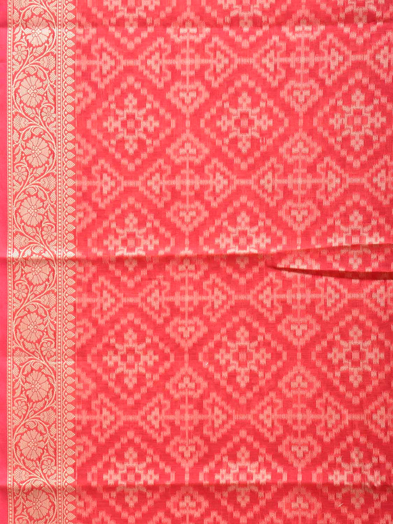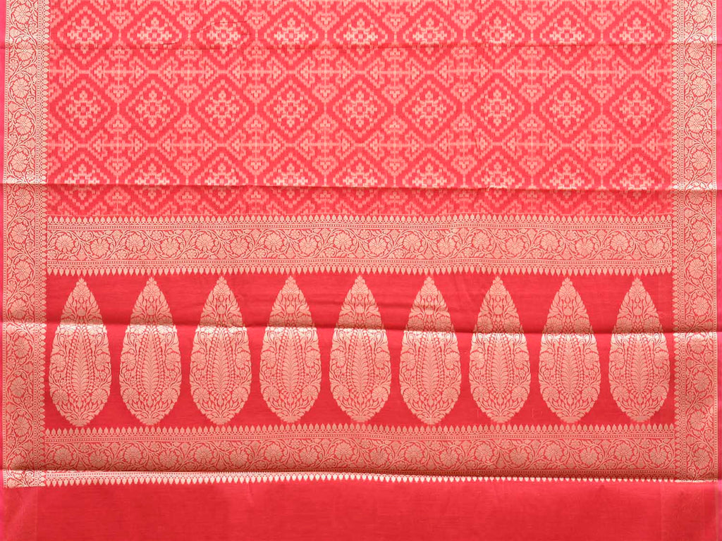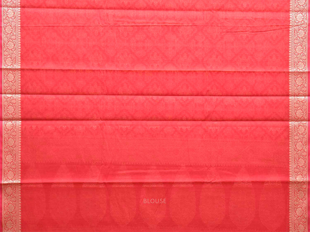 Red and Cream Dhakai Jamdani Cotton Viscose Saree with Grill and Pallu Design dj0348