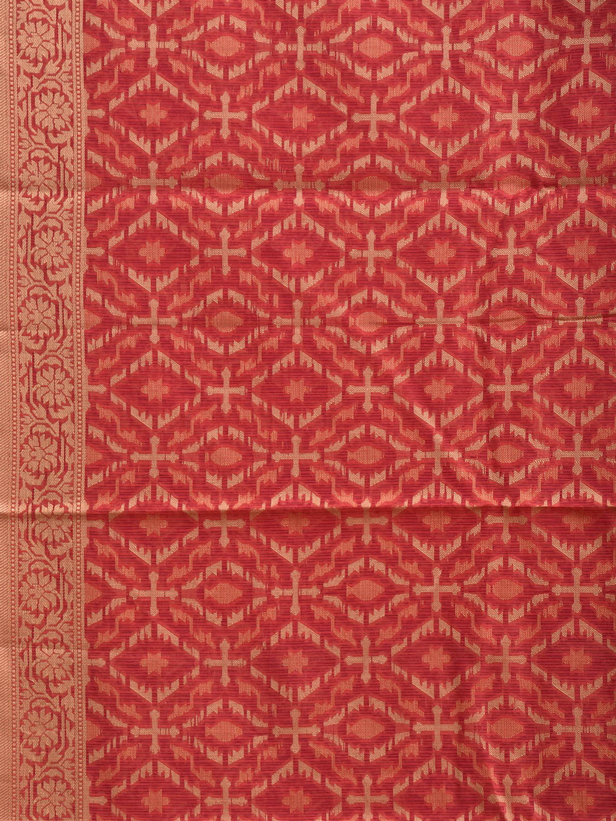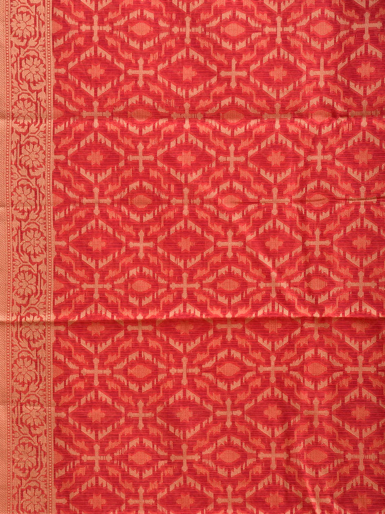 Red Dhakai Jamdani Cotton Viscose Saree with All Over and Floral Pallu Design dj0331