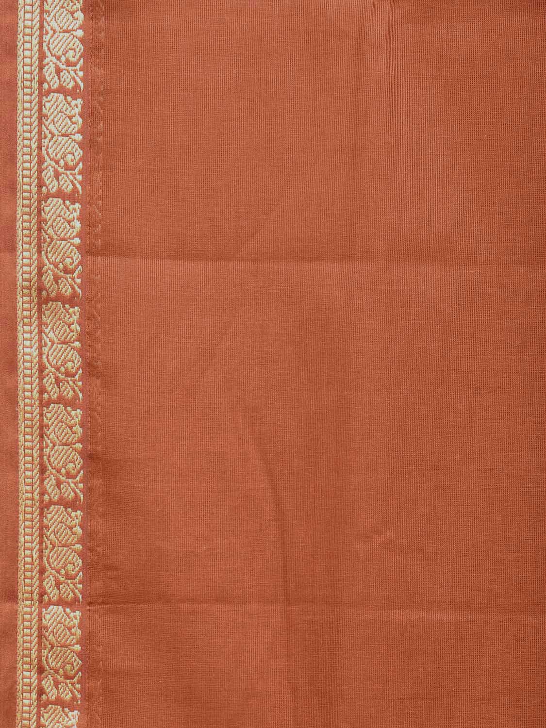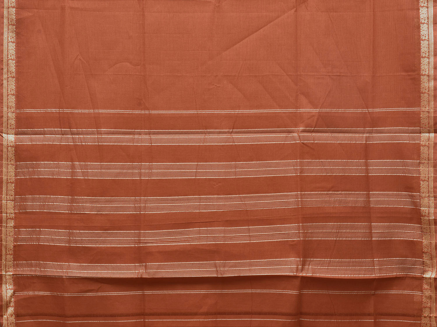 Rust Narayanpet Cotton Plain Saree with Strips Pallu Design No Blouse. This saree has no blouse.