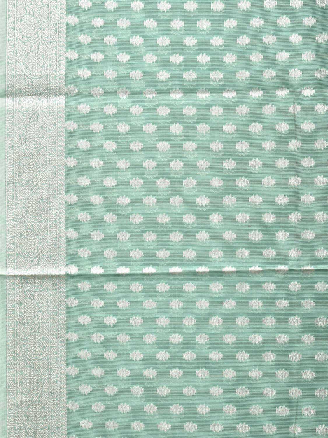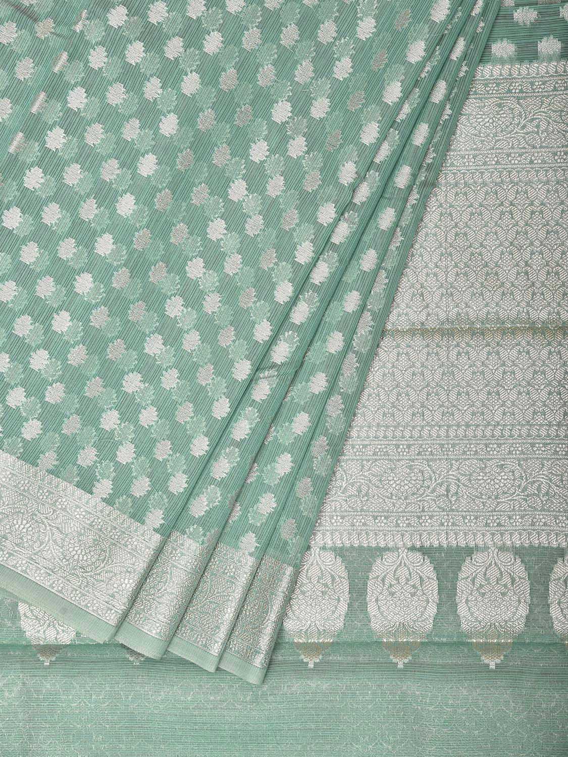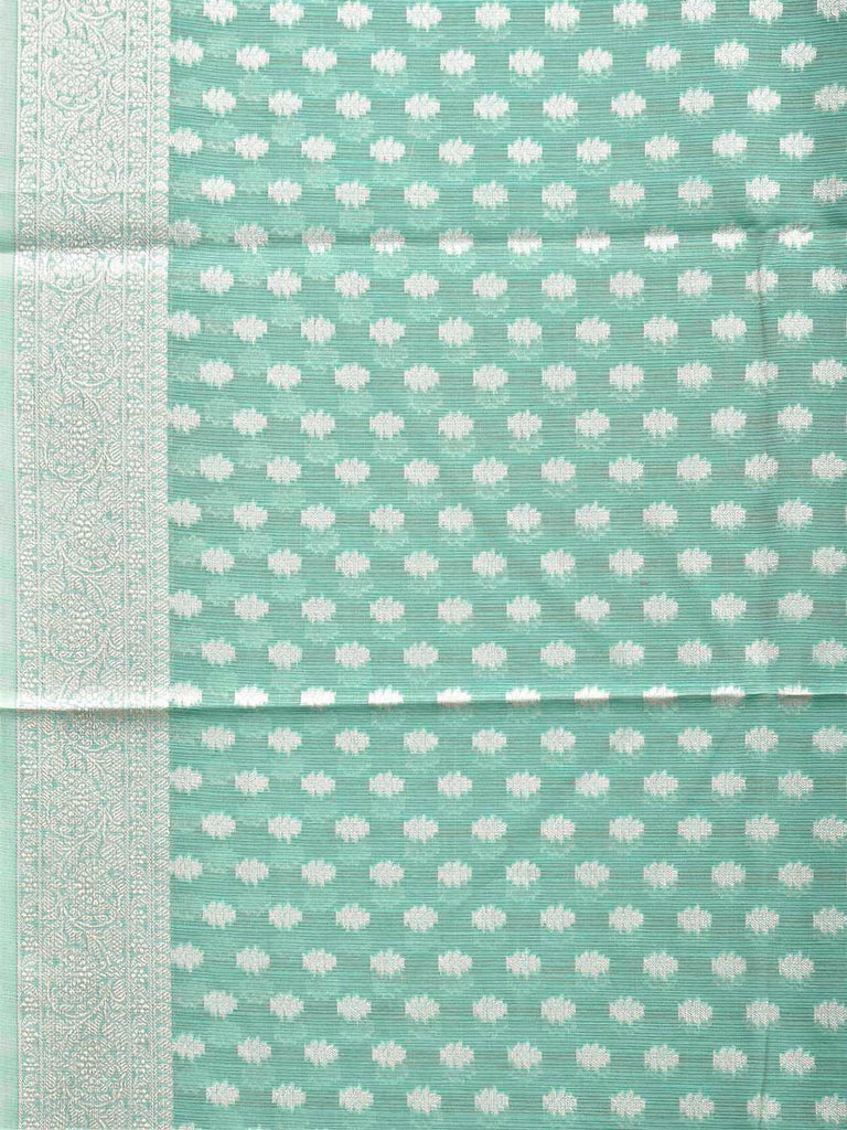 Sea Green Dhakai Jamdani Cotton Viscose Saree with Body Buta and Pallu Design. These are some of the traditional Dhakai Jamdani designs, these sarees have geometric designs and sometimes floral or combination of both. We advice gentle handwash separately for fabric care.