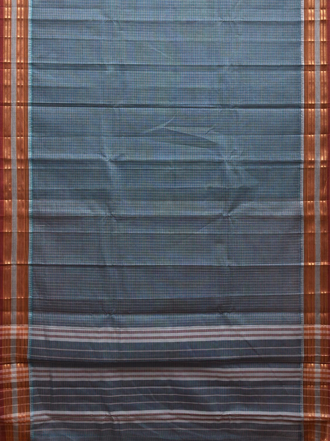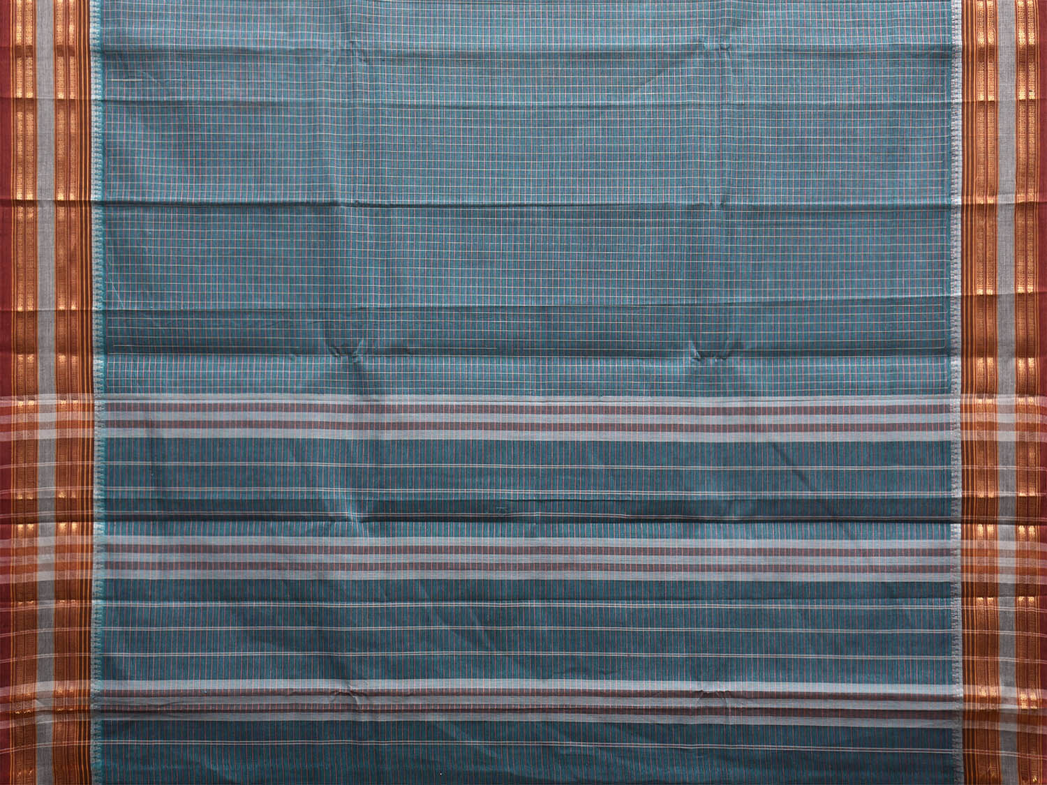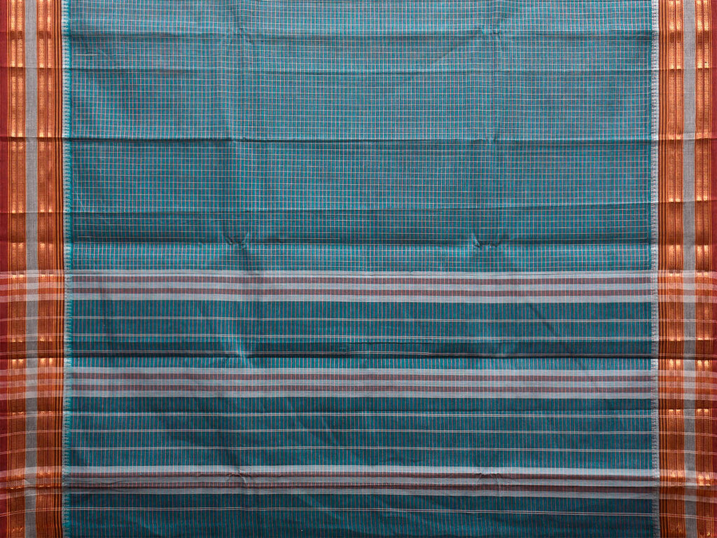 Teal and Dark Red Narayanpet Cotton Saree with Checks Design No Blouse. This saree has no blouse.