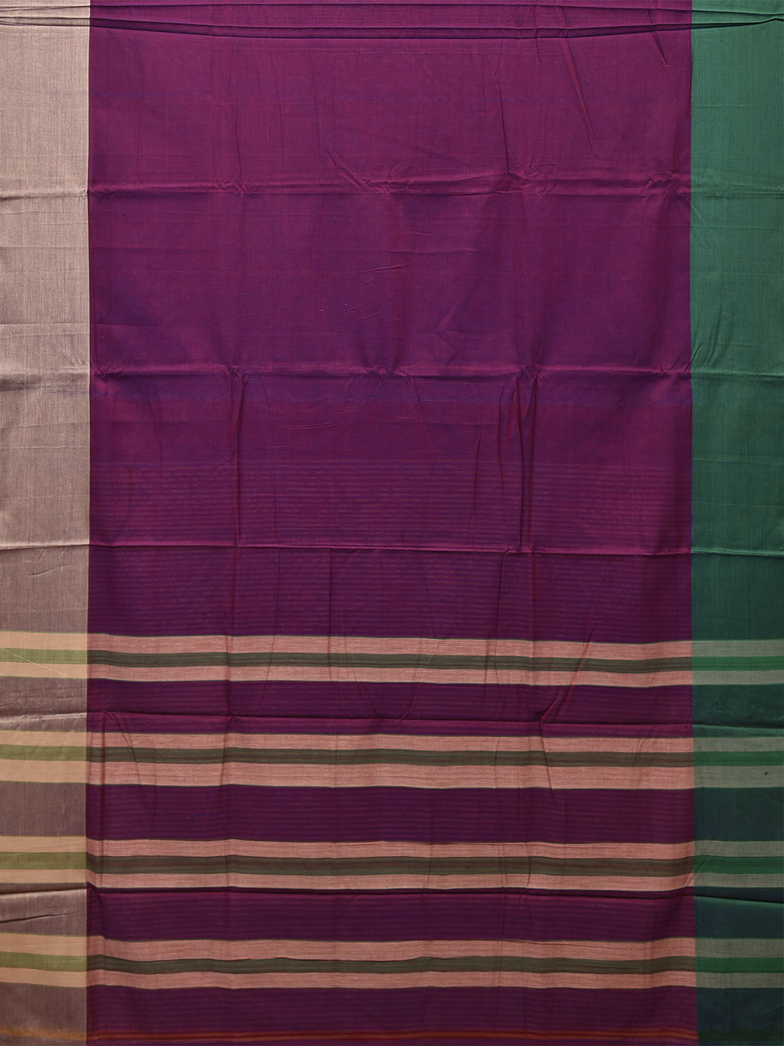 Wine Kanchipuram Cotton Plain Saree with Ganga-Jamuna Border Design k1148