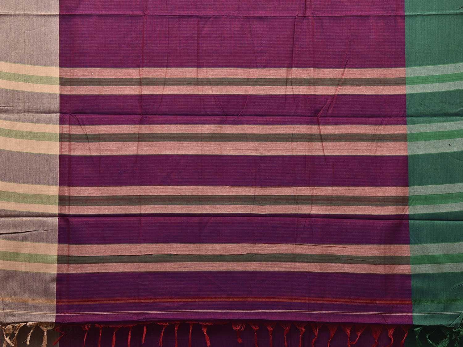 Wine Kanchipuram Cotton Plain Saree with Ganga-Jamuna Border Design. Traditional Simple South Indian Attire Saree for any Casual Occasions. As it’s a cotton saree we advice gentle handwash separately for fabric care.