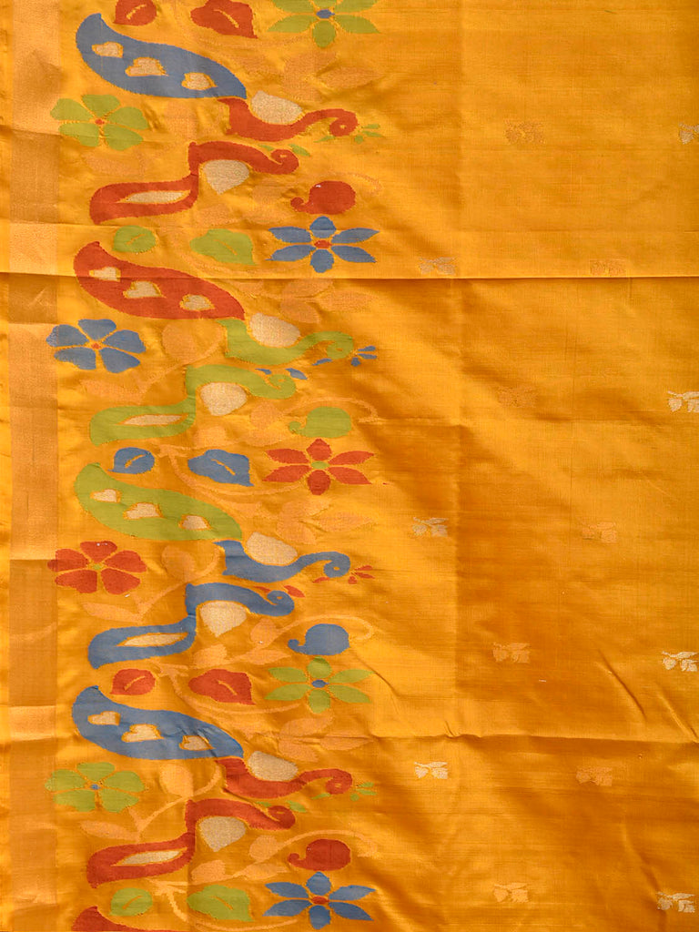 Yellow Uppada Silk Handloom Saree with One Side Peacock Border Design.