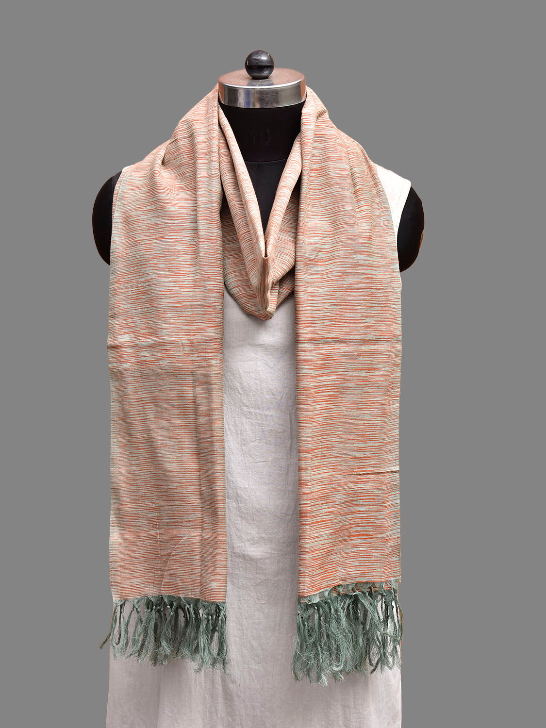 Rust and Sea Green Mangalgiri Cotton Dupatta with Strips Design