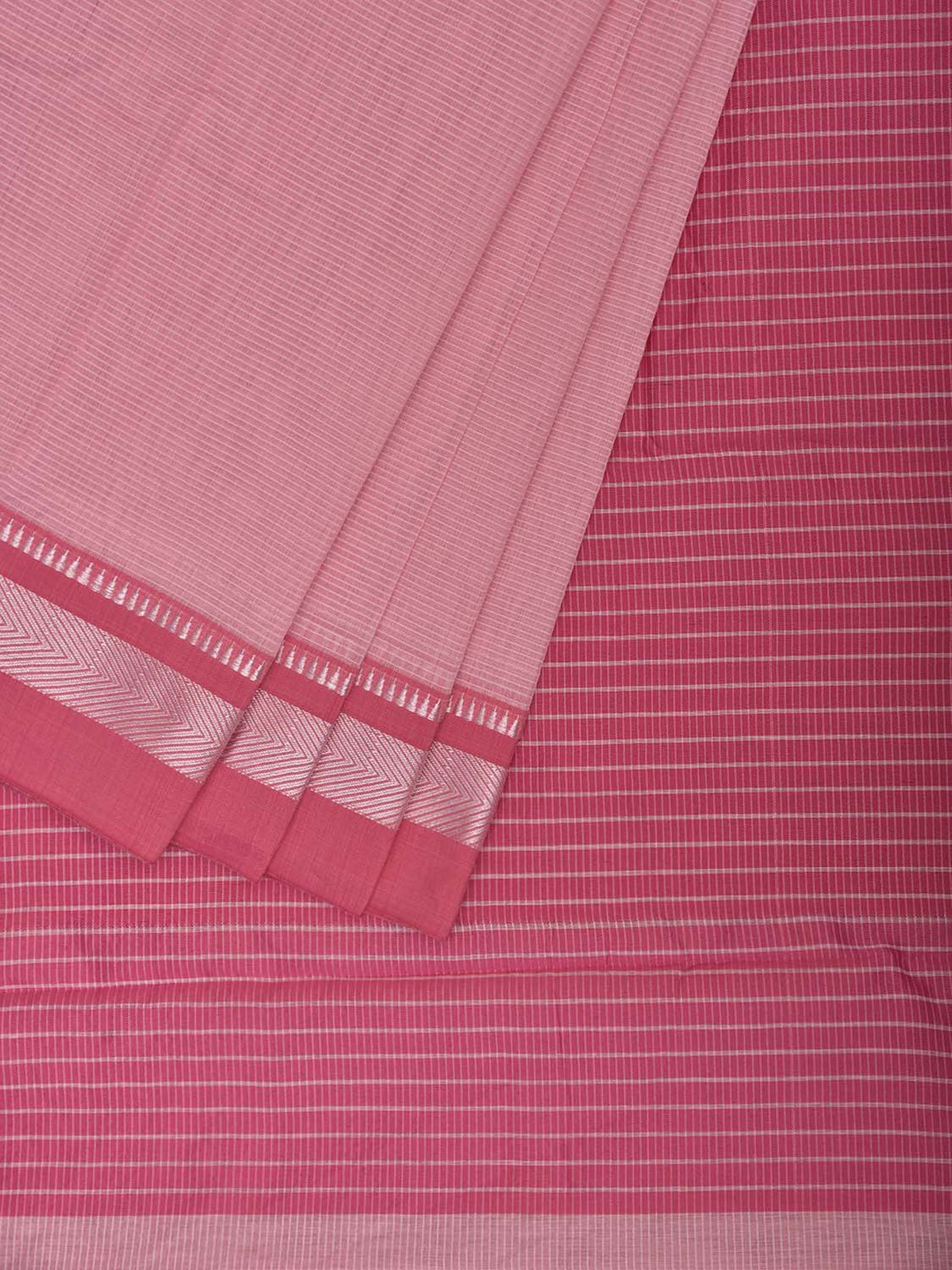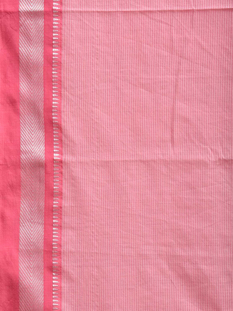 Baby Pink and Pink Bamboo Cotton Saree with Strips Design No Blouse. This is a blend of bamboo and cotton fibers, they have characteristics of both bamboo and cotton combined into one fabric. We Advise Gentle Handwash for Fabric Care. This saree has no blouse.