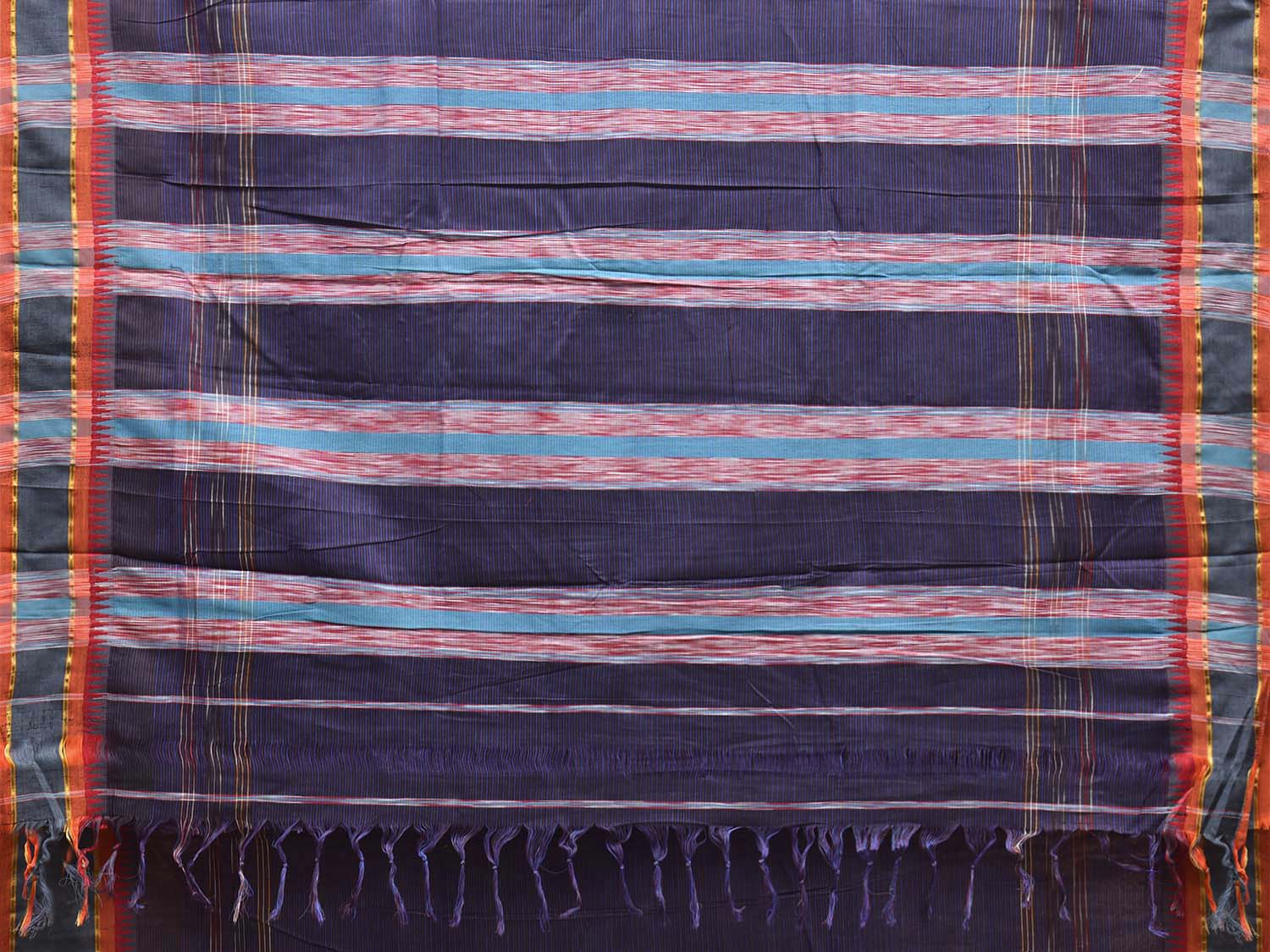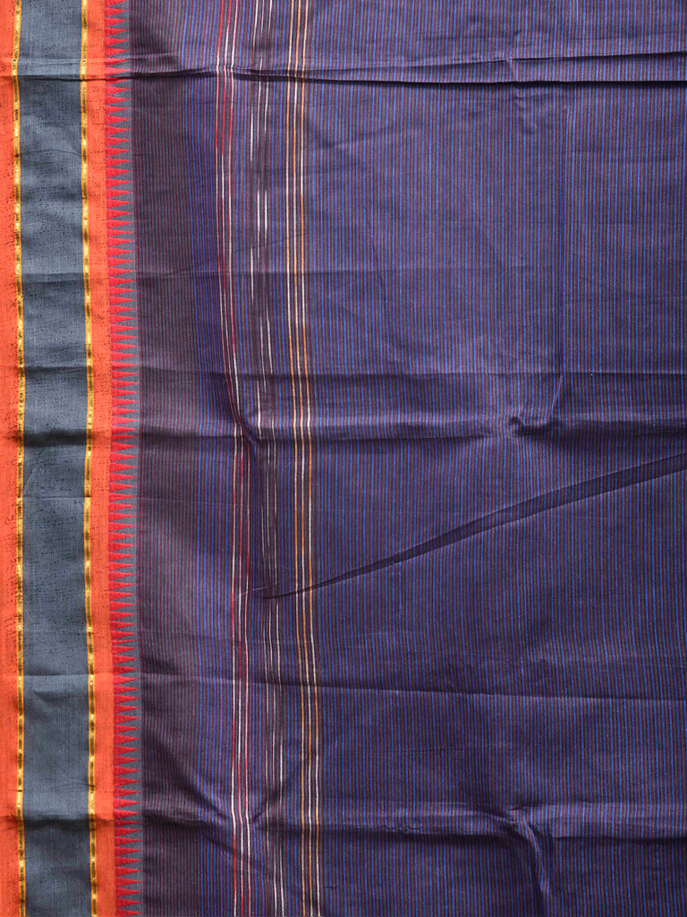 Blue and Black Narayanpet Cotton Plain Saree with Strips Body and Pallu Design No Blouse. This saree has no blouse.