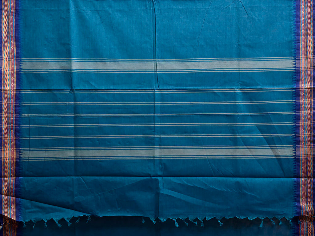 Blue Kanchipuram Cotton Plain Saree with Border and Strips Pallu Design k1069